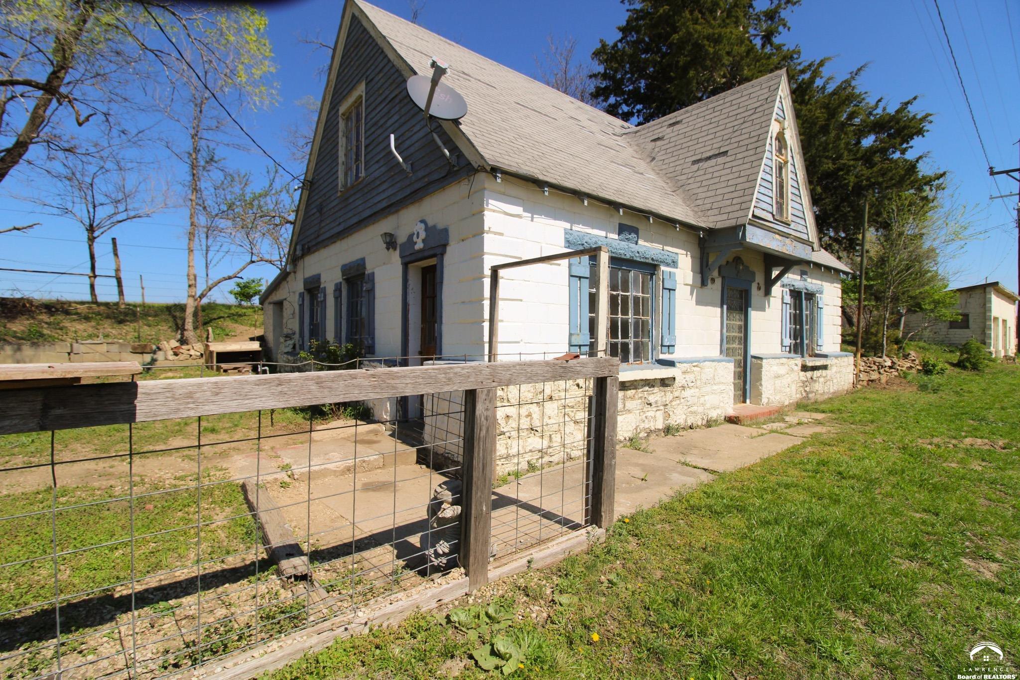 All kinds of possibilities at this unique property on almost 2 acres just outside Lawrence & down the road from Tonganoxie. Currently an investment property that is generating $2,675 in monthly income, continue cashing in on its generous rent or simply make it your own private home that provides plentiful storage options in the outbuildings. Roll up your sleeves, this property is in need of work & is being sold in its present As Is condition. Do you have a dream of owning a small business? There's a 2nd home, once believed to be a train depot, plus detached garage that sits along the roadside & presents a great opportunity to catch passerbyers' attention or be a roadside stand from which to offer your goods or services. Explore the possibilities! Come & check out how this unique investment fits your goals. The uniqueness of this property does not conform to typical conventional or government loan standards - discuss financing options with listing agent or purchase cash.