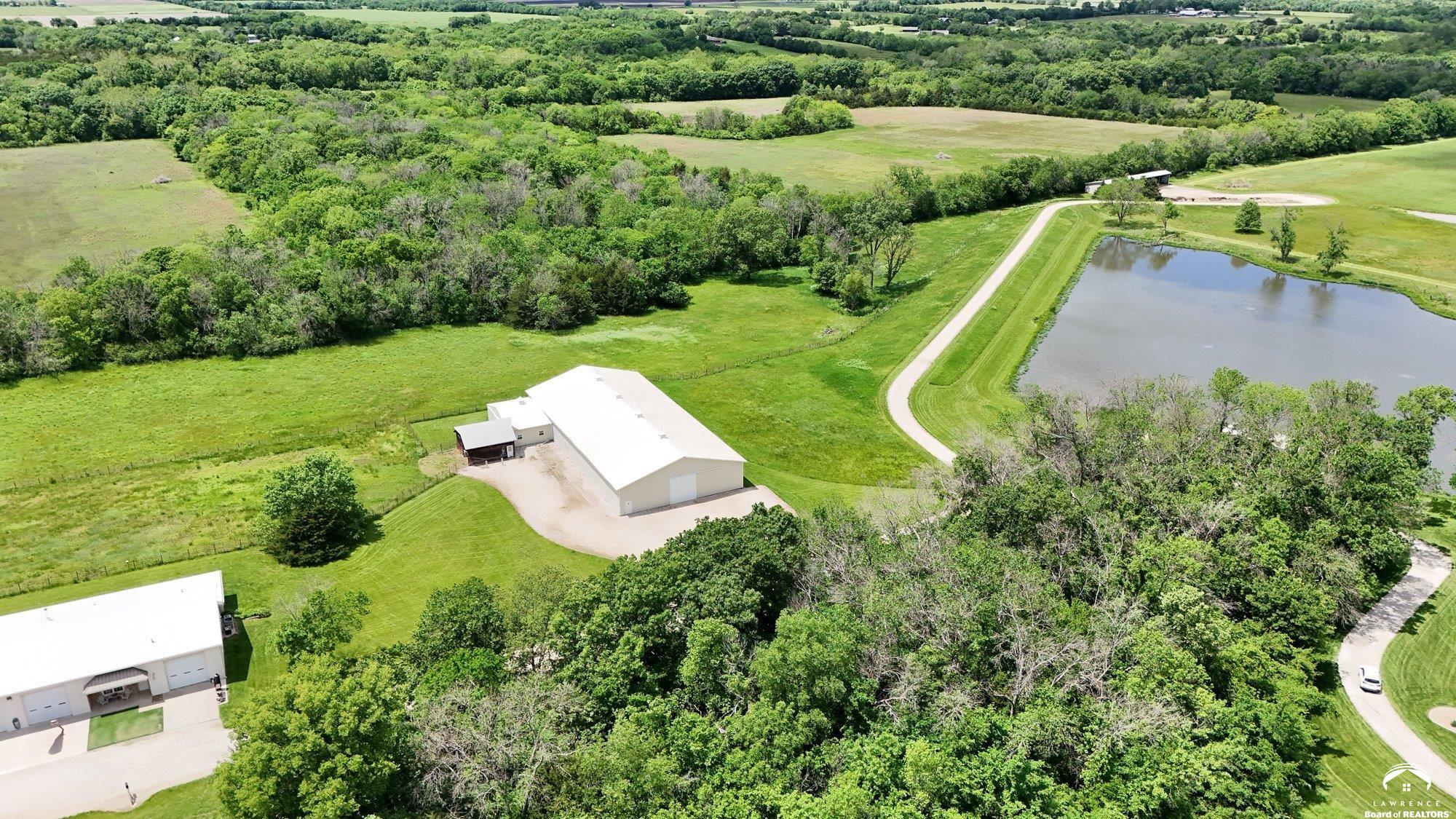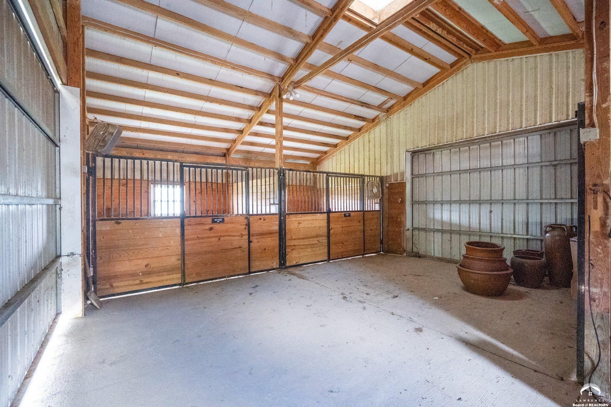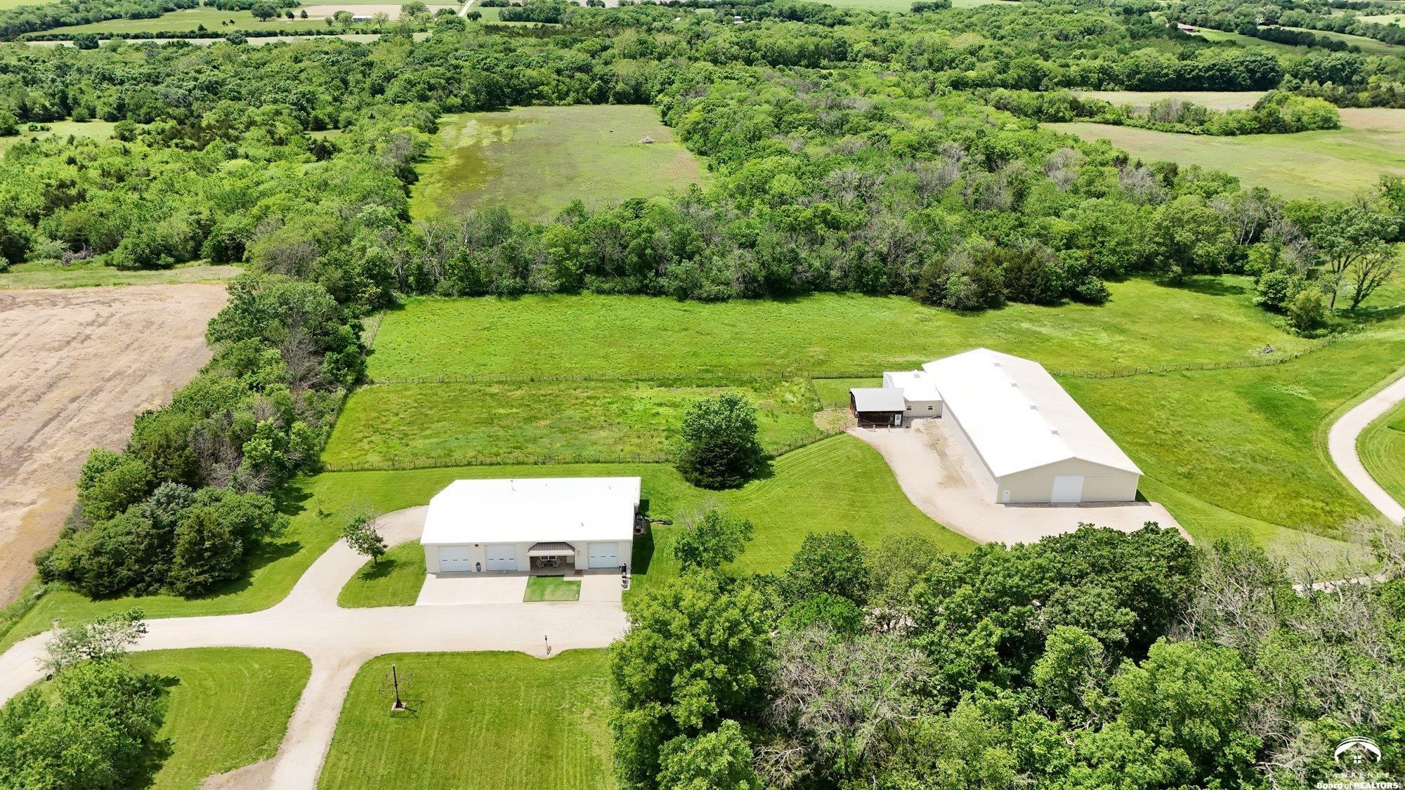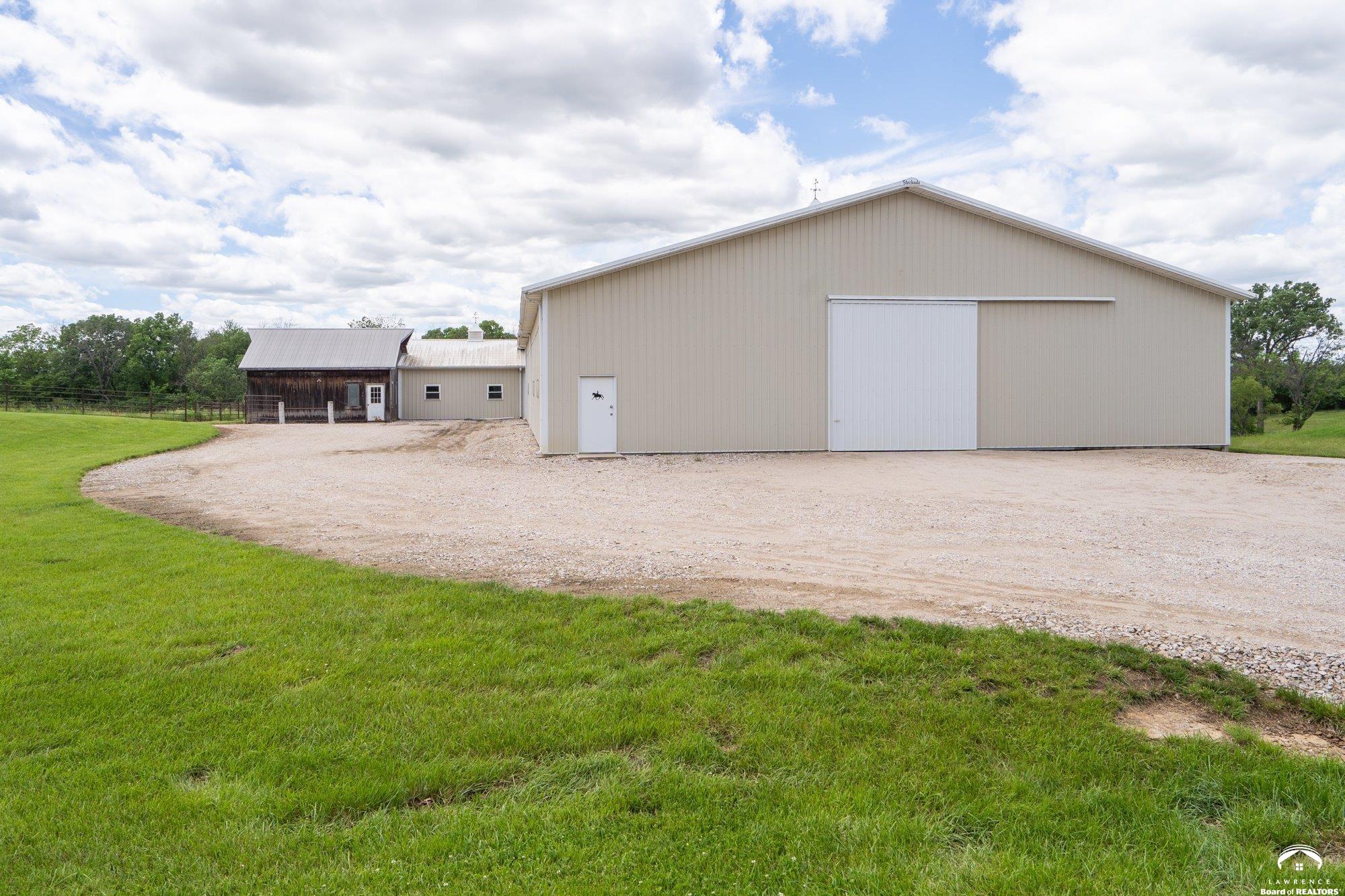Looking for a peaceful rural setting just minutes from the amenities of town? This Dream Homestead includes 80+/- Acres with Custom Home, Pond, Shop & Equestrian Facilities! And it's just a few miles south of Baldwin City. Experience the ultimate rural retreat featuring a meticulously maintained, custom ranch home with walk-out basement, 7-acre stocked pond, 4800SF workshop with apartment, and equestrian amenities. Designed for comfort, self-sufficiency, and recreation, this property offers panoramic views, a pondside deck, garden plot, and private road access. Enjoy fishing, floating, or relaxing at the covered dock, or explore trails perfect for hiking, riding, and wildlife watching or hunting. The workshop is a dream setup for hobbyists and professionals alike and can accommodate guests in the 800SF apartment. The indoor arena, stables, tack room, and pastures make it a dream for horse lovers. Whether you're homesteading, hosting guests, or seeking peace and tranquility, this one-of-a-kind property is not just a home, it's a lifestyle. Be sure to check out the video to imagine yourself living the good life!