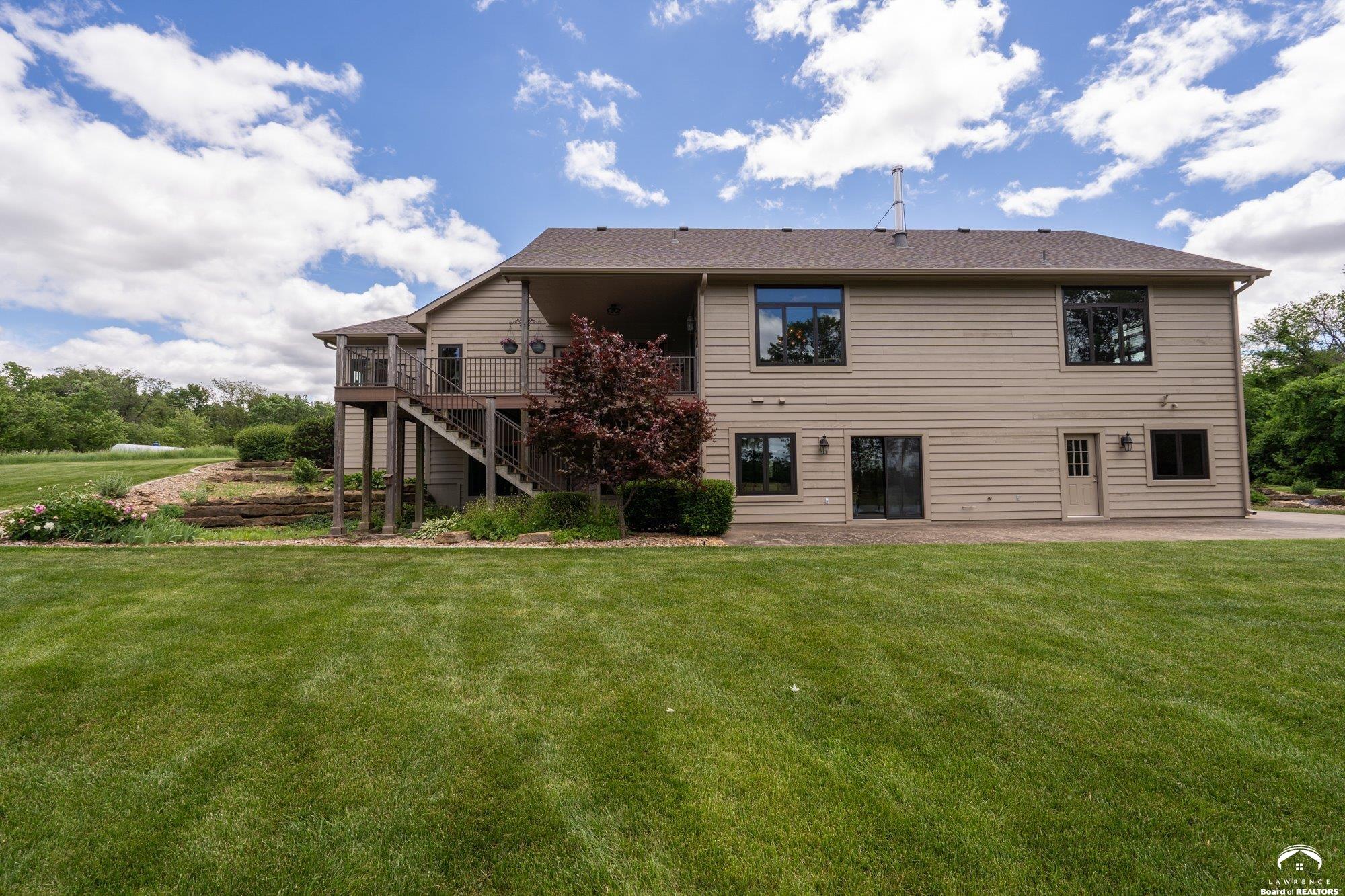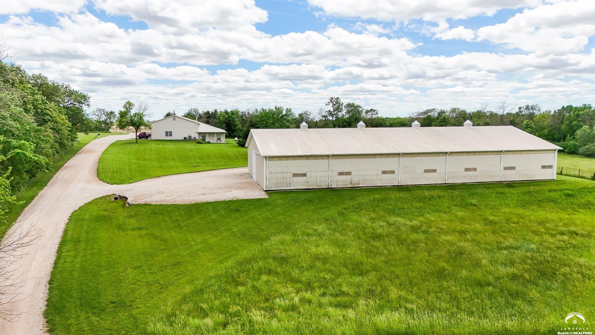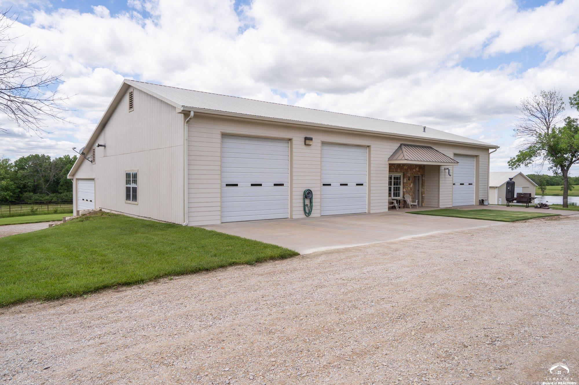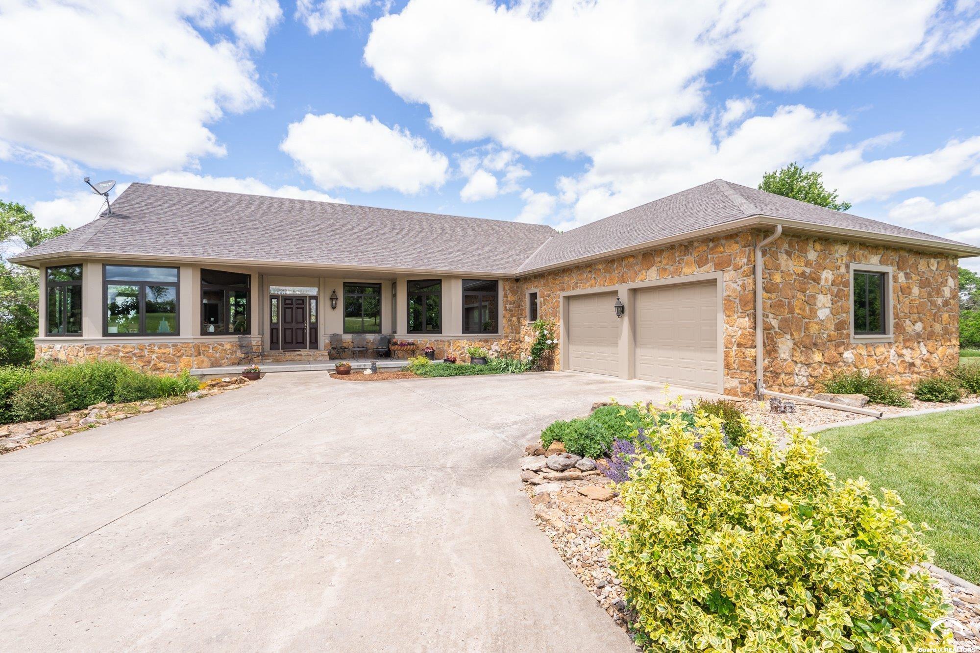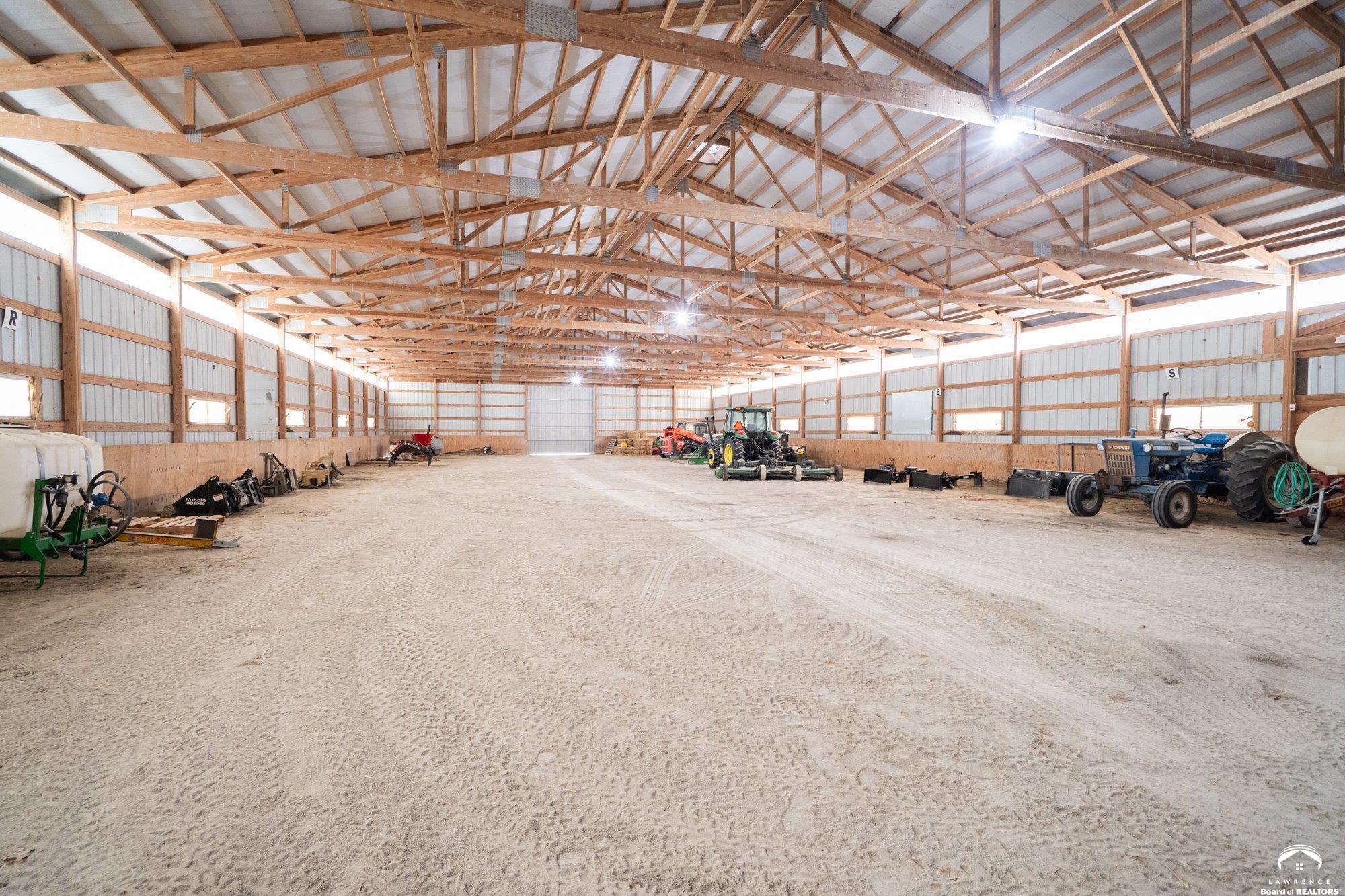 Looking for a peaceful rural setting just minutes from the amenities of town? This Dream Homestead includes 80+/- Acres with Custom Home, Pond, Shop & Equestrian Facilities! And it's just a few miles south of Baldwin City. Experience the ultimate rural retreat featuring a meticulously maintained, custom ranch home with walk-out basement, 7-acre stocked pond, 4800SF workshop with apartment, and equestrian amenities. Designed for comfort, self-sufficiency, and recreation, this property offers panoramic views, a pondside deck, garden plot, and private road access. Enjoy fishing, floating, or relaxing at the covered dock, or explore trails perfect for hiking, riding, and wildlife watching or hunting. The workshop is a dream setup for hobbyists and professionals alike and can accommodate guests in the 800SF apartment. The indoor arena, stables, tack room, and pastures make it a dream for horse lovers. Whether you're homesteading, hosting guests, or seeking peace and tranquility, this one-of-a-kind property is not just a home, it's a lifestyle. Be sure to check out the video to imagine yourself living the good life!