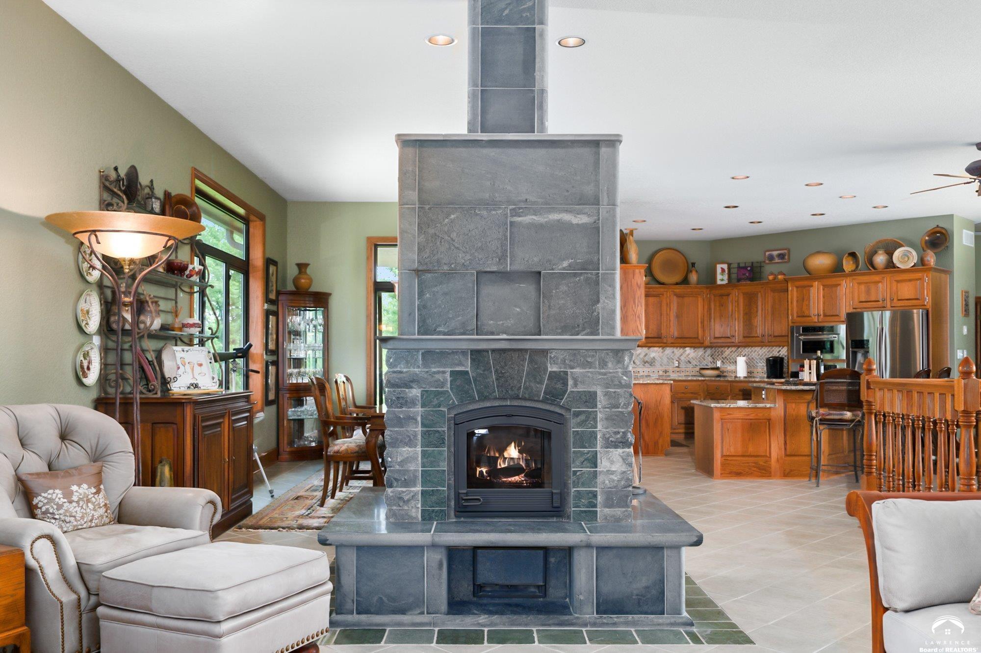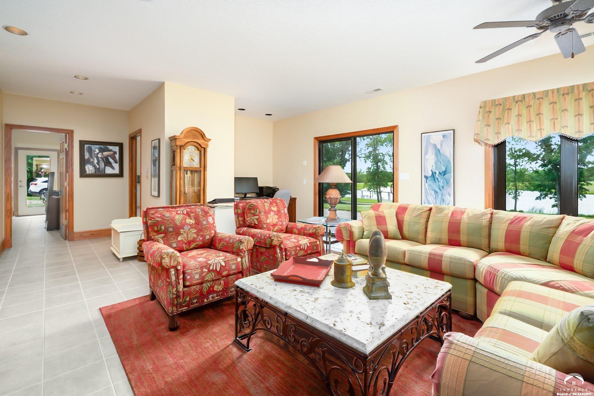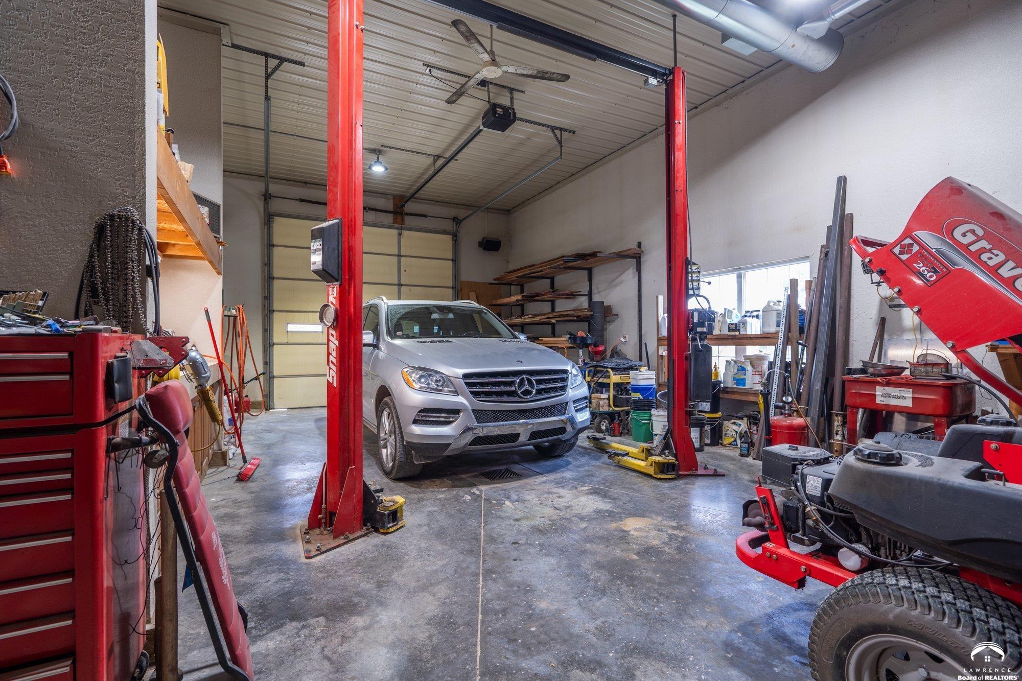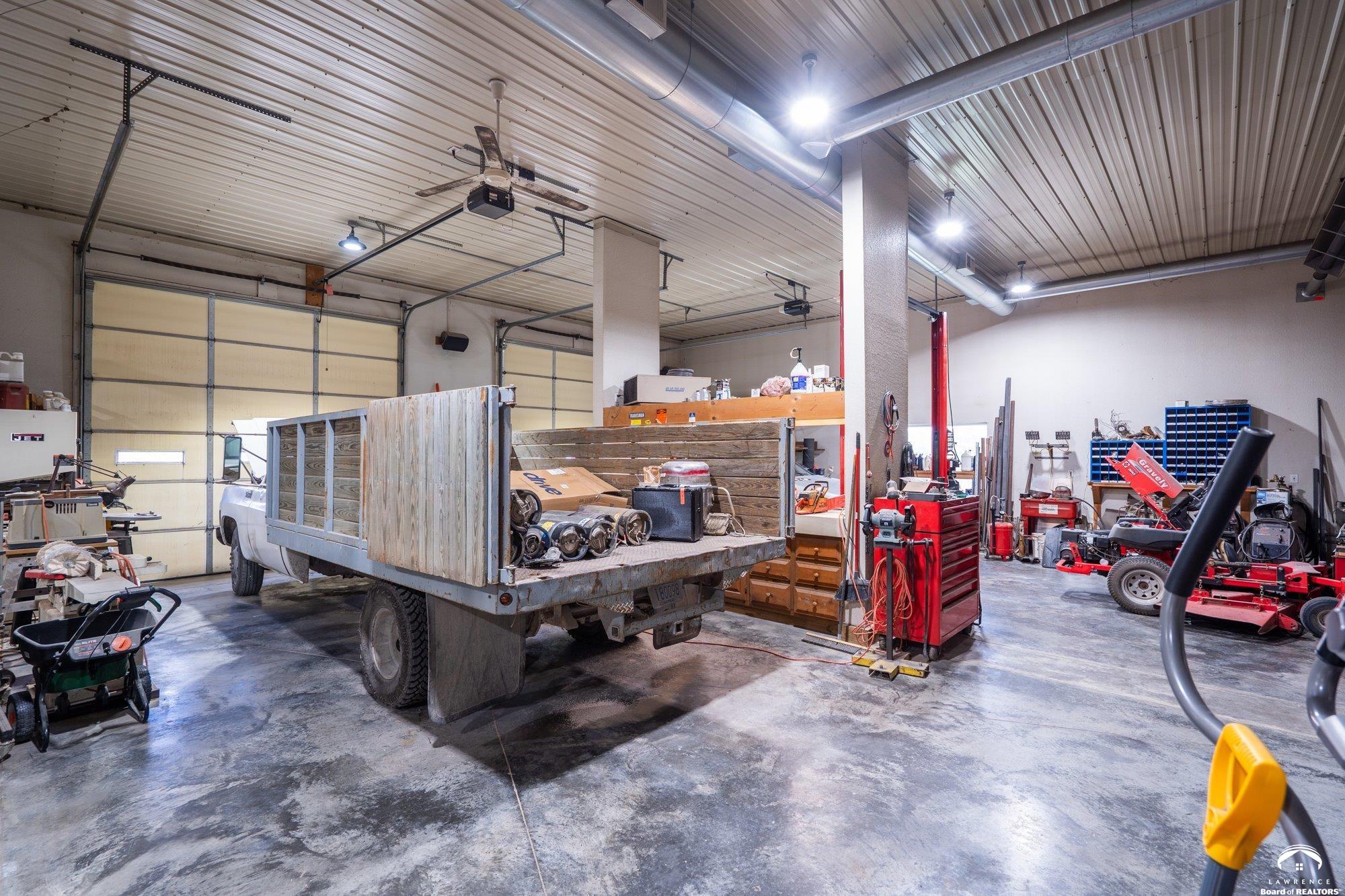 Looking for a peaceful rural setting just minutes from the amenities of town? This Dream Homestead includes 80+/- Acres with Custom Home, Pond, Shop & Equestrian Facilities! And it's just a few miles south of Baldwin City. Experience the ultimate rural retreat featuring a meticulously maintained, custom ranch home with walk-out basement, 7-acre stocked pond, 4800SF workshop with apartment, and equestrian amenities. Designed for comfort, self-sufficiency, and recreation, this property offers panoramic views, a pondside deck, garden plot, and private road access. Enjoy fishing, floating, or relaxing at the covered dock, or explore trails perfect for hiking, riding, and wildlife watching or hunting. The workshop is a dream setup for hobbyists and professionals alike and can accommodate guests in the 800SF apartment. The indoor arena, stables, tack room, and pastures make it a dream for horse lovers. Whether you're homesteading, hosting guests, or seeking peace and tranquility, this one-of-a-kind property is not just a home, it's a lifestyle. Be sure to check out the video to imagine yourself living the good life!