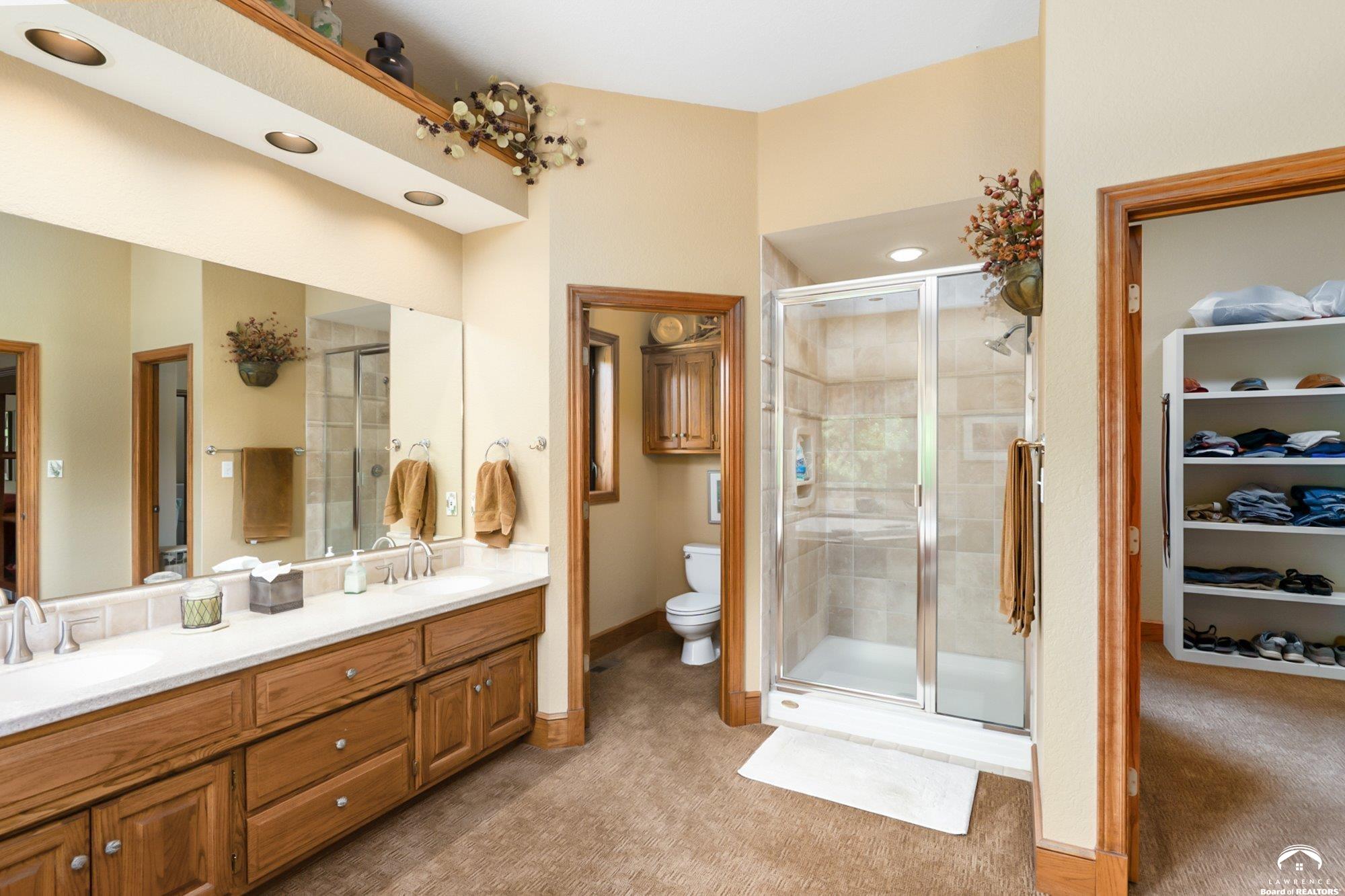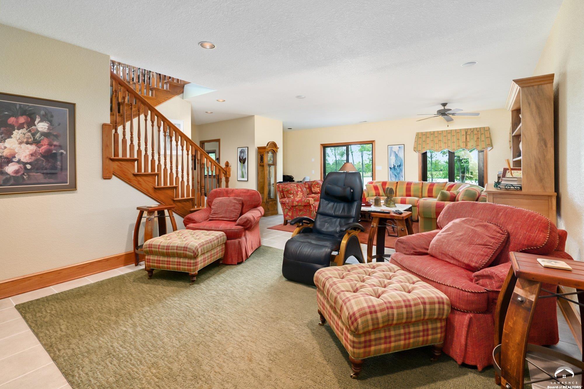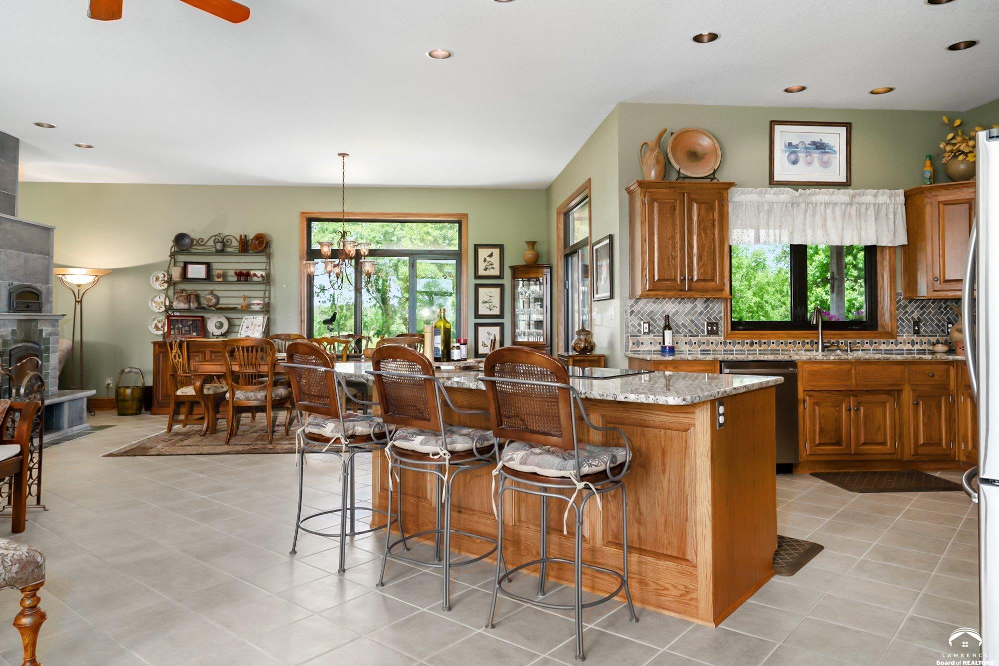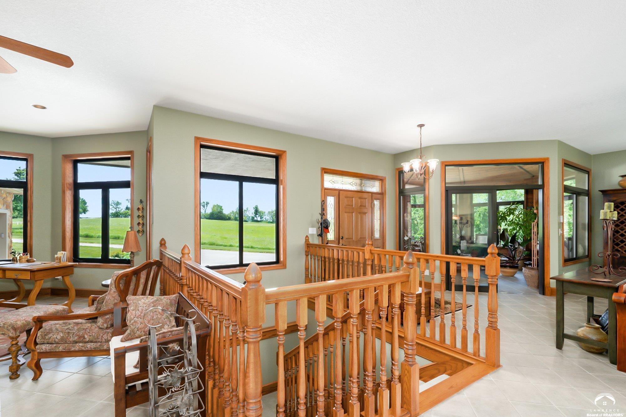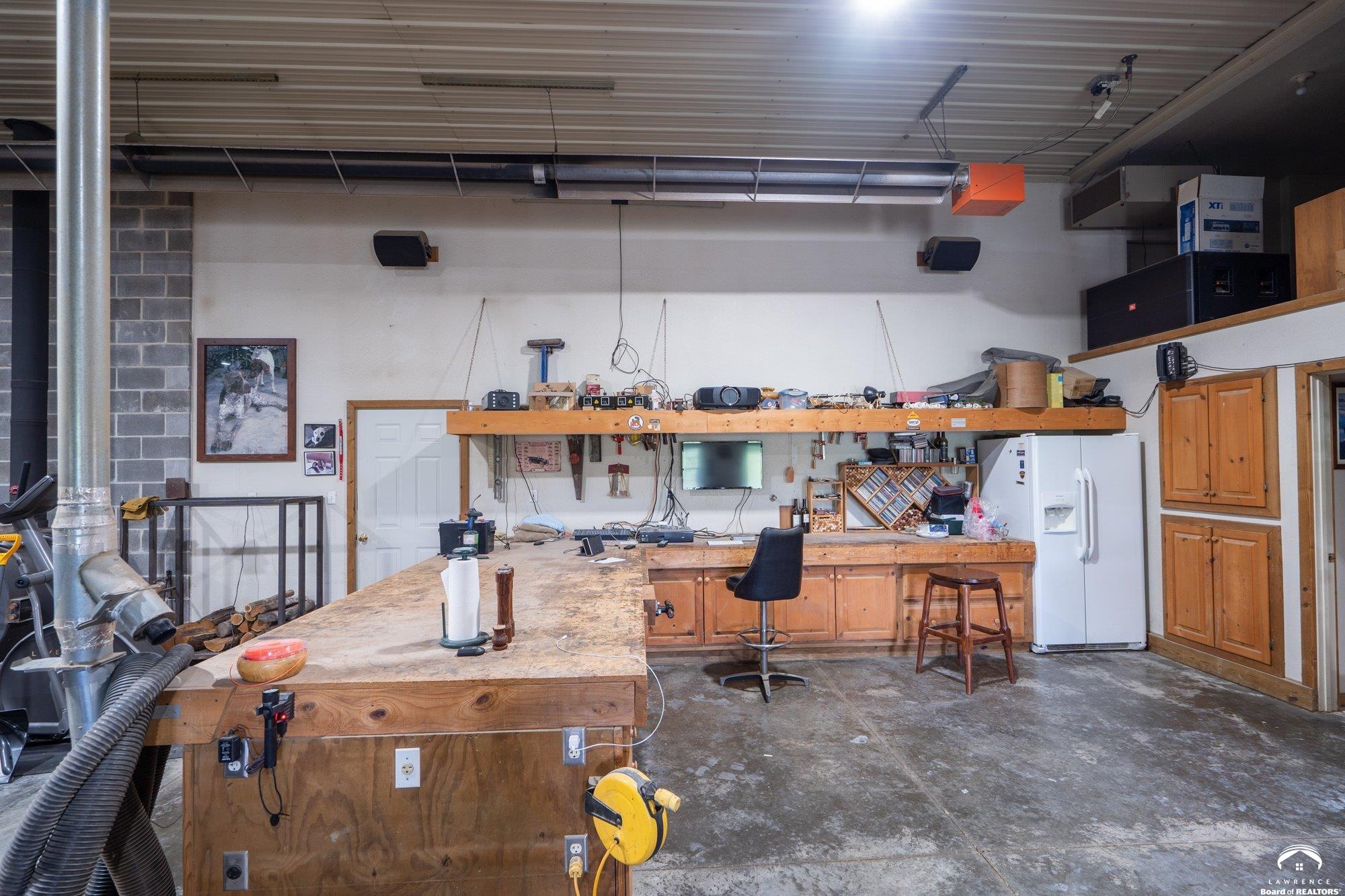 Looking for a peaceful rural setting just minutes from the amenities of town? This Dream Homestead includes 80+/- Acres with Custom Home, Pond, Shop & Equestrian Facilities! And it's just a few miles south of Baldwin City. Experience the ultimate rural retreat featuring a meticulously maintained, custom ranch home with walk-out basement, 7-acre stocked pond, 4800SF workshop with apartment, and equestrian amenities. Designed for comfort, self-sufficiency, and recreation, this property offers panoramic views, a pondside deck, garden plot, and private road access. Enjoy fishing, floating, or relaxing at the covered dock, or explore trails perfect for hiking, riding, and wildlife watching or hunting. The workshop is a dream setup for hobbyists and professionals alike and can accommodate guests in the 800SF apartment. The indoor arena, stables, tack room, and pastures make it a dream for horse lovers. Whether you're homesteading, hosting guests, or seeking peace and tranquility, this one-of-a-kind property is not just a home, it's a lifestyle. Be sure to check out the video to imagine yourself living the good life!