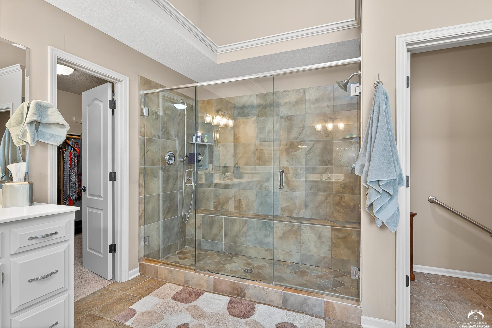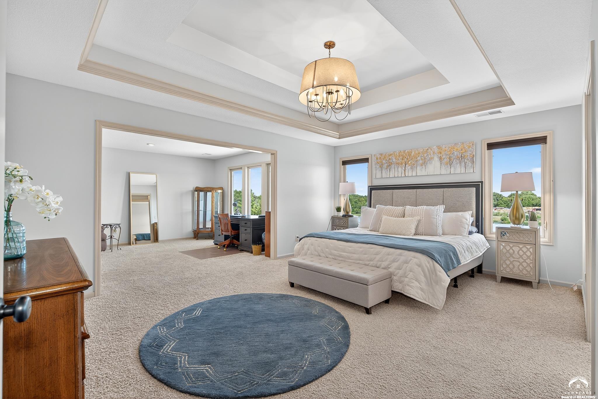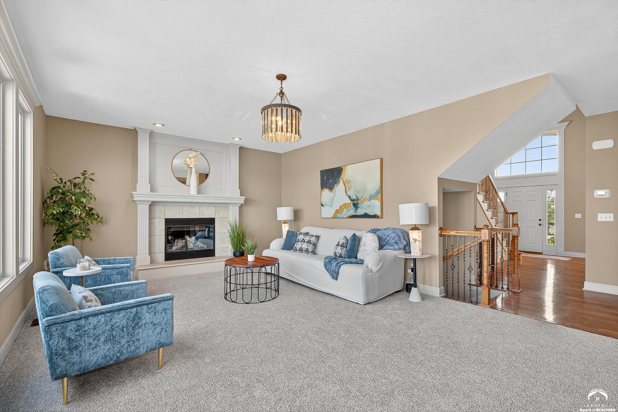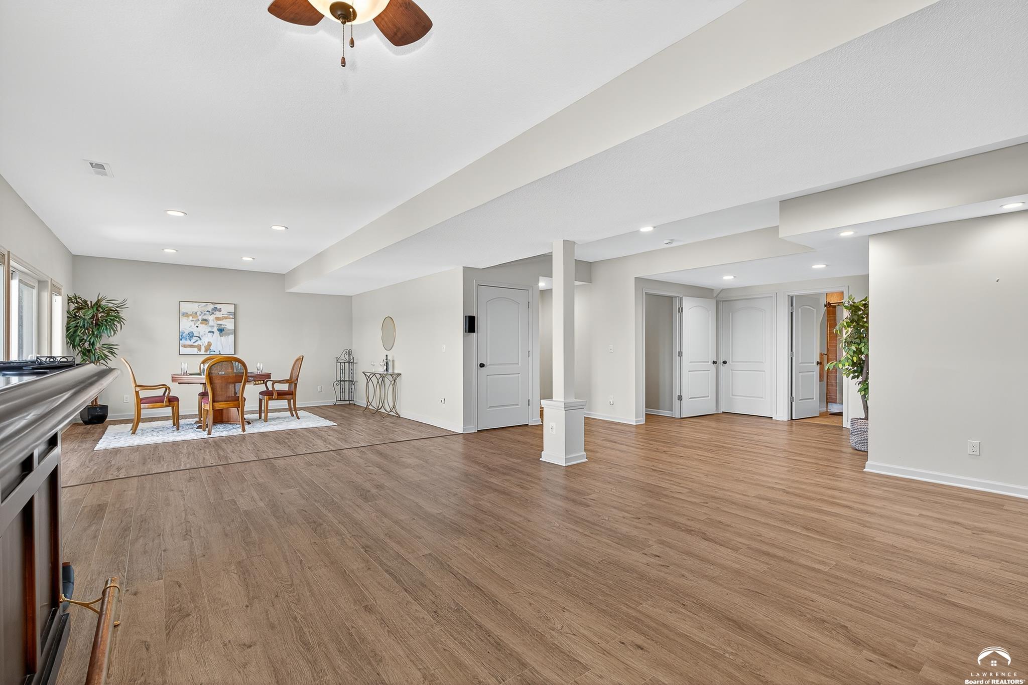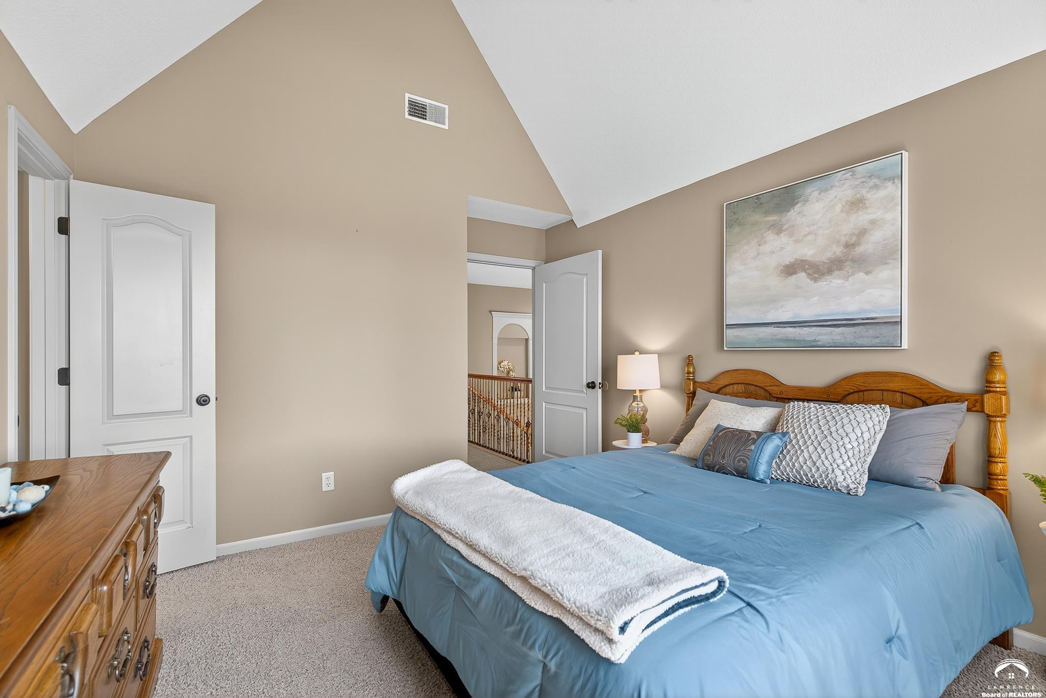 Beautiful two story home positioned perfectly on 4+/- acres overlooking a manicured pond just east of Lawrence! Lovingly maintained with updates throughout including fresh paint, updated carpeting, light fixtures, a new roof, 3 fireplaces, built in bookcases, beautiful primary en-suite. Kitchen has lots of cabinet room and a walk-in pantry. Finished walk-out basement including a family room, bedroom, bathroom and storage. Come and see this beauty today! All taxes and msmts are approx.