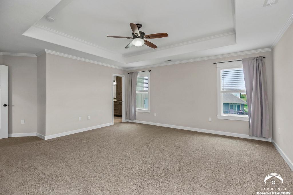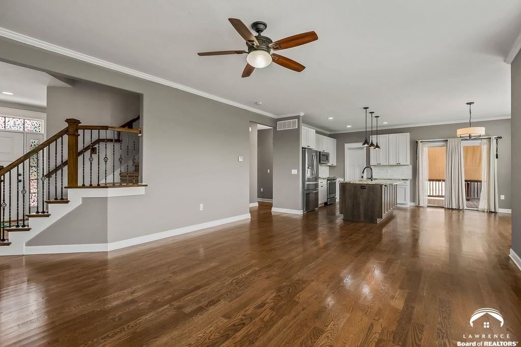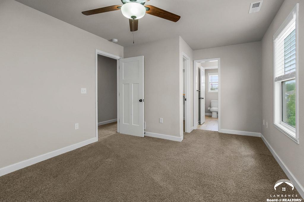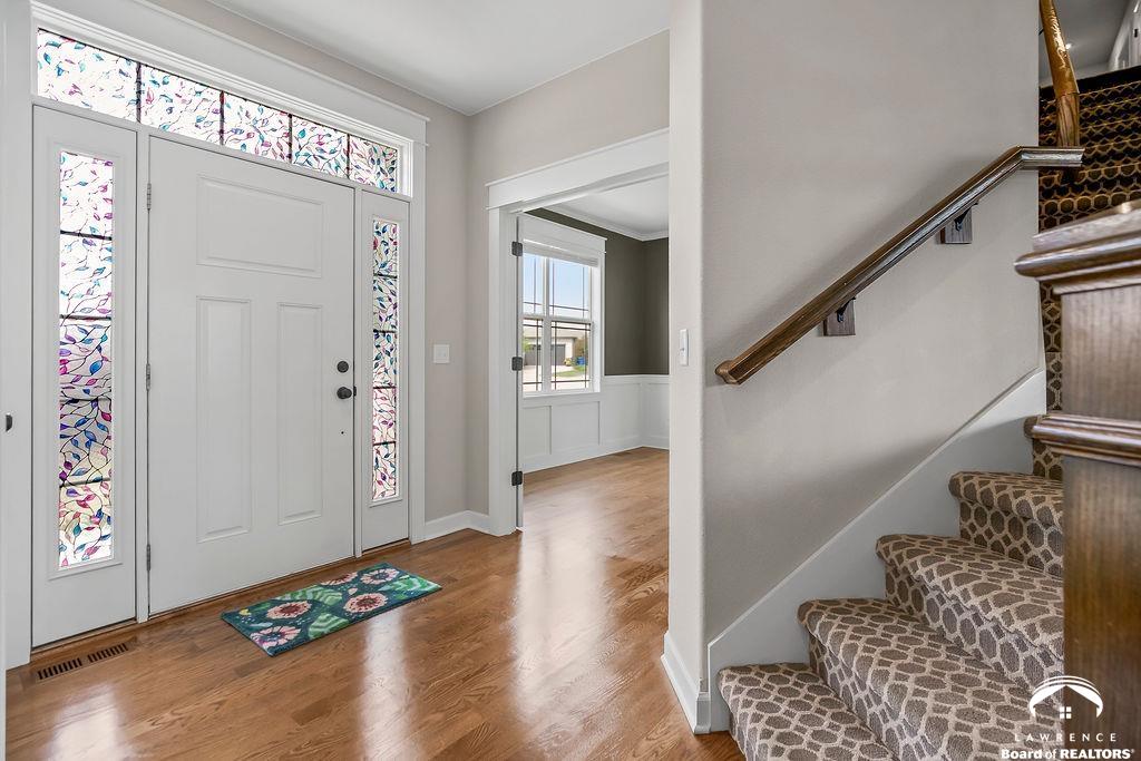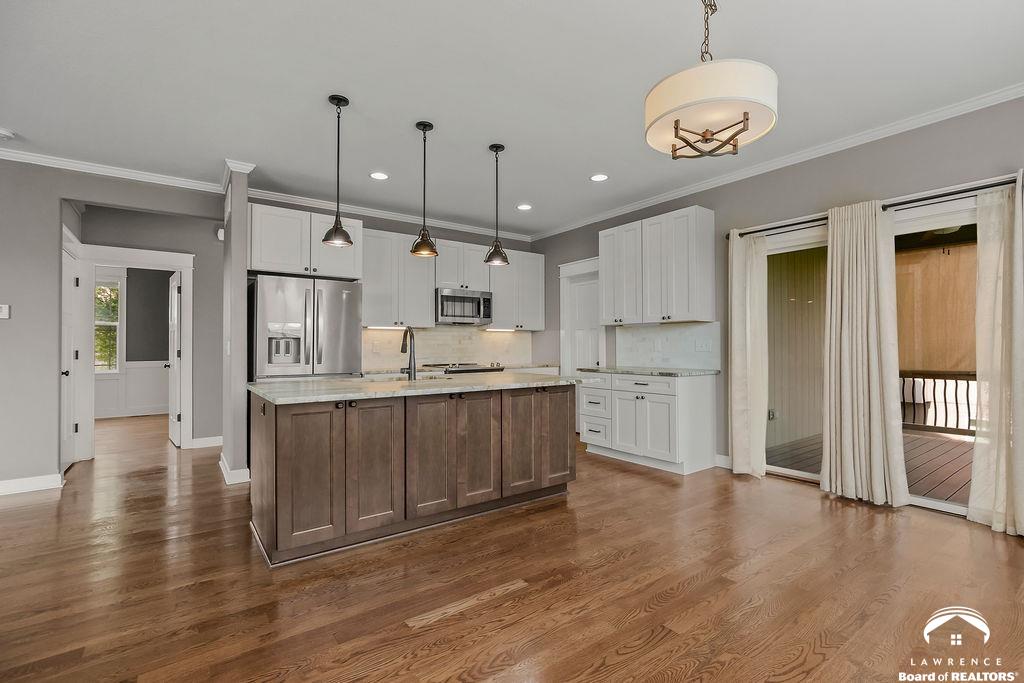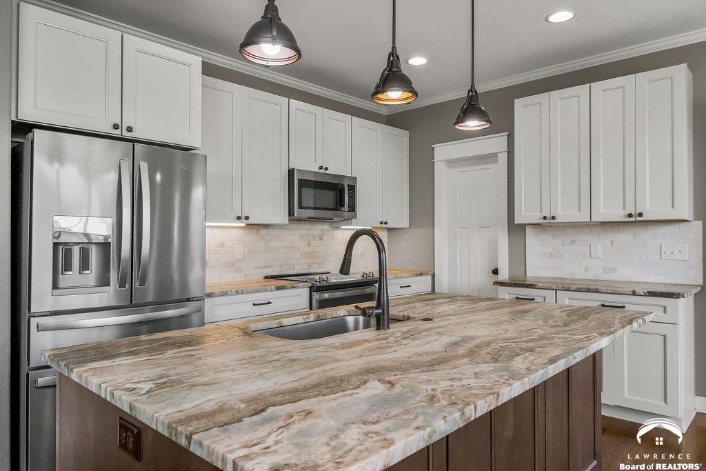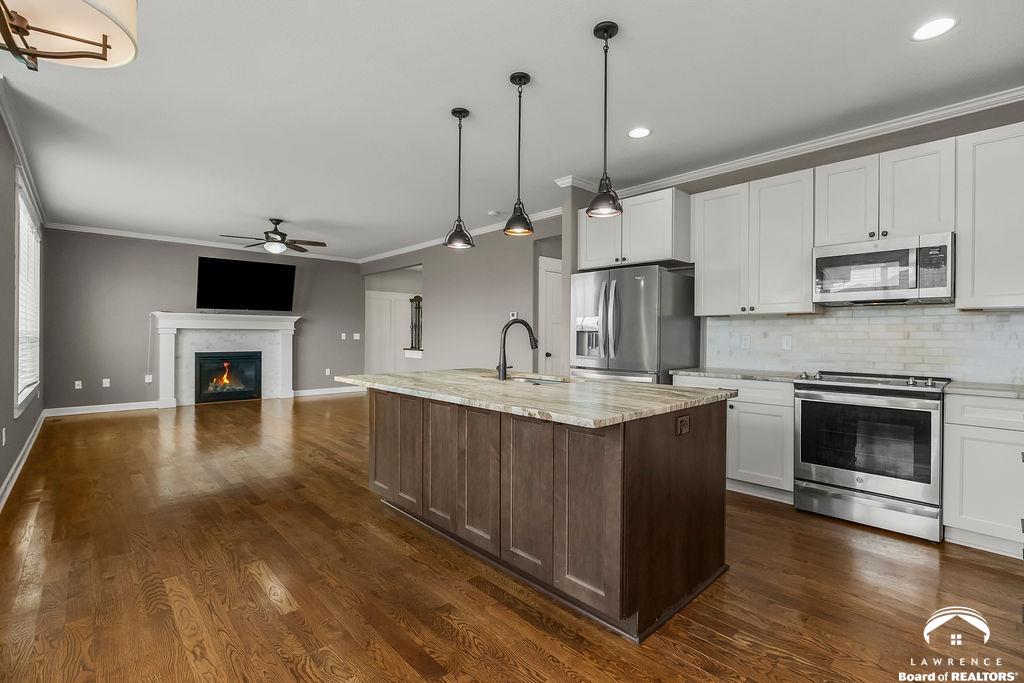 Awesome quality built open plan by Blue Tree Homes in 2017! 4 beds/5 baths & 30' garage! Large kitchen w/island, granite countertops, SS appliances, walk-in pantry. Kitchen dining area is also large PLUS formal dining room or it could be an office -- whatever you prefer. Gorgeous 2nd level features spacious primary suite, oversized shower, double closets, double sinks and beautiful cabinetry. ALL bedrooms are up! 2nd & 3rd bedrooms have split bath. 4th bedroom/guest room has it's own bath. Laundry on 2nd level too. Home boasts 2 HVAC systems, fully finished basement and a 3/4 bath. Perfect family home close to K-10/I-70, Langston Hughes Elementary, Rock Chalk Park, shopping & restaurants. Seller is offering a $5,000 credit!