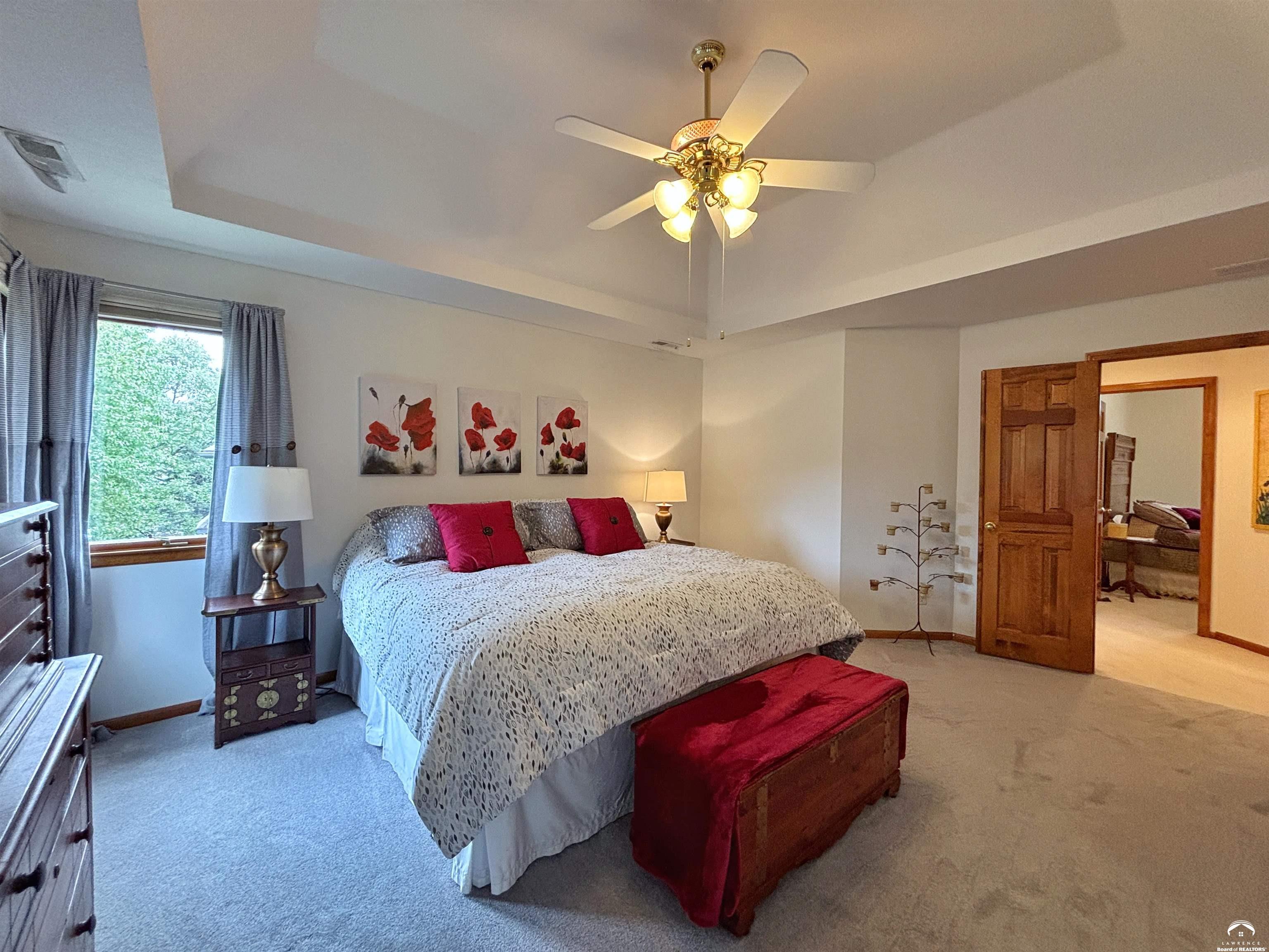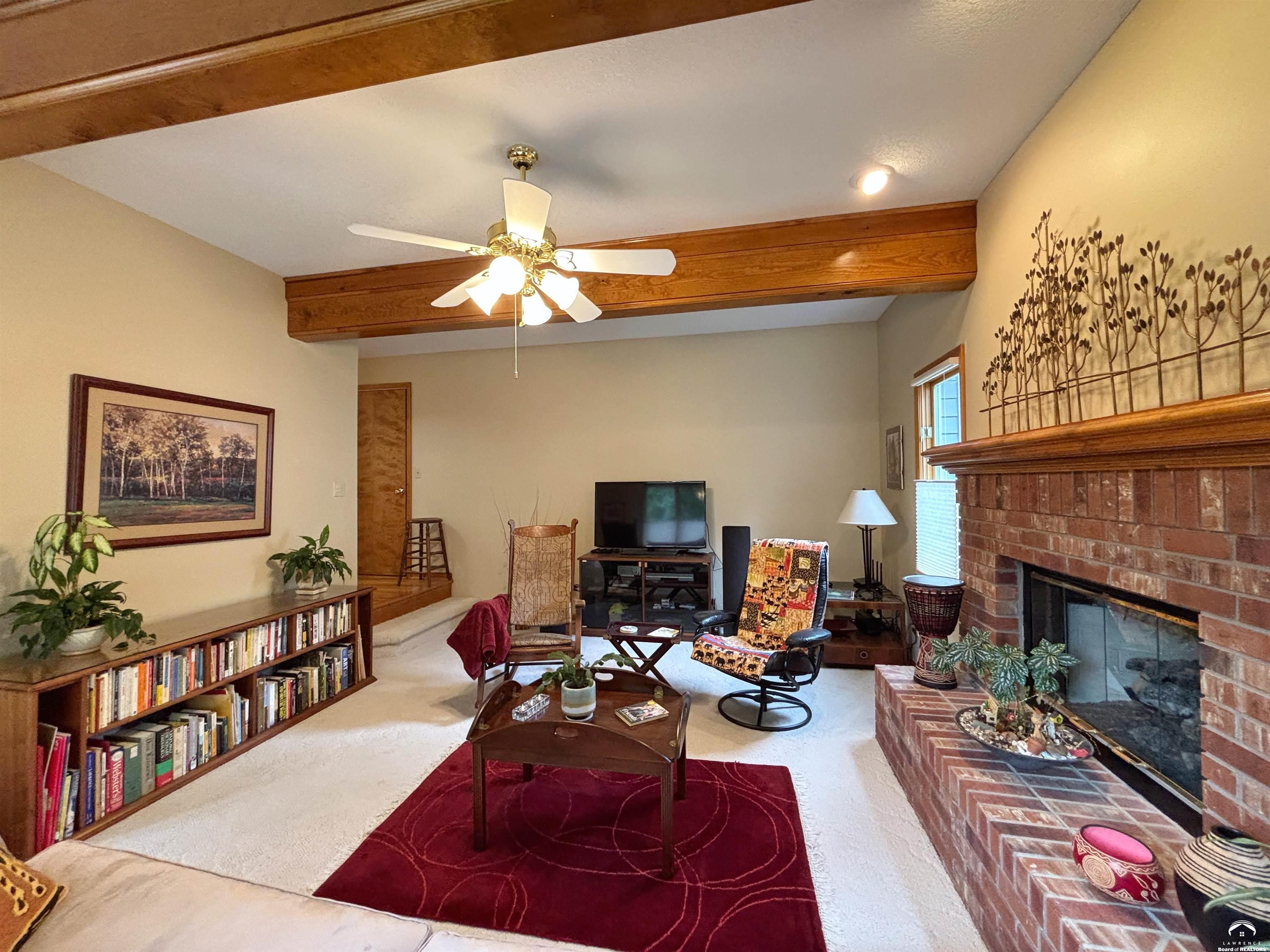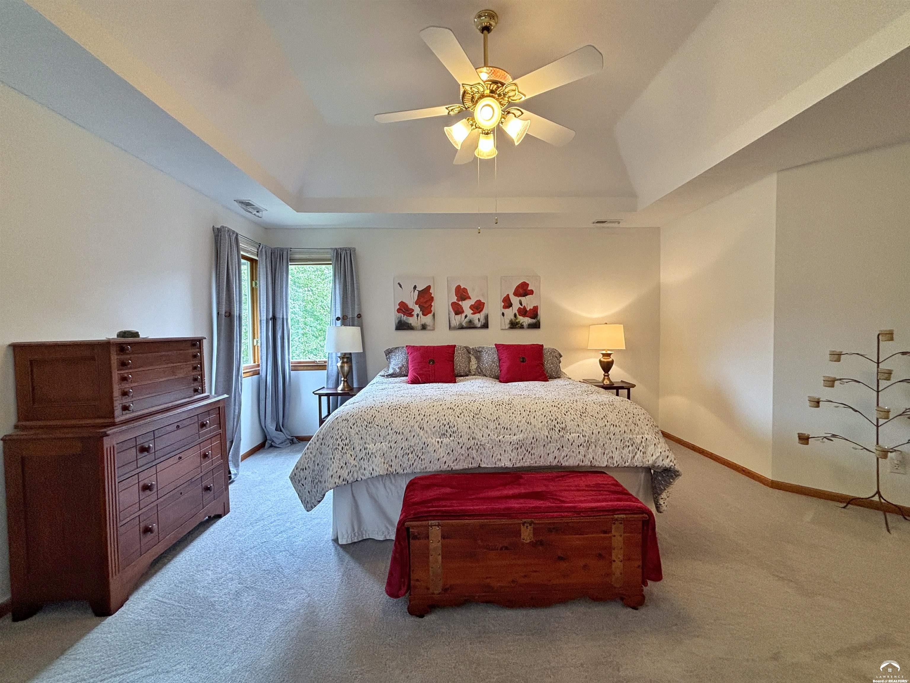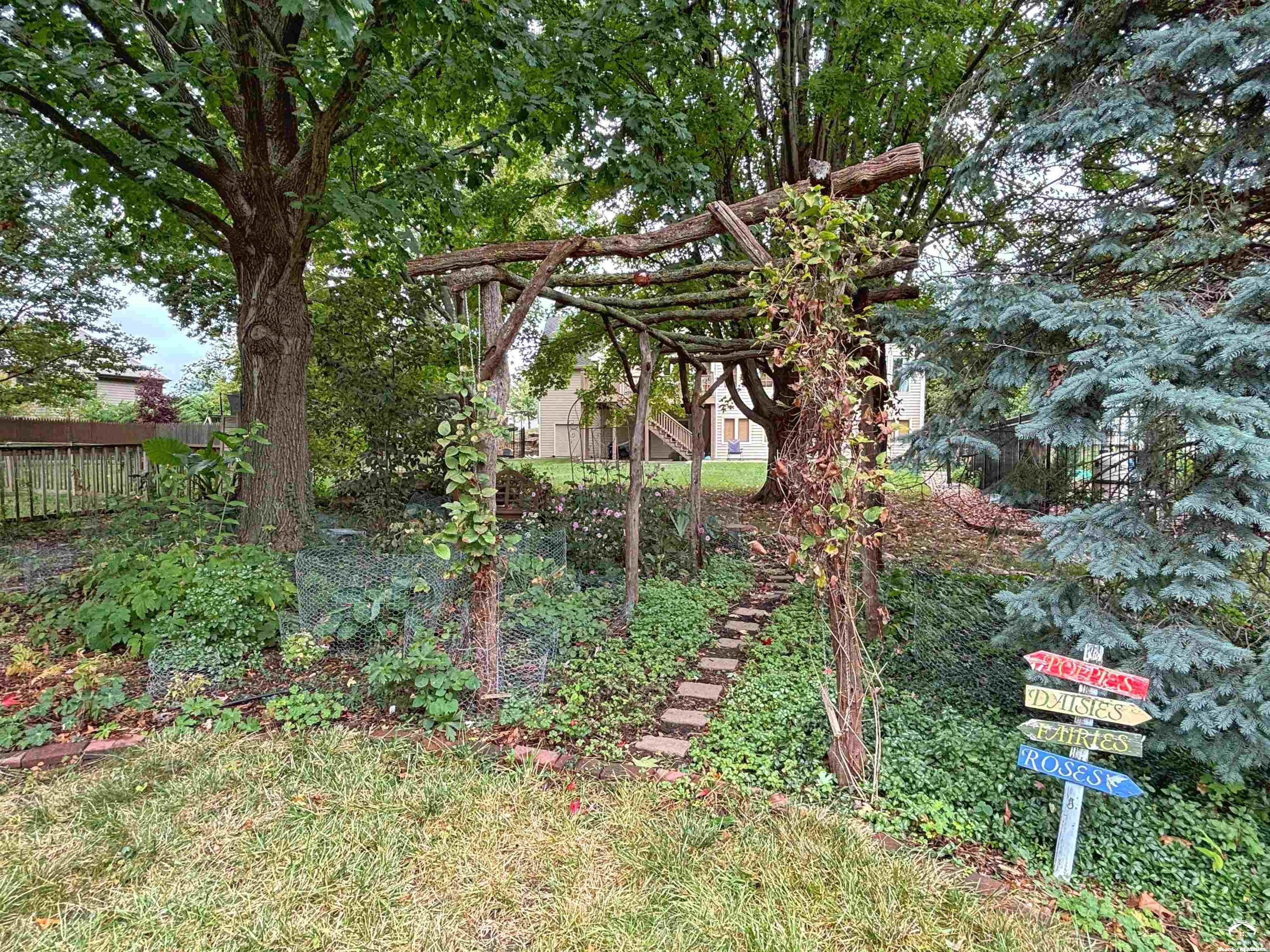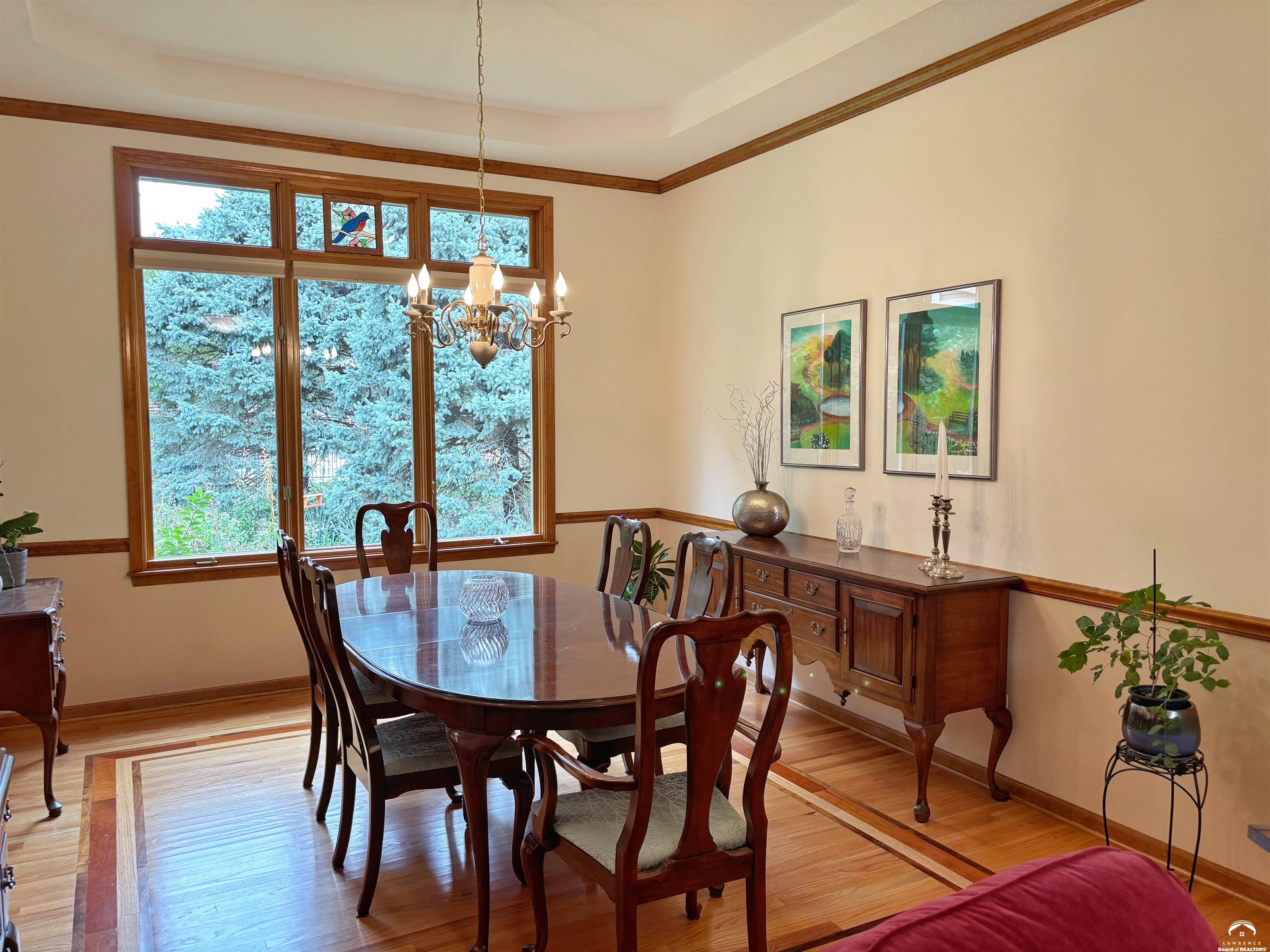Gorgeous Home on a Grand, Tree-Lined Street in Alvamar West! Nestled among mature trees and surrounded by lush, detailed landscaping, this 4-bedroom home offers both timeless charm and modern updates in one of west Lawrence’s most sought-after neighborhoods and on one of the neighborhood's prettiest streets. Inside, you'll find a spacious and light-filled layout. The main level features a formal living and dining room with soaring tray ceilings and expansive windows that flood the space with natural light. The updated kitchen offers ample counter space, a convenient eat-in breakfast area, and opens to a cozy family room complete with a fireplace and eye-catching wood beam ceilings, perfect for relaxing or entertaining. Need a quiet space to work? The dedicated office/den offers flexibility for your lifestyle. Updates throughout the home includes wood floors with custom details, modern fixtures, up/down cellular shades. The generous primary suite is a true retreat with a large en suite bathroom featuring updated finishes and a walk-in closet. Three additional bedrooms provide plenty of room for family, guests, or hobbies. Downstairs, the full unfinished basement offers endless potential — finish it out to add value and square footage, or use it as-is for hobbies, workshop space, or storage. Step outside into a backyard that’s a gardener’s dream, brimming with native plants, mature trees, and landscape accents that make this home a standout from every angle. All of this is located close to neighborhood schools, parks, and just minutes from K-10 highway access for easy commuting. Don't miss your chance to own a truly special home in Alvamar West — where nature, space, and style come together beautifully