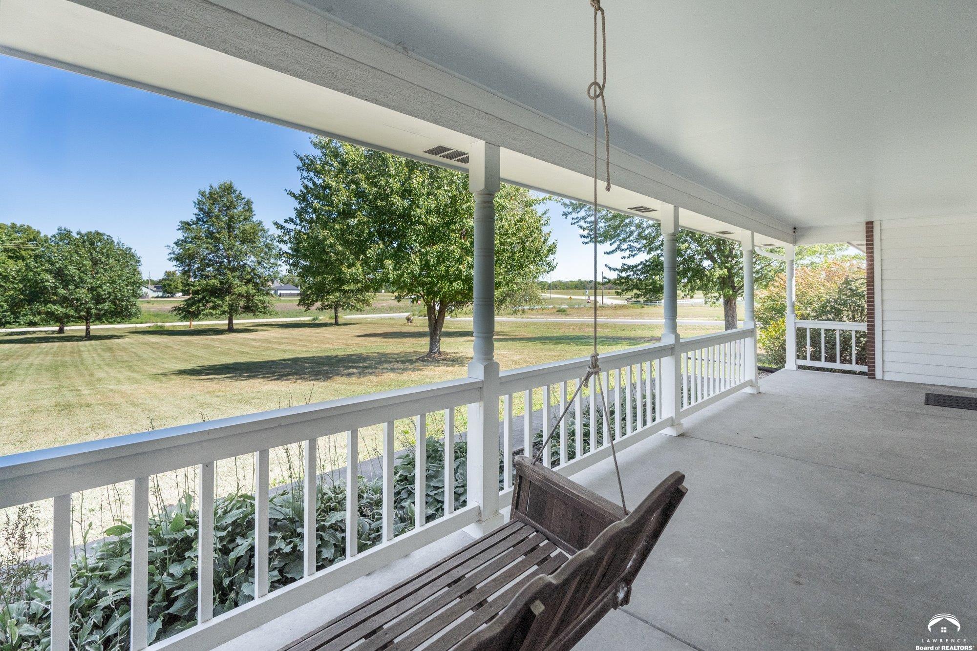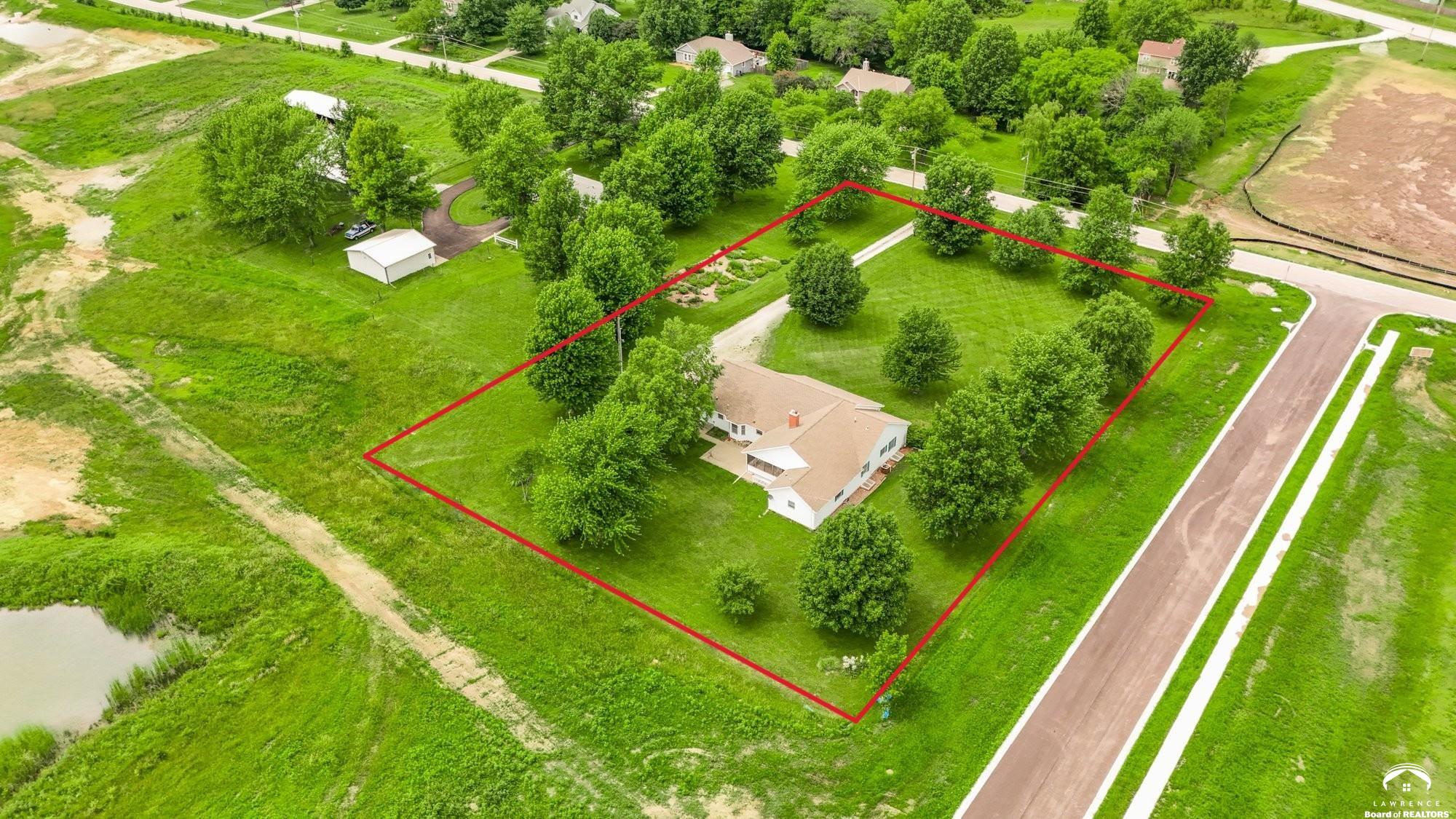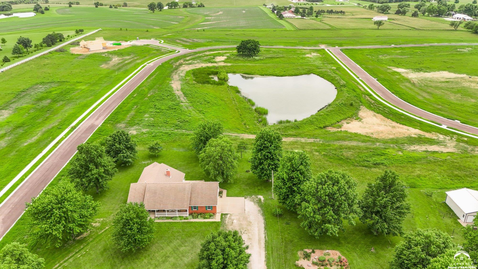Welcome home to this custom built, ranch style property with main-level living located on 1.77 acres within Baldwin’s new Trail View Subdivision. Featuring 3 bedrooms, 3.5 bathrooms, with plenty of space to add 2+ more bedrooms along with additional living space in the basement!! Highlights include: flawless hardwood flooring, wood burning stove, screened in patio, spacious bedrooms, beautiful views and natural light, plus so much room to expand!!! The large family room, open to the kitchen, has beautiful built-ins, a wood burning stove fireplace, and access to the cozy screened-in porch with views of the Trail View pond. The kitchen features ample counter space and cabinetry, as well as an adorable breakfast nook or office space, with amazing natural light. A second dining area is located off the kitchen, perfect for entertaining and large gatherings. The main level has 3 bedrooms each with beautiful hardwood flooring. The primary bedroom complete with an ensuite bathroom, has two separate vanities, a separate shower and soaking tub, and two large walk-in closets. The laundry room has additional storage space and is conveniently located off of the garage, along with a ½ bathroom and access to the backyard. The expansive basement is partially finished with an open area perfect for use as a rec or media room, as well as an area to create a 4th and 5th bedroom, along with plenty of room to expand in the spacious unfinished storage areas. The basement also has a separate 2nd entrance with a walk-up to the backyard, as well a huge concrete safe room. The acreage has large, mature trees, a beautiful flower garden, stunning sunrise and sunset views, and backs to neighboring green space and pond. Step onto the adorable front porch complete with porch swing perfect for relaxing after a long day. For those who love the peaceful acreage, while still being perfectly located close to quaint downtown Baldwin City and Baker University, this property has it all! Located within an easy commute to KC, Gardner, Lawrence, Ottawa, and surrounding. Motivated seller.