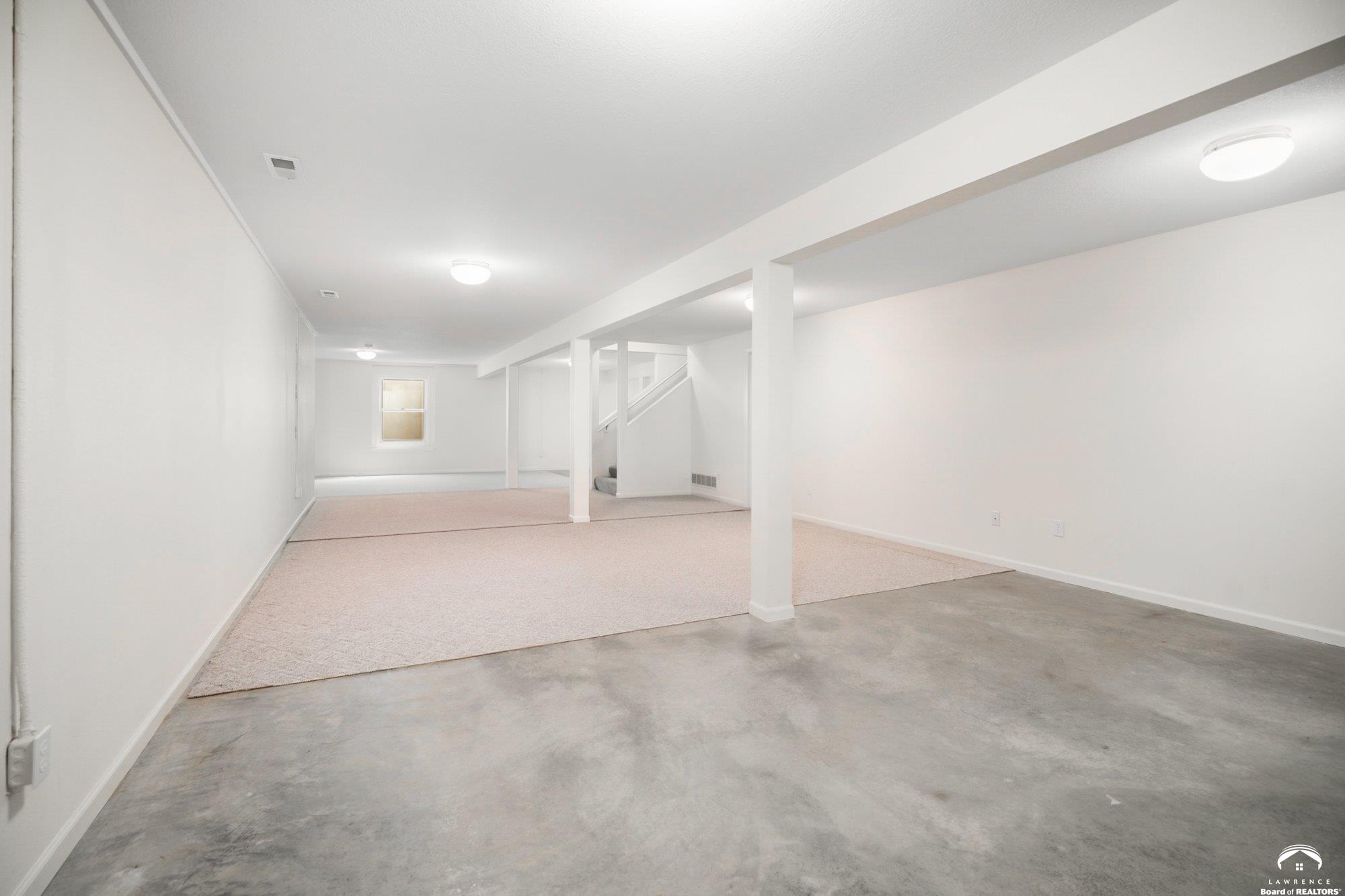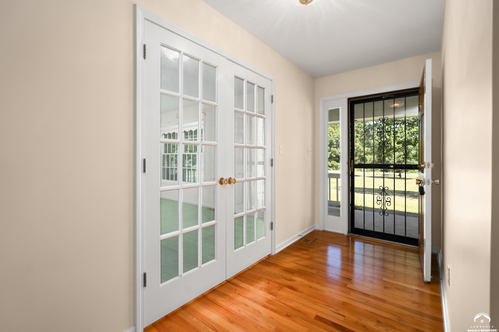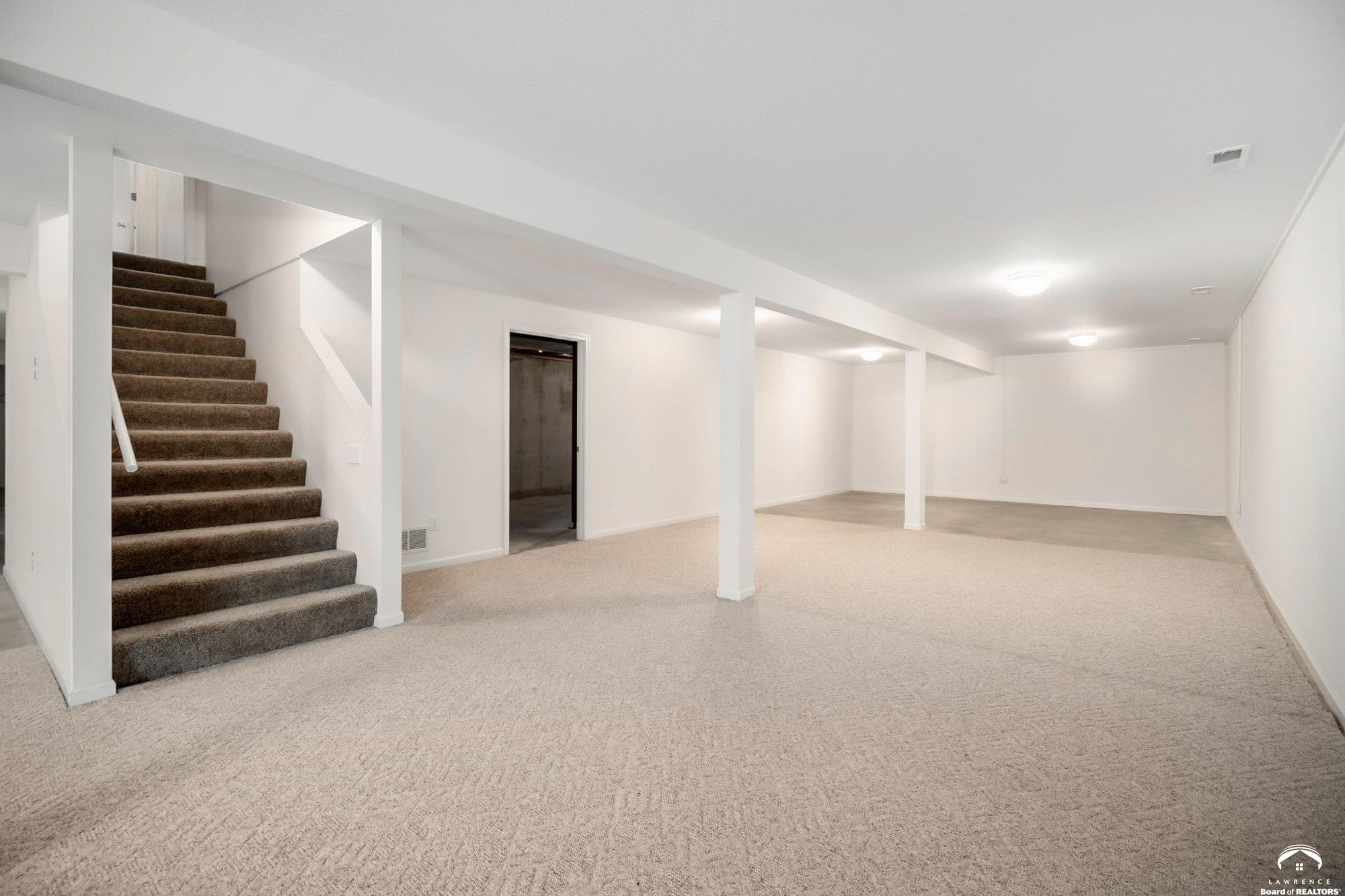 Welcome home to this custom built, ranch style property with main-level living located on 1.77 acres within Baldwin’s new Trail View Subdivision. Featuring 3 bedrooms, 3.5 bathrooms, with plenty of space to add 2+ more bedrooms along with additional living space in the basement!! Highlights include: flawless hardwood flooring, wood burning stove, screened in patio, spacious bedrooms, beautiful views and natural light, plus so much room to expand!!! The large family room, open to the kitchen, has beautiful built-ins, a wood burning stove fireplace, and access to the cozy screened-in porch with views of the Trail View pond. The kitchen features ample counter space and cabinetry, as well as an adorable breakfast nook or office space, with amazing natural light. A second dining area is located off the kitchen, perfect for entertaining and large gatherings. The main level has 3 bedrooms each with beautiful hardwood flooring. The primary bedroom complete with an ensuite bathroom, has two separate vanities, a separate shower and soaking tub, and two large walk-in closets. The laundry room has additional storage space and is conveniently located off of the garage, along with a ½ bathroom and access to the backyard. The expansive basement is partially finished with an open area perfect for use as a rec or media room, as well as an area to create a 4th and 5th bedroom, along with plenty of room to expand in the spacious unfinished storage areas. The basement also has a separate 2nd entrance with a walk-up to the backyard, as well a huge concrete safe room. The acreage has large, mature trees, a beautiful flower garden, stunning sunrise and sunset views, and backs to neighboring green space and pond. Step onto the adorable front porch complete with porch swing perfect for relaxing after a long day. For those who love the peaceful acreage, while still being perfectly located close to quaint downtown Baldwin City and Baker University, this property has it all! Located within an easy commute to KC, Gardner, Lawrence, Ottawa, and surrounding. Motivated seller.