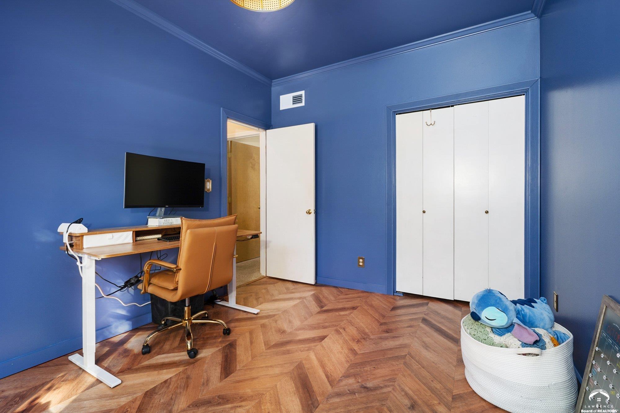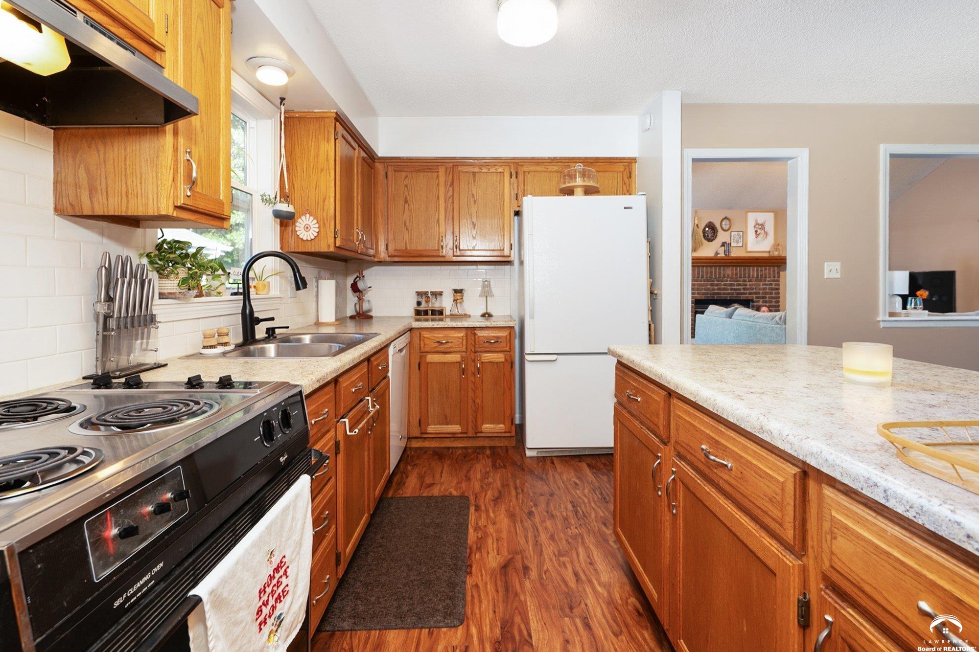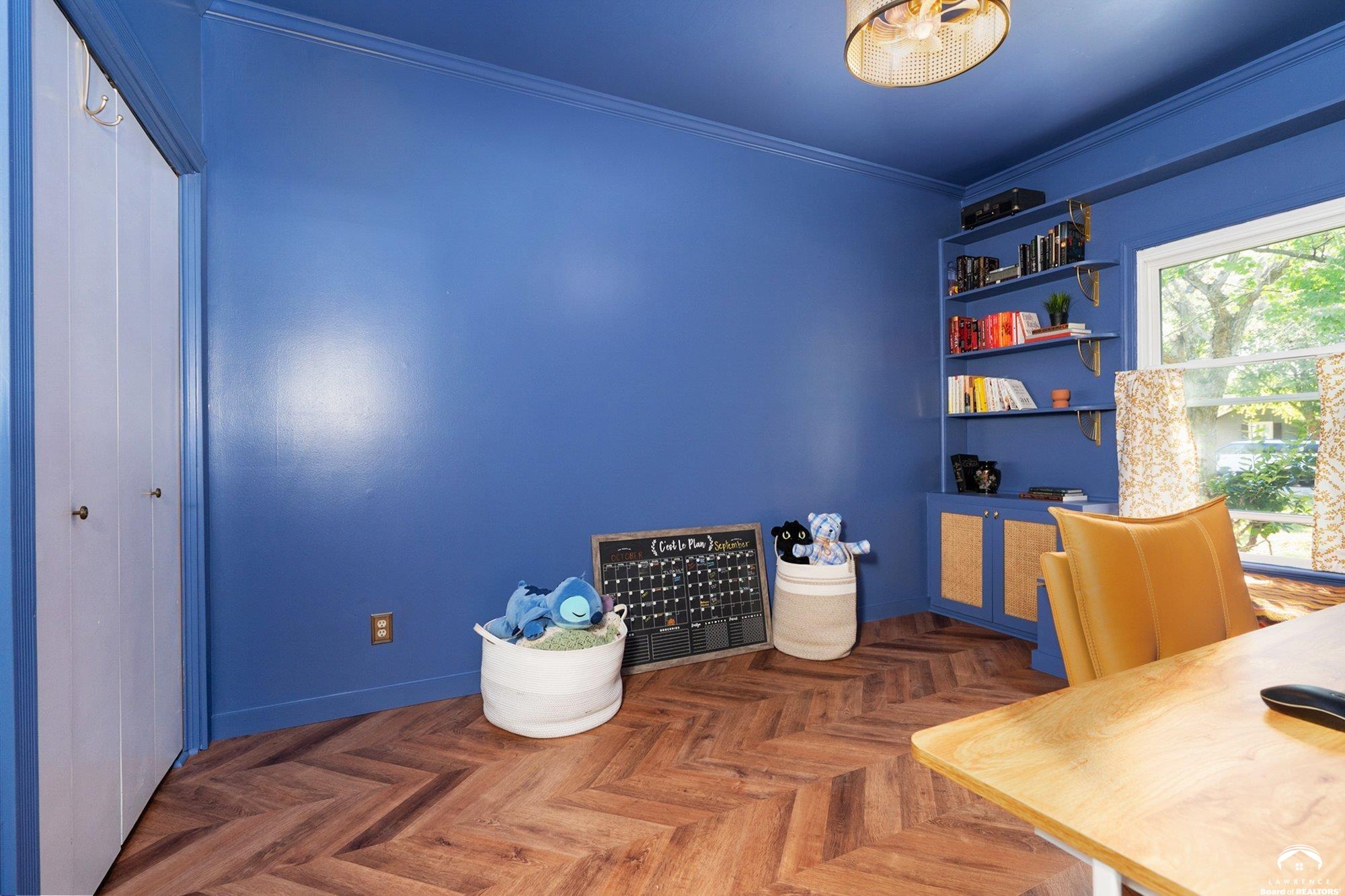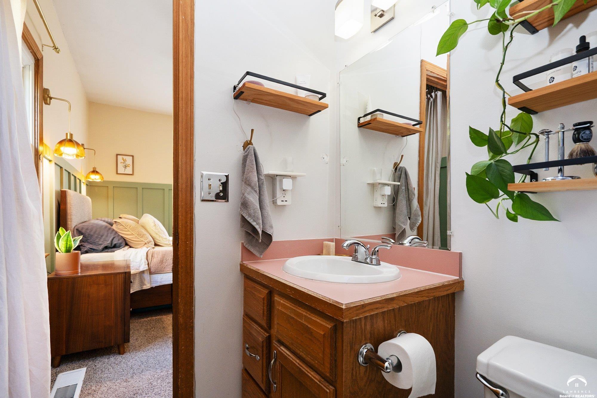Charming West Lawrence house with finished basement, attached garage & fenced backyard! This beautiful house offers all 3 bedrooms and 2 bathrooms on one level. The lovely primary bedroom features wainscoting, sconce lights, and an en suite with skylight and shower. Throughout the home, custom woodwork and built-in shelving add warmth and character that set this home apart. Enjoy the convenience of an attached two-car garage, main floor laundry area and a finished basement. The fully fenced yard includes a shed and an additional fenced-in garden area, perfect for pets or planting. No HOA!