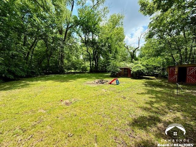 INVESTOR SPECIAL. This East Lawrence property is primed & ready for restoration. Flip it, develop it, update & hold as your own income-producing property OR build sweat equity and make the improvements yourself to create the perfect home for YOU. Explore all the possibilities of this true ranch home on a double lot with 120 feet of road frontage nestled adjacent to Burroughs Creek and Trail, & just down the street from both Parnell Park & Burroughs Creek Park & splash pad. The 1600+ sq ft, 3 BR/2 BA home is in need of repairs & updates. Though its large footprint provides a great opportunity for spacious one-level living. The expansive living room is flanked by a primary bedroom with en-suite bath on one side & 2 more bedrooms with bathroom on the other side of the home. There's a nice covered back patio that overlooks the large semi-private backyard that provides plenty of room to roam & is shaded by trees. Use your skillset to bring it back to its former glory or explore its development potential with the City of Lawrence. Preliminary discussions with City Planning & Zoning have suggested the ability to subdivide and/or build multiple dwellings on the property. Either way, bring your vision and roll up your sleeves to make this property shine! Home sold in present As Is condition, seller will make no repairs.