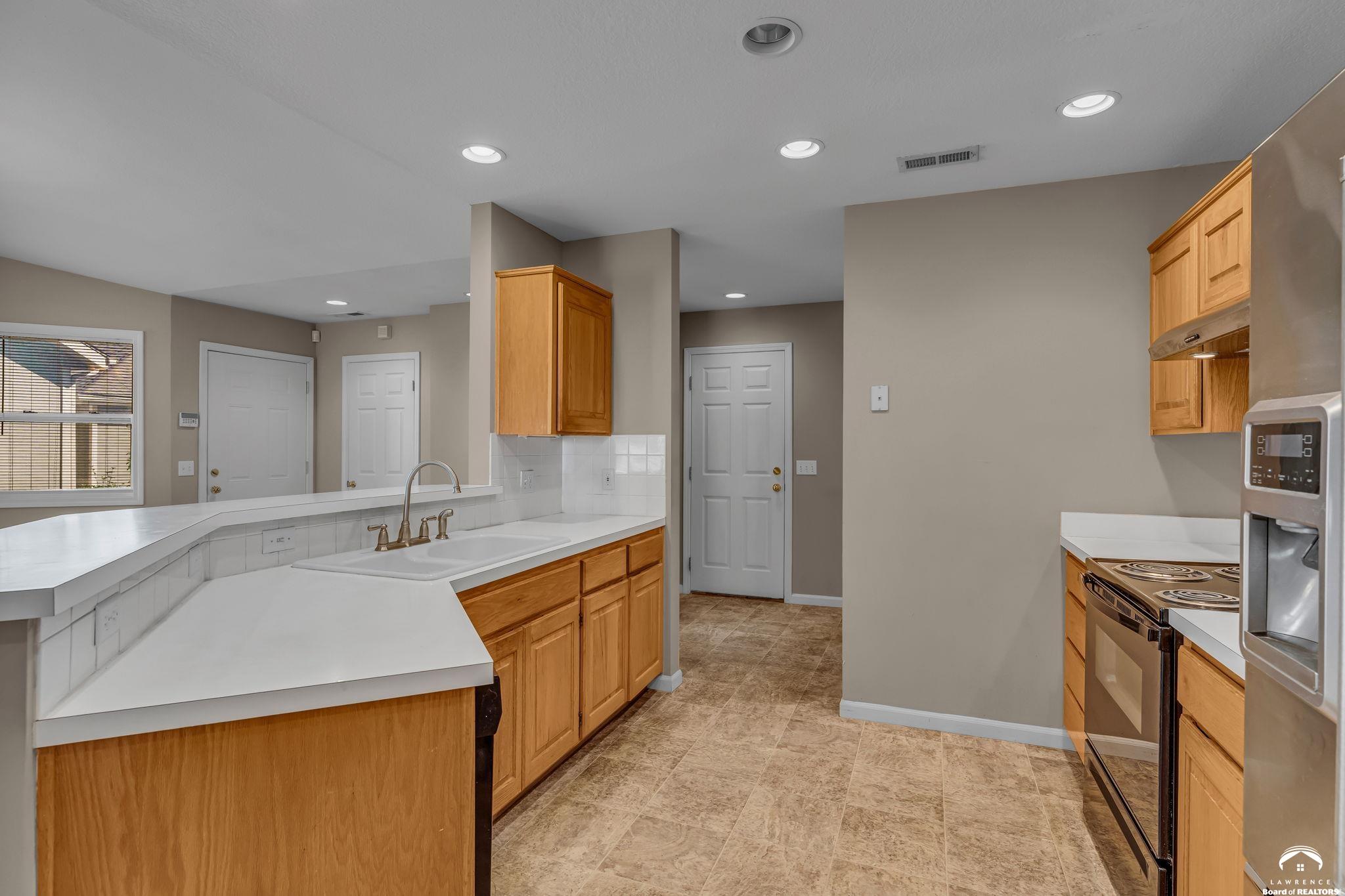 Here's your opportunity for main-level living on a quiet street, near the end of the cul-de-sac. Nice open plan, vaulted living room with fireplace. 2 bedroom, 2 bath. Primary bedroom has own bathroom. HOA covers lawn care, snow removal, sprinkler system spring start-up w/back flow inspection, and blowing out the system in the fall. HOA does not allow for rentals, must be owner occupied. Selling "As Is", Seller will make no repairs. Inspections are welcome. Conveniently located, close to shopping, restaurants, and K-10 bypass.