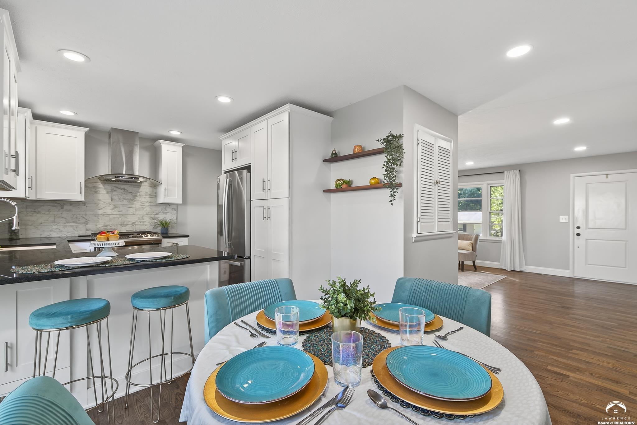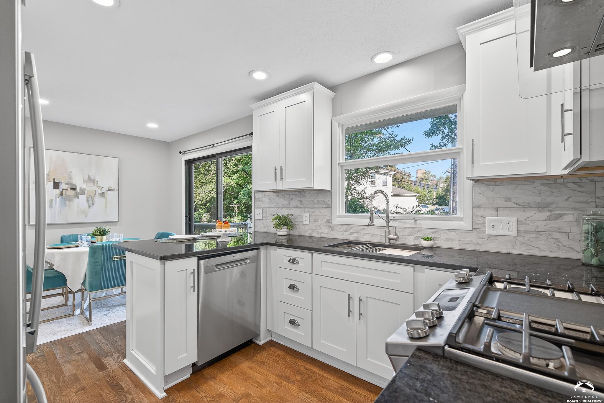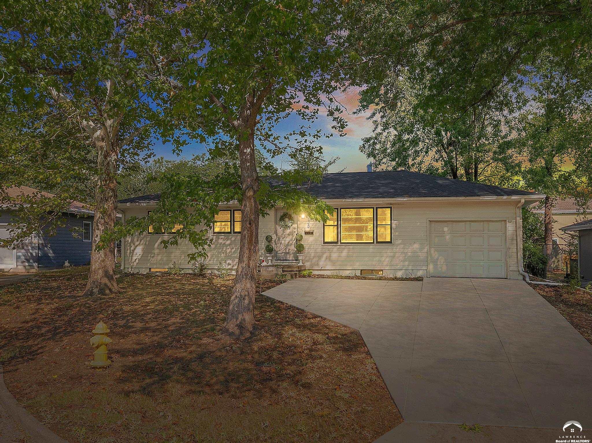 Incredible opportunity to own a fully renovated mid-century ranch just two blocks from The University of Kansas south campus! This light-filled, south-facing home has been lovingly cared for by the same family for nearly 50 years and thoughtfully updated over time. Recent renovations include a delightful kitchen remodel, beautifully updated bathrooms, and a new patio door that opens to a lovely outdoor patio space — perfect for relaxing or entertaining. The primary bedroom features its own en suite bathroom, offering comfort and privacy. With three bedrooms on the main level, plus a fourth non-conforming bedroom and plumbing in place for an additional bath in the basement, there’s plenty of flexibility for your needs. This home perfectly blends timeless mid-century charm with modern convenience. Come see this beauty today! All taxes and measurements are approximate.