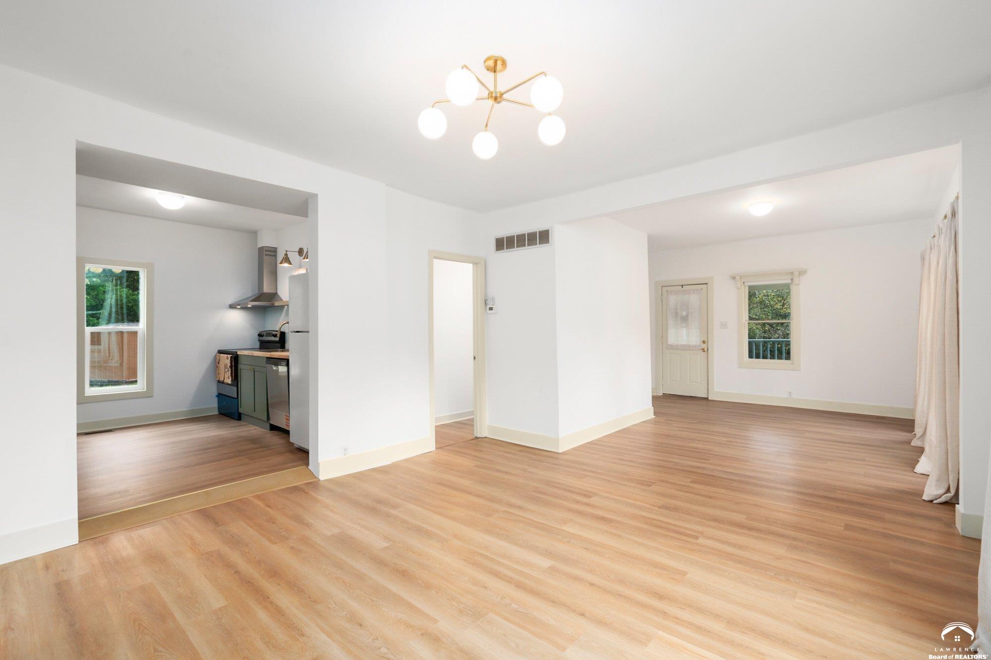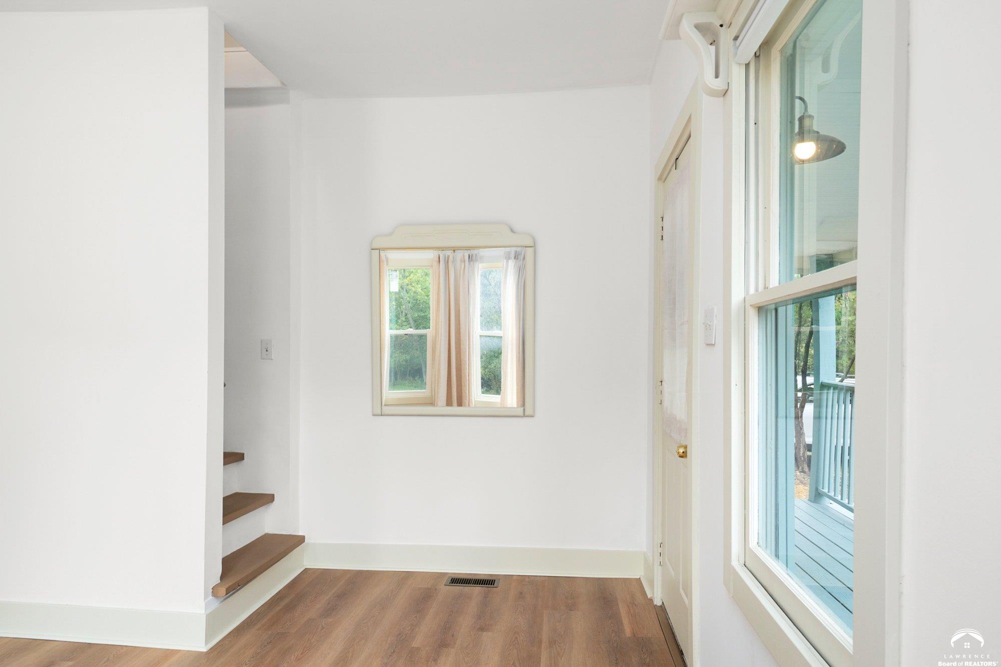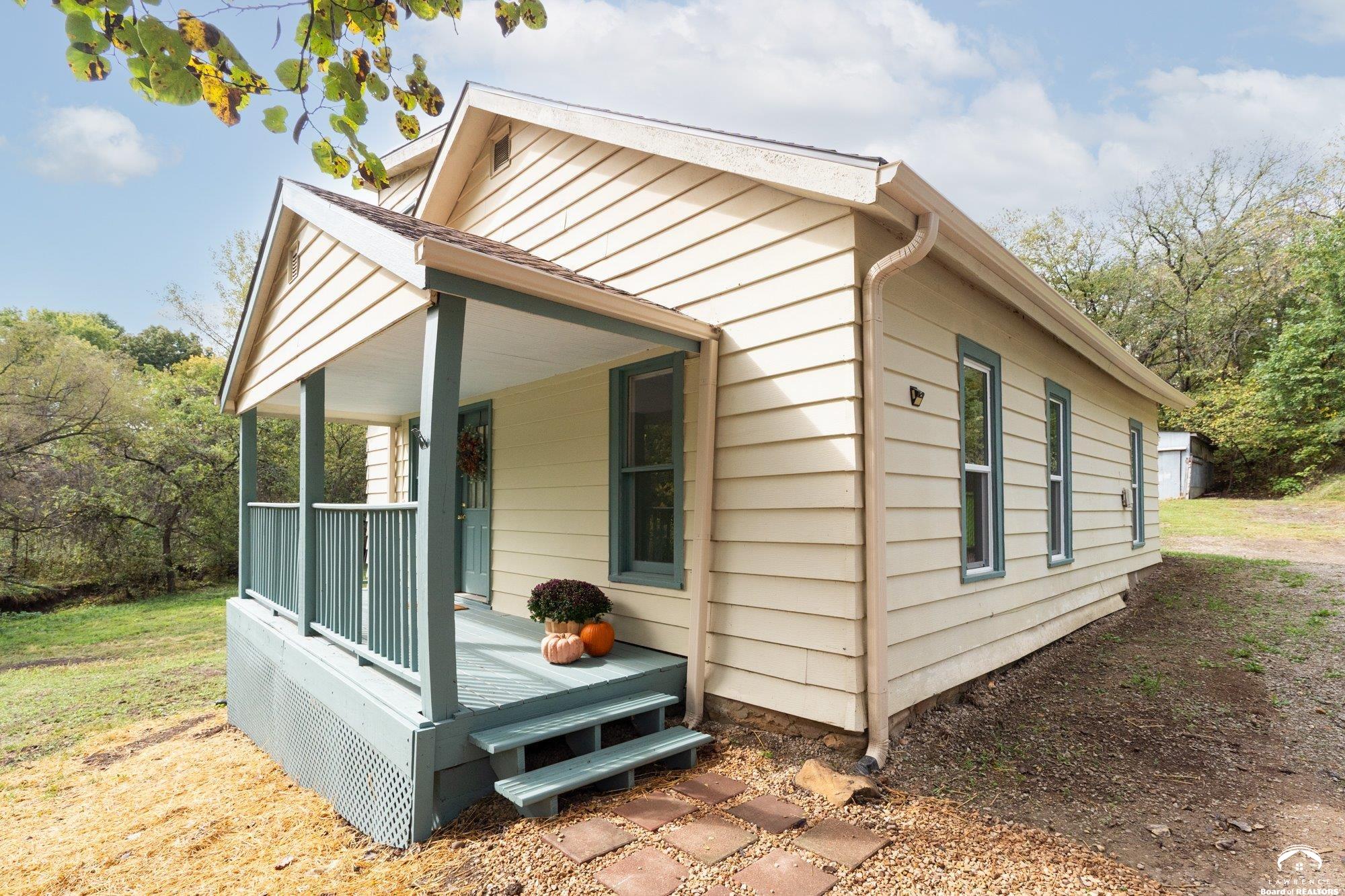 Where the trees reach for the sky and the crickets chirp skilled caring hands have created new life in this vintage 1900 farmhouse. The Generous main level is bright with new windows looking out over the ground rolling gently into the creek before a tree covered bluff that boarders the North side of a high hayfield. A nearly all new interior shines throughout. The stunning remodeled kitchen is ready for fun and entertaining with amazing cabinet and counter space opening to a huge dining room. Spaces for crafts and quiet time await upstairs and downstairs with nook-like spaces. Home care should be simplified for many years to come with new windows, new furnace, new AC, new roof, and updated electrical. Nestle into this sweet home and it’s 12.7 beautiful acres and enjoy fun and adventures adventures with your own nature preserve from meandering grounds around the home up to the expansive field hidden by the tree line. a spectacular opportunity for a Beautiful little farmhouse on amazing acreage. 20 minute drive from Lawrence and quick ride up the road to MClouth