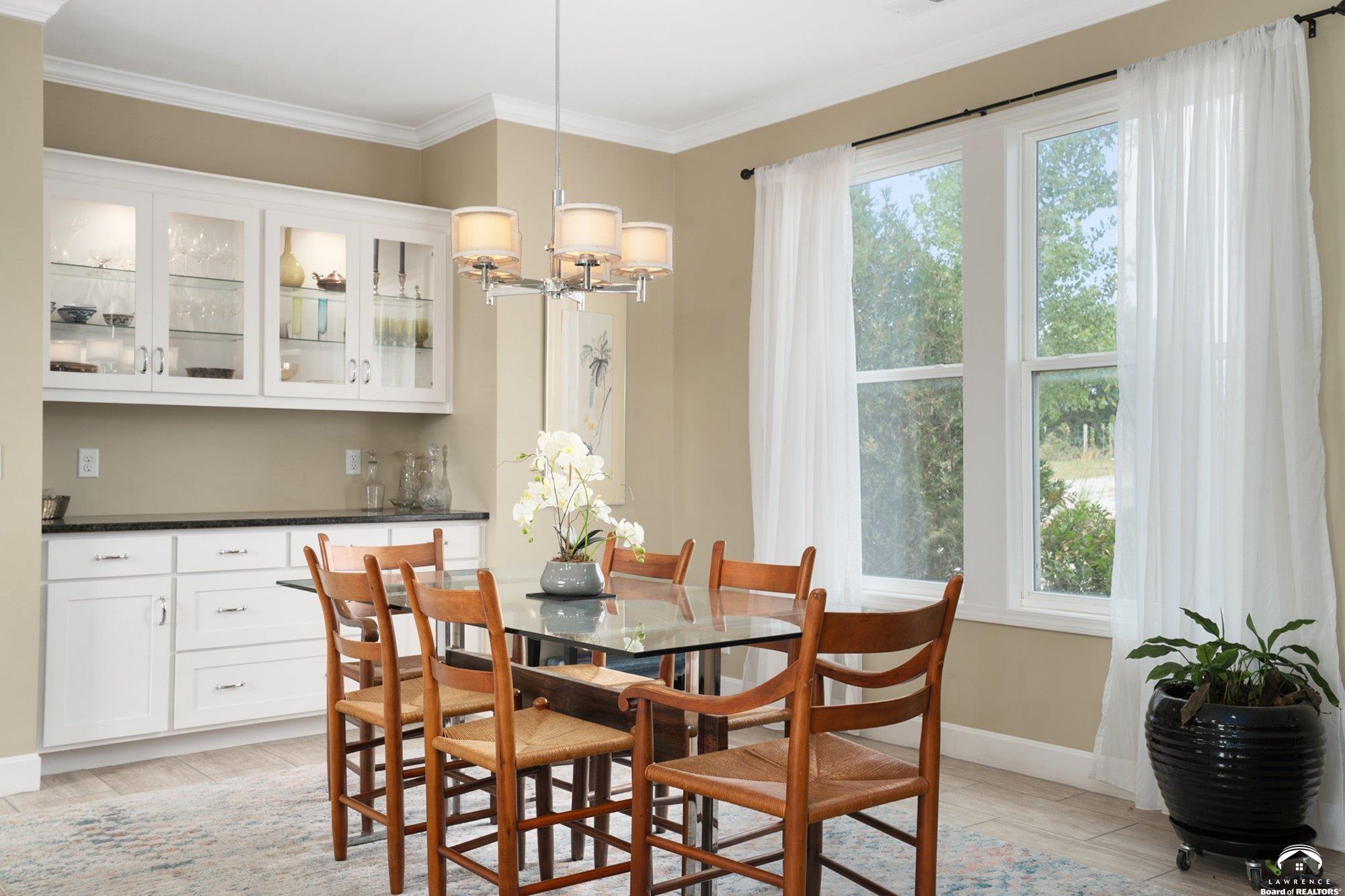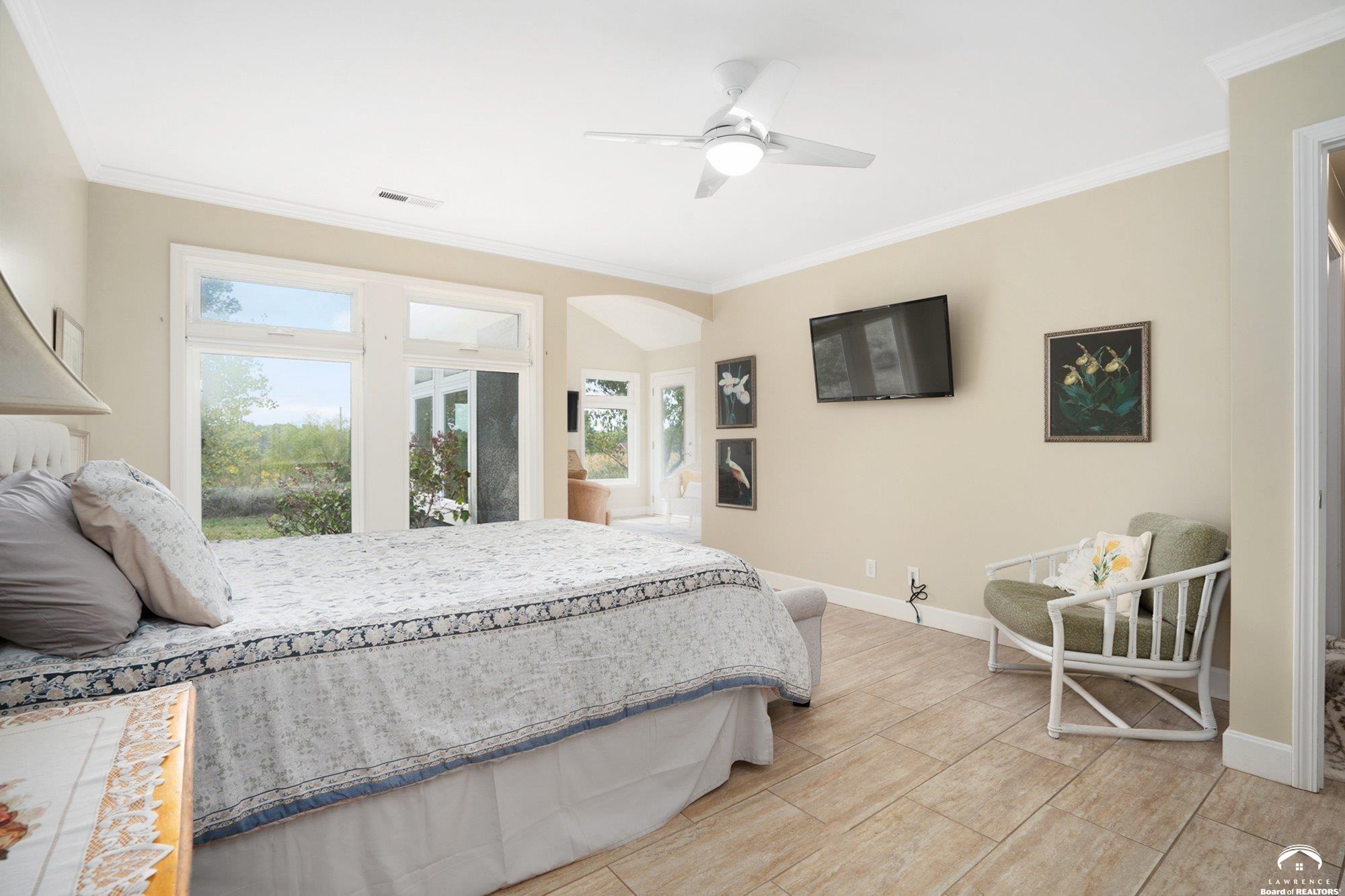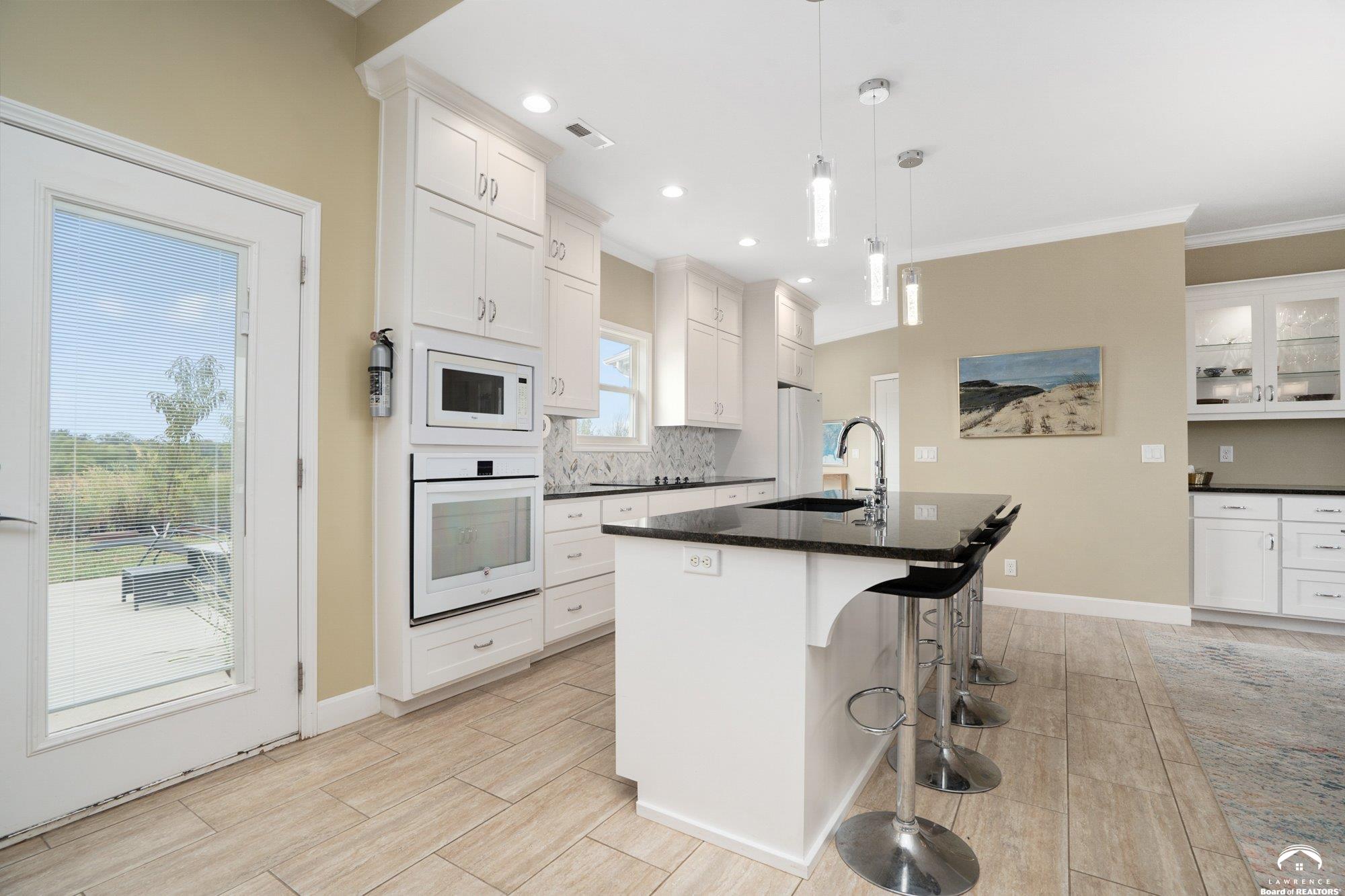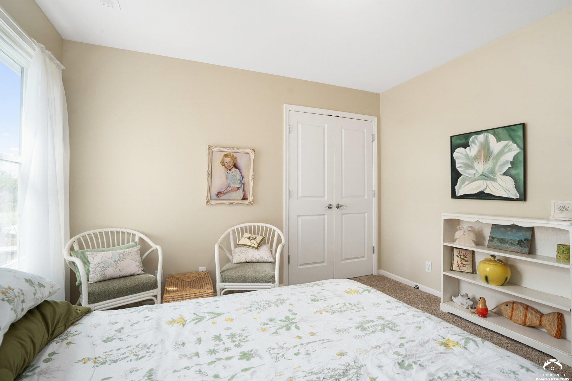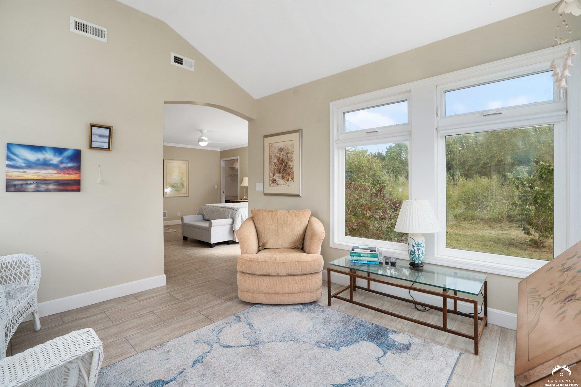 Welcome to Prairie Paradise! An exceptional, custom built, ranch style home with main-level living tucked away on 5 acres of serene countryside. This beautiful home features 4 spacious bedrooms, 2.5 bathrooms, a sunroom, sitting room, plus so much more!! As you step into the entryway, you are greeted with an open floorplan design, surrounded by large picture windows flooded with natural light & exceptional views. The spacious living room showcases a fireplace and beautiful built-ins, as well as an additional gathering space perfect for a piano, added seating, or area to entertain. The dining room, complete with a serving area/coffee bar, opens to the stunning kitchen with beautiful countertops and backsplash, a generous island for culinary space & seating for four, plus a huge walk-in pantry. Retreat to the private primary suite offering both comfort and relaxation, large windows, spacious walk-in closet, and access into the laundry area. Relax in the adjacent sunroom with your morning coffee or in the evening watching nature. Two additional bedrooms share a sitting area, perfect for guests, along with a jack and jill bathroom with hallway access to the 4th bedroom. Let's not forget the generous closet space, garage storm shelter, solar panels, geothermal, and radiant heat flooring. Step outside onto the peaceful back porch perfect for relaxing after a long day, or take a nature walk to the private pond. For those who love to entertain, explore, or retreat to a private & peaceful country lifestyle, this property has it all, while still being within reach of amenities in quaint downtown Baldwin City, and within an easy commute to KC, Lawrence, Ottawa, KC and surrounding.
