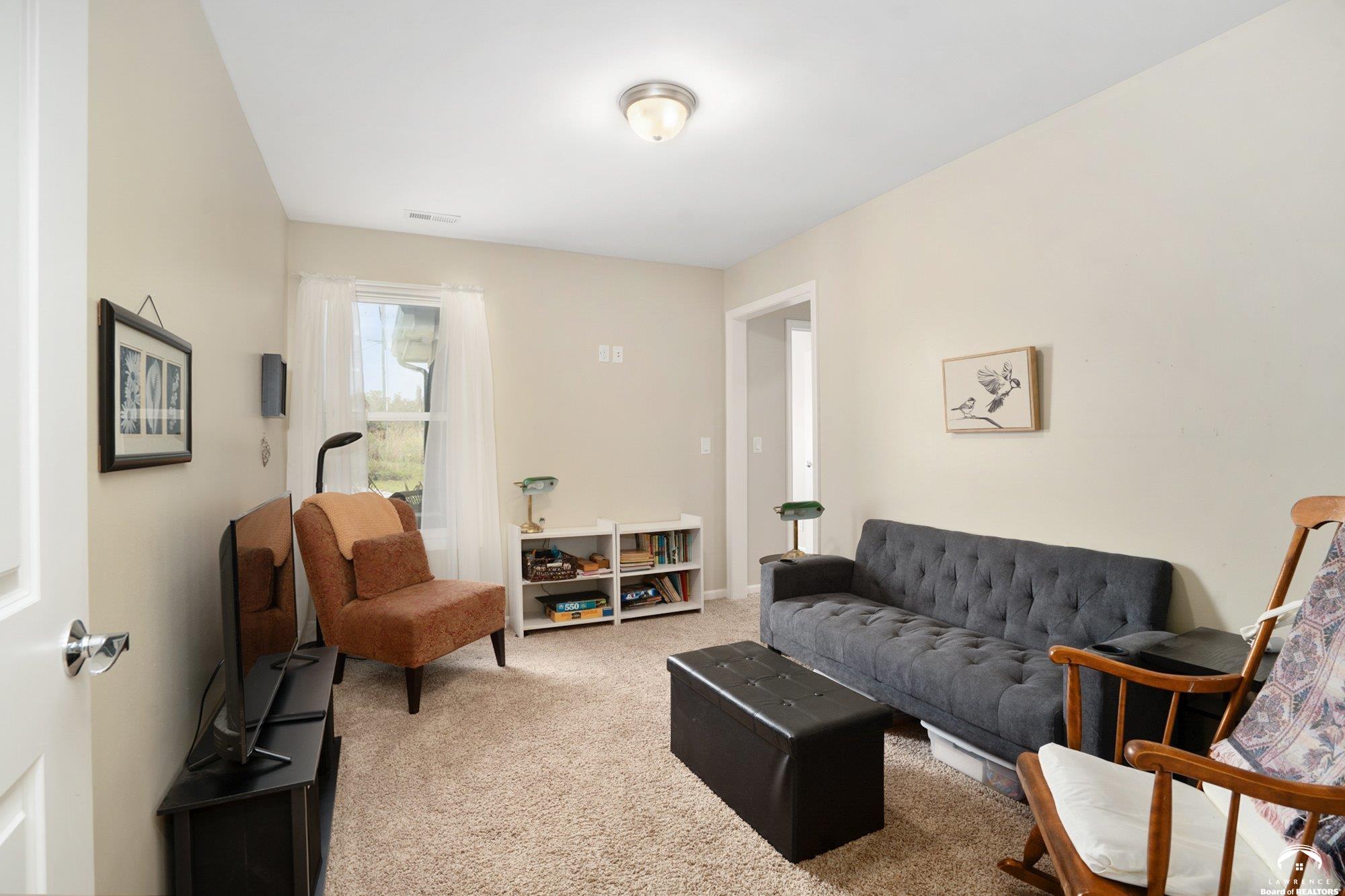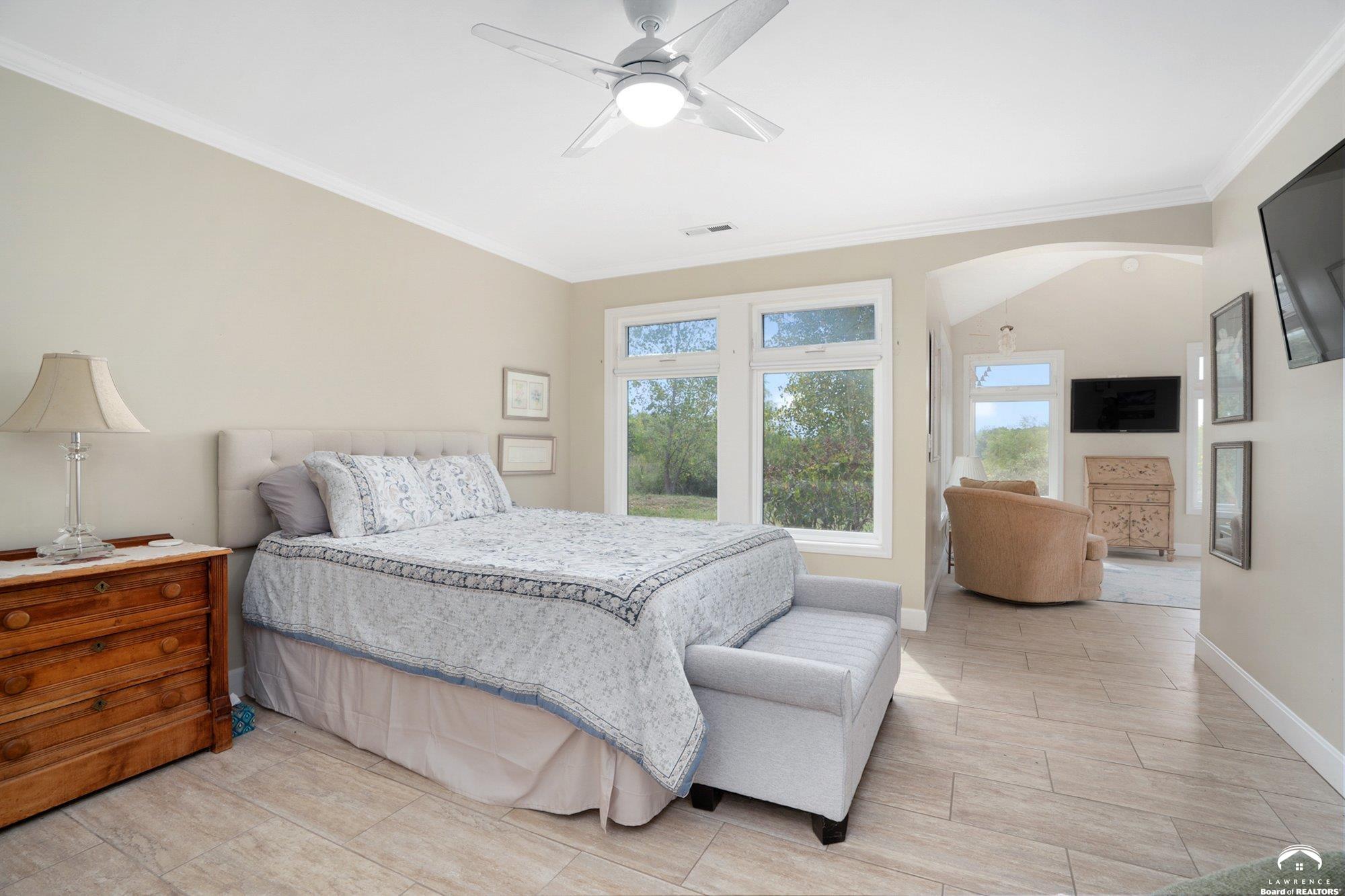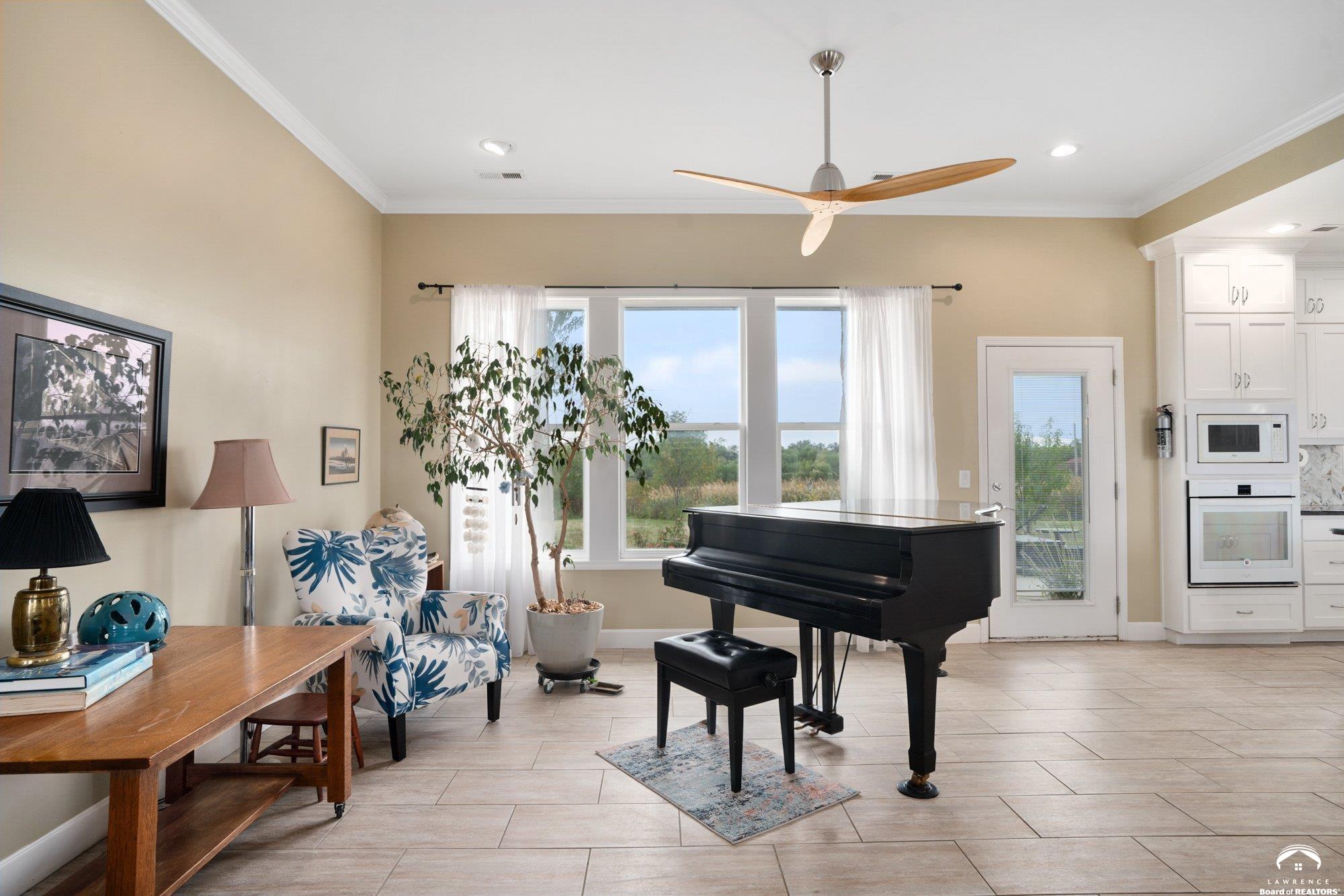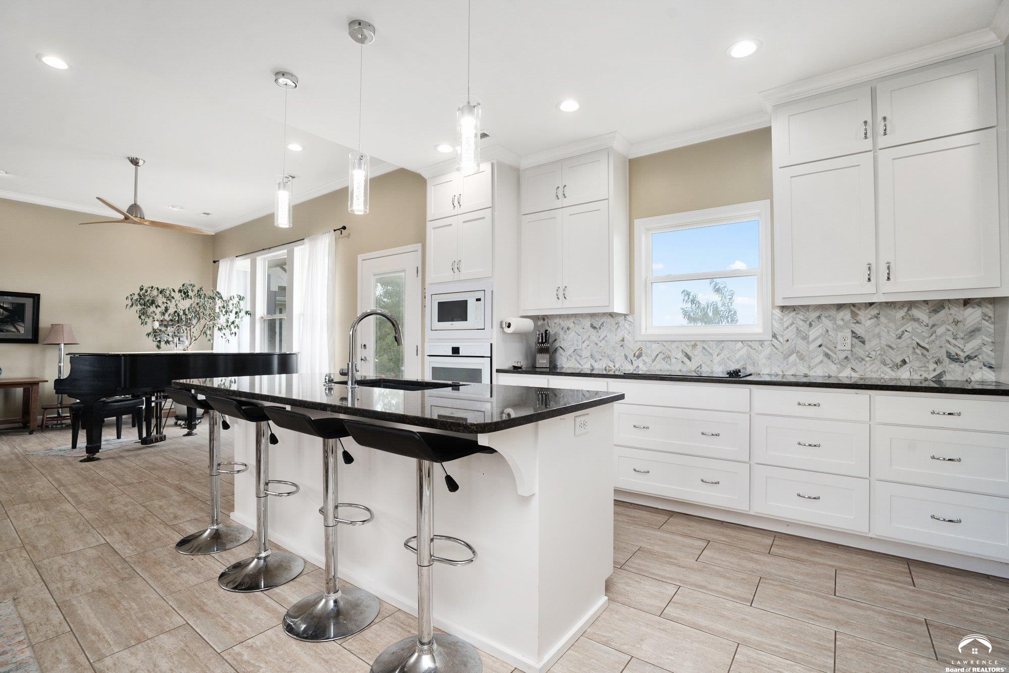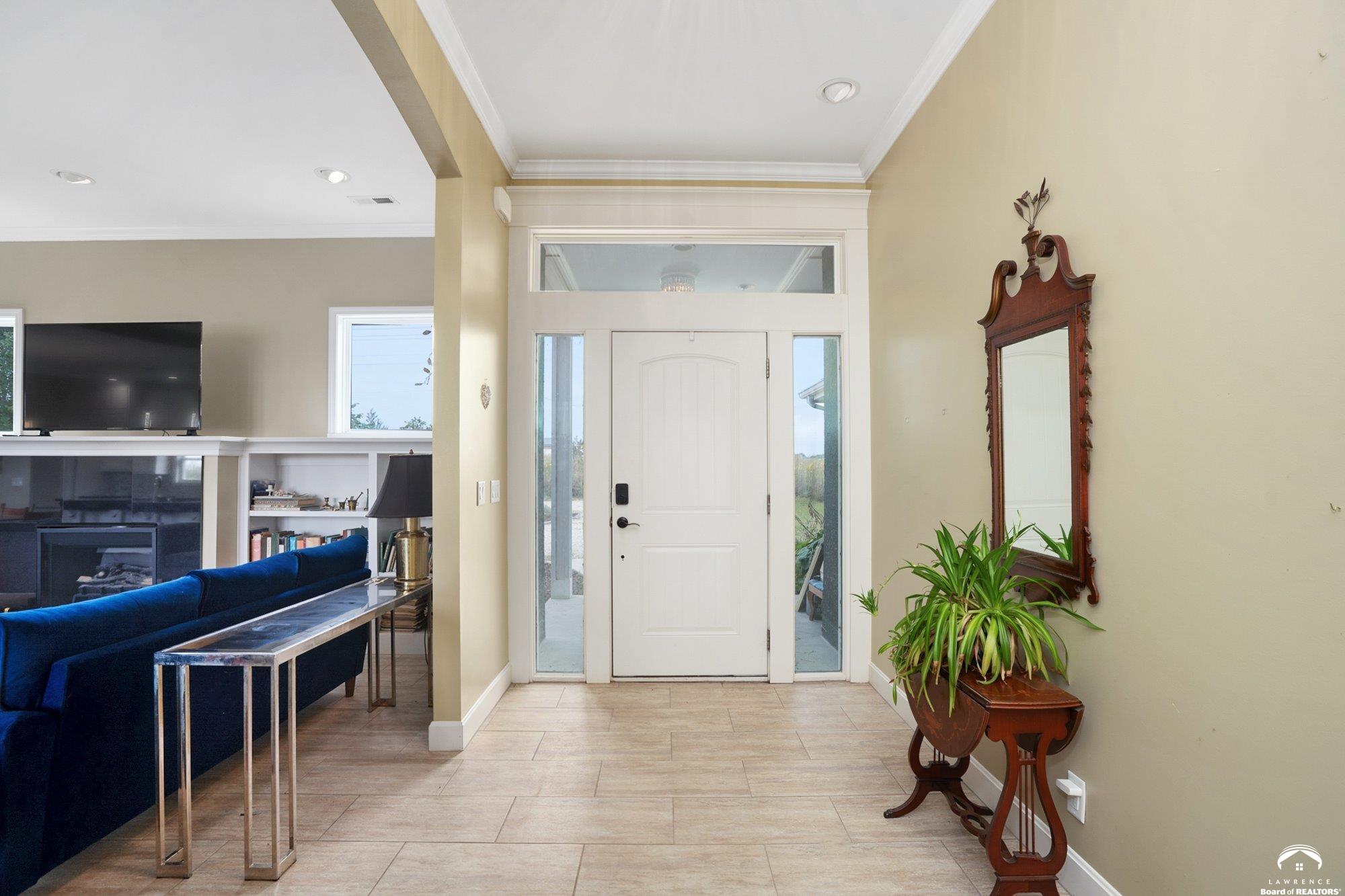 Welcome to Prairie Paradise! An exceptional, custom built, ranch style home with main-level living tucked away on 5 acres of serene countryside. This beautiful home features 4 spacious bedrooms, 2.5 bathrooms, a sunroom, sitting room, plus so much more!! As you step into the entryway, you are greeted with an open floorplan design, surrounded by large picture windows flooded with natural light & exceptional views. The spacious living room showcases a fireplace and beautiful built-ins, as well as an additional gathering space perfect for a piano, added seating, or area to entertain. The dining room, complete with a serving area/coffee bar, opens to the stunning kitchen with beautiful countertops and backsplash, a generous island for culinary space & seating for four, plus a huge walk-in pantry. Retreat to the private primary suite offering both comfort and relaxation, large windows, spacious walk-in closet, and access into the laundry area. Relax in the adjacent sunroom with your morning coffee or in the evening watching nature. Two additional bedrooms share a sitting area, perfect for guests, along with a jack and jill bathroom with hallway access to the 4th bedroom. Let's not forget the generous closet space, garage storm shelter, solar panels, geothermal, and radiant heat flooring. Step outside onto the peaceful back porch perfect for relaxing after a long day, or take a nature walk to the private pond. For those who love to entertain, explore, or retreat to a private & peaceful country lifestyle, this property has it all, while still being within reach of amenities in quaint downtown Baldwin City, and within an easy commute to KC, Lawrence, Ottawa, KC and surrounding.