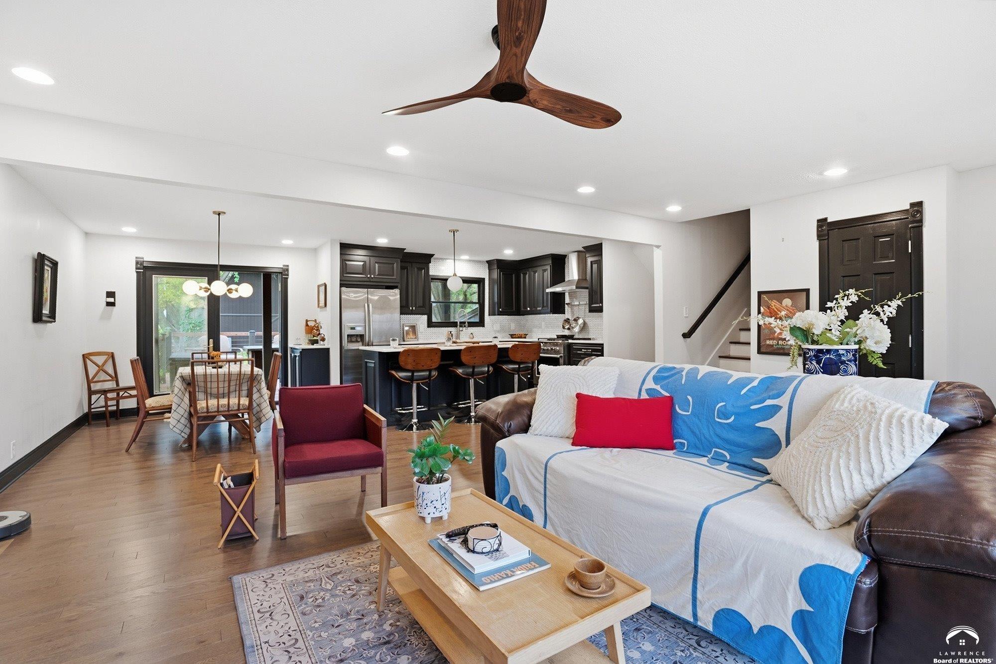 This Deerfield Park home is a home run! A fantastic multi-level layout with many upgrades! The newly renovated main floor features an open kitchen with granite countertops, a large island, new cabinets and appliances. New French doors from the dining room allow you to continue your entertaining on the large partially covered composite deck. From the 3-car garage you enter the 1st floor with living space galore! The large family room includes a wet bar, gorgeous brick and stone gas log fireplace and a large sunroom that leads out to a fenced patio. The basement has a bonus room...imagine a game room den, office, man cave... and a 1/2 bath and laundry room in the unfinished area with plenty of storage. 3 bedrooms and a beautifully remodeled full bath are on the 3rd level and the primary suite occupies the entire 4th floor including its own deck to complete the peaceful retreat. The 3rd garage bay opens to the back patio for all kinds of uses. Plus there is a bonus smaller garage in the backyard for riding mower, motorcycle, golf cart or she shed?? All this and a top notch location! Batter up!