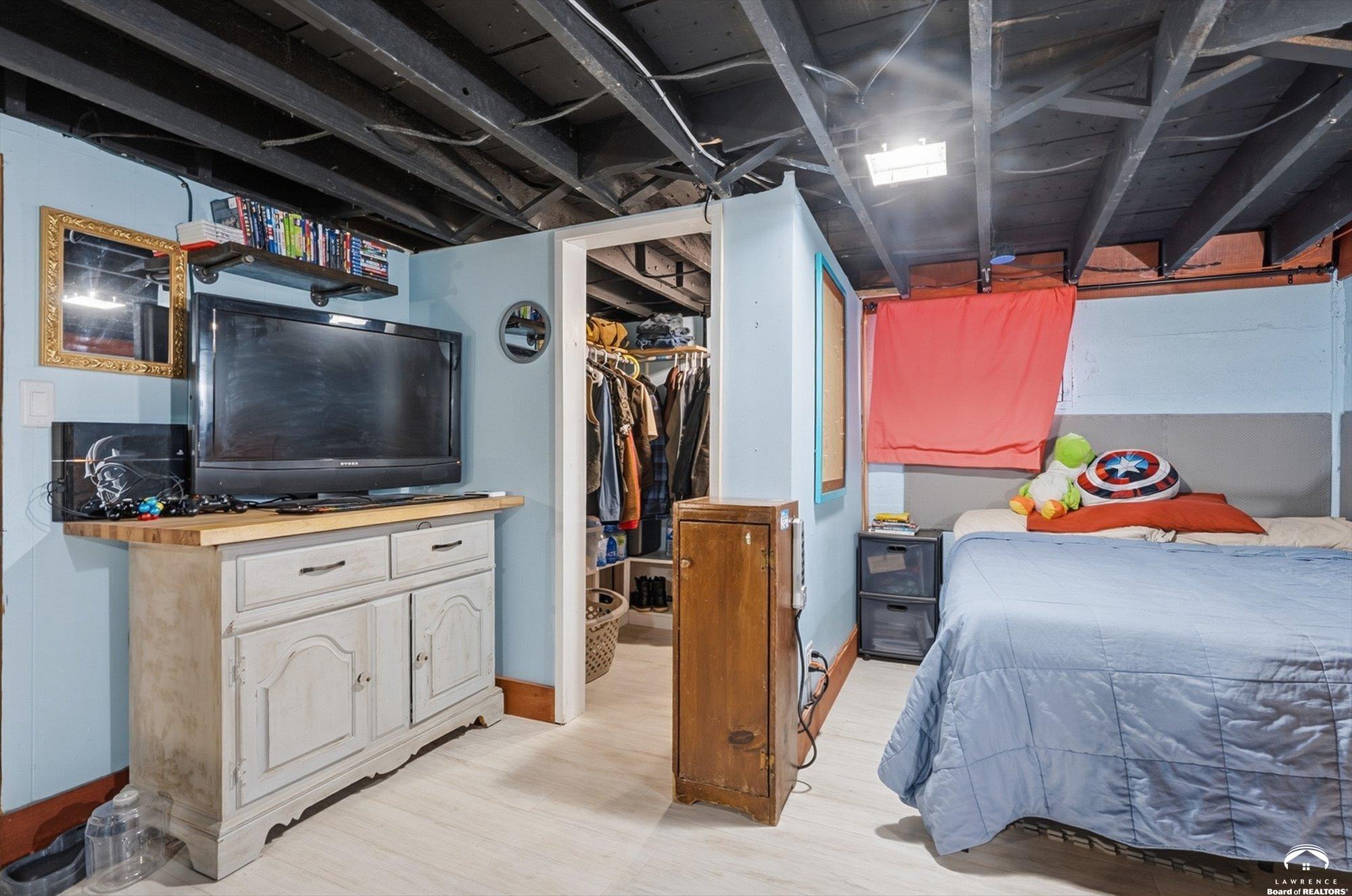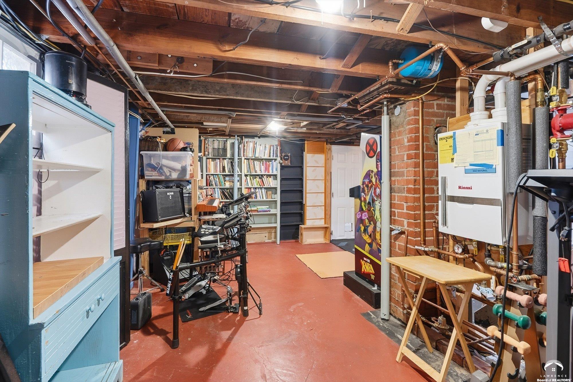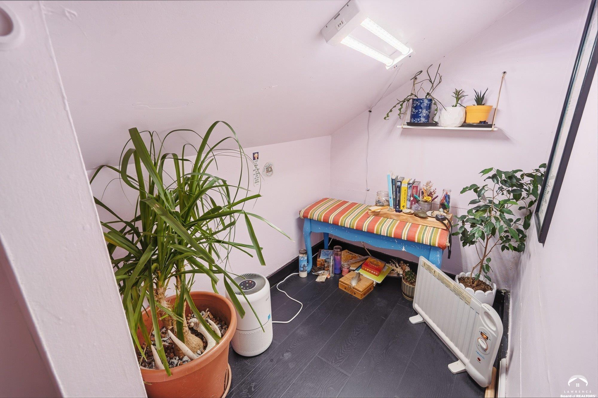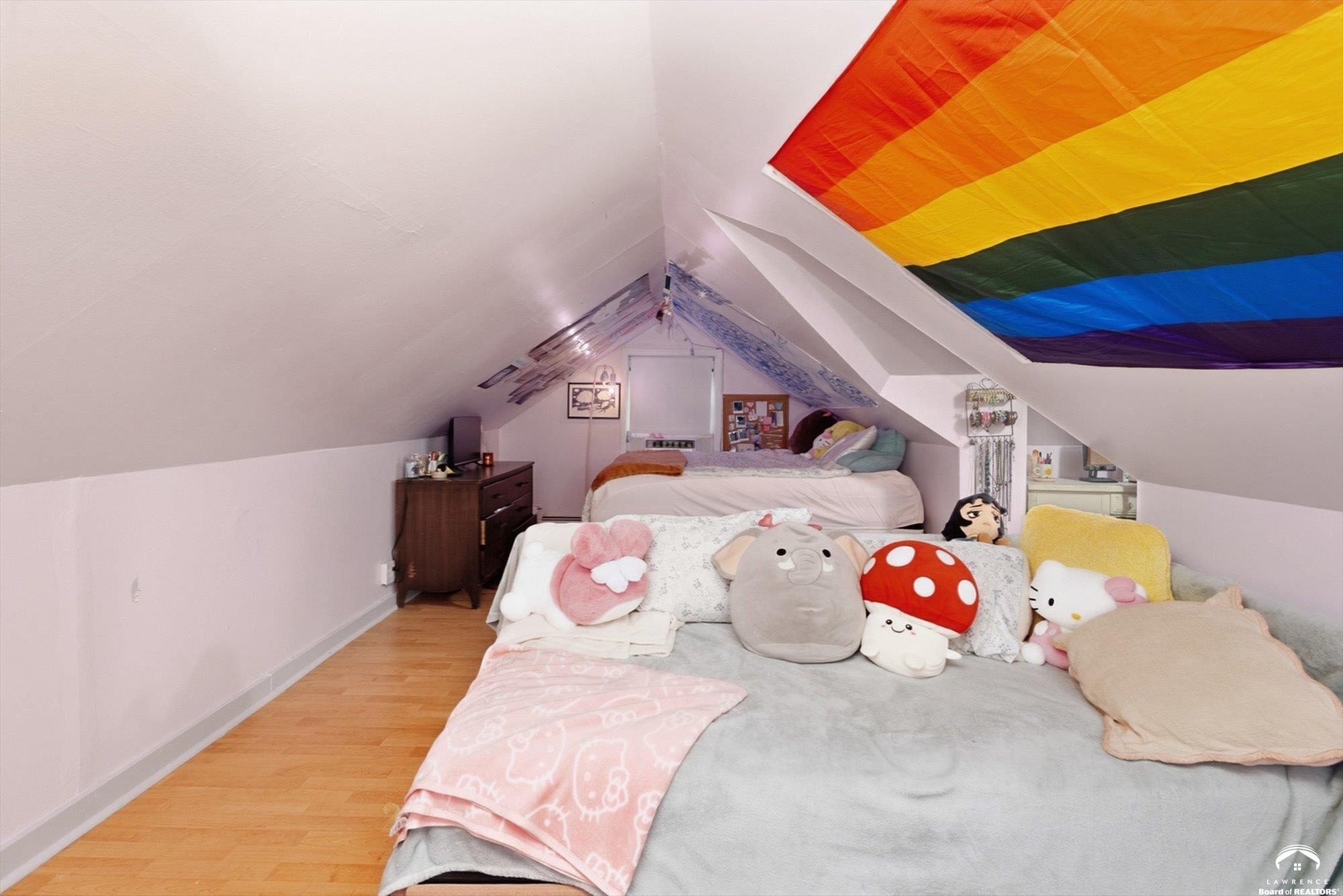 Location, location, location! Here's the cozy Barker neighborhood bungalow you've been waiting for! Full of the charm and character that you'd expect from a well-loved, nearly 100 year old home in a neighborhood that's known for its historic homes and mature trees. Nestled on the same block as the Barker Cafe & Bakery, you'll be close to nearly everything! Located near the grocery & hardware stores, the farmers market at Cottin's, restaurants, downtown Lawrence, KU and more! This home features a spacious living room full of windows and natural sunlight with newer hard surface flooring. The delightful kitchen has a newer stainless steel range/oven & ventilation system, and all appliances stay! There are two bedrooms on the main level accompanied with a full bathroom. Upstairs you'll find a 3rd bedroom featuring cozy and unique spaces created by the esthetically pleasing dormers. The basement features a 4th bedroom with an egress window, hard surface flooring and a walk-in closet accompanied by a convenient 3/4 bathroom and laundry room. Improvements over the last eight years include a NEW roof in Sept/2025, foundation work by Advanced Systems of NE KS, regrading, tankless water heater for endless hot water, new gutters in 2022, beautiful privacy fenced backyard with river rock landscaping & firepit perfect for entertaining. Spacious driveway for plenty of off-street parking! Imagine relaxing on the inviting covered front porch enjoying the wonderful Barker neighborhood, conveniently located to so many amenities and schedule your private showing today. Seller prefers to sell "AS IS". Inspections welcome.