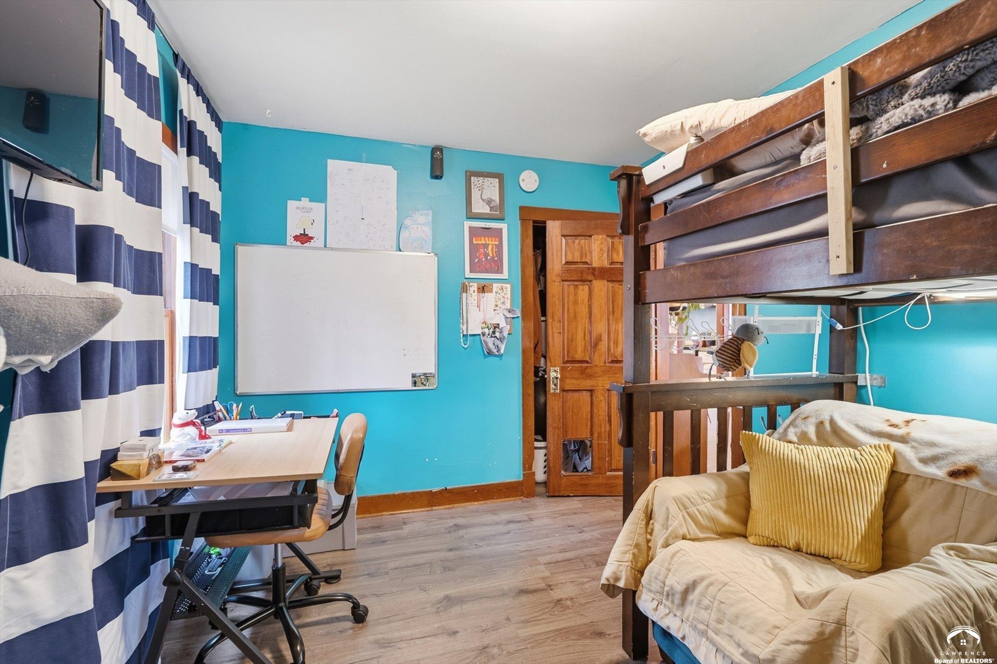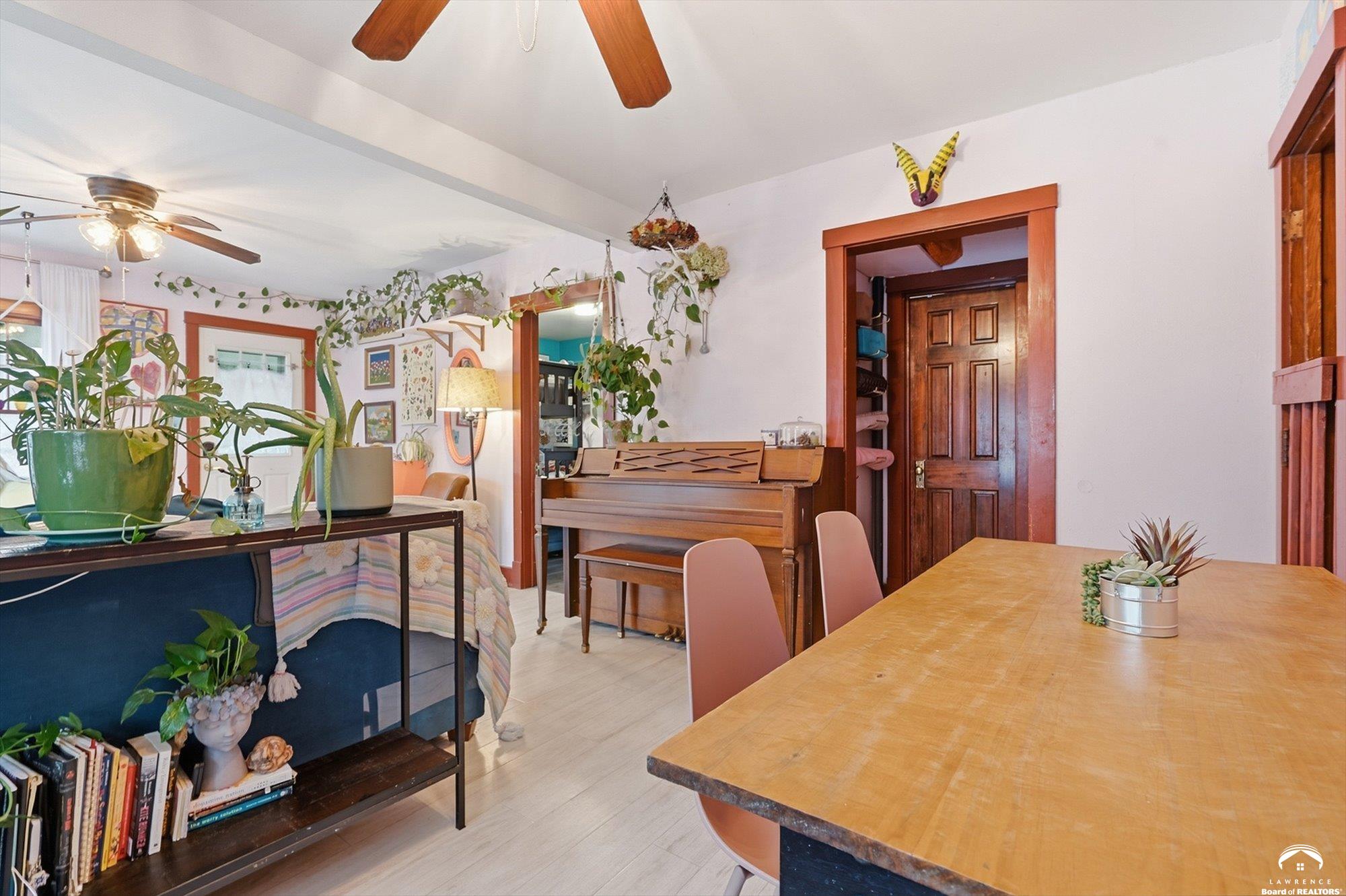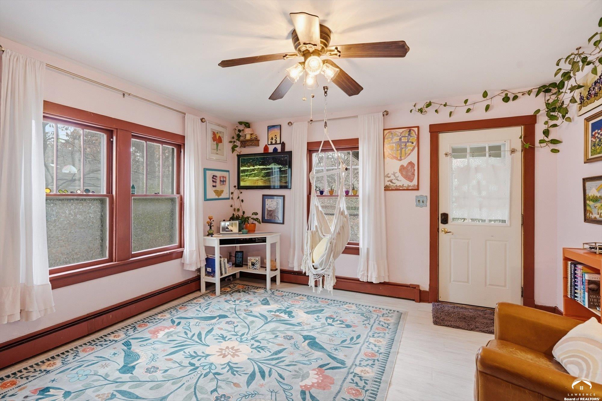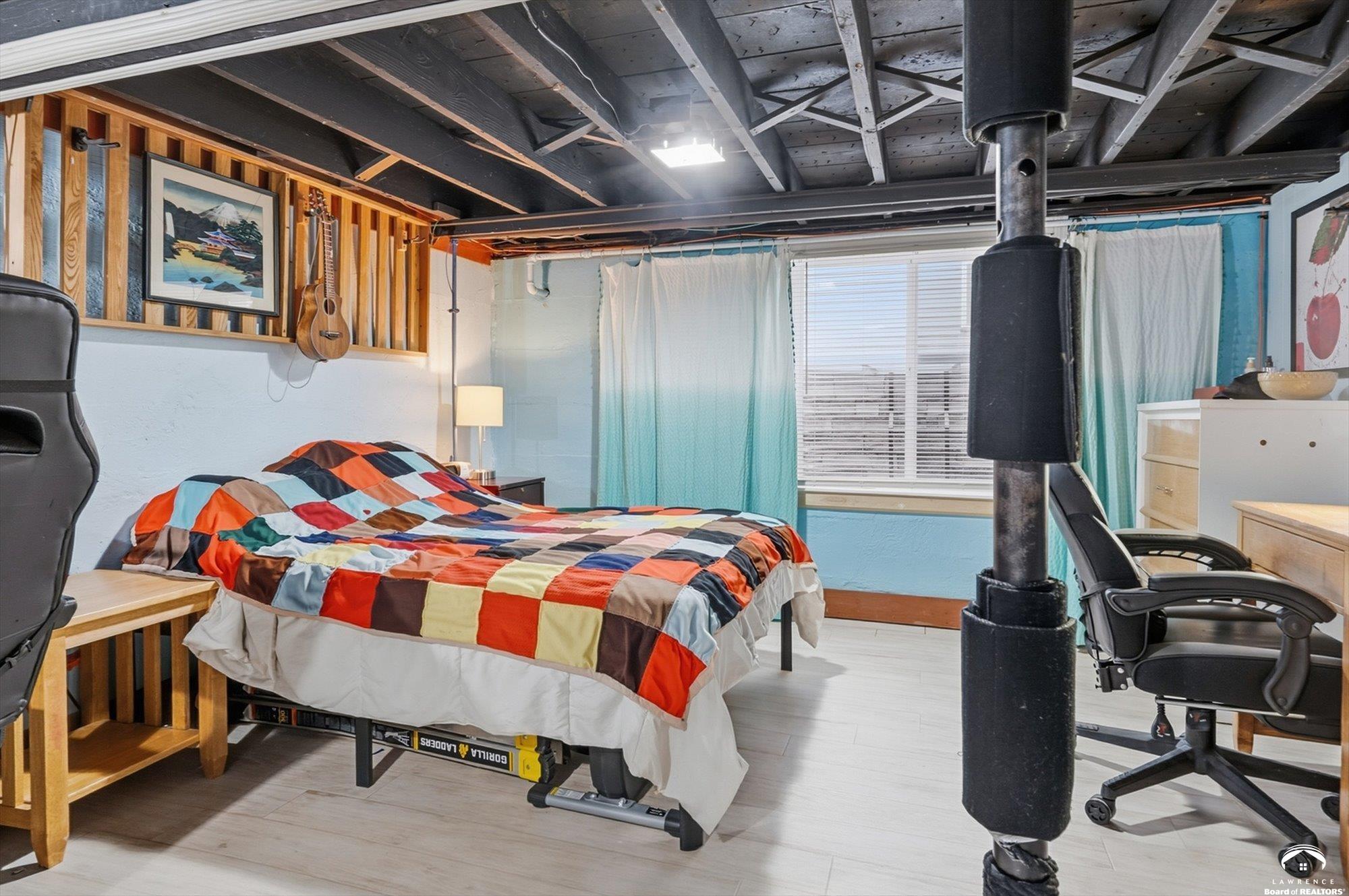 Location, location, location! Here's the cozy Barker neighborhood bungalow you've been waiting for! Full of the charm and character that you'd expect from a well-loved, nearly 100 year old home in a neighborhood that's known for its historic homes and mature trees. Nestled on the same block as the Barker Cafe & Bakery, you'll be close to nearly everything! Located near the grocery & hardware stores, the farmers market at Cottin's, restaurants, downtown Lawrence, KU and more! This home features a spacious living room full of windows and natural sunlight with newer hard surface flooring. The delightful kitchen has a newer stainless steel range/oven & ventilation system, and all appliances stay! There are two bedrooms on the main level accompanied with a full bathroom. Upstairs you'll find a 3rd bedroom featuring cozy and unique spaces created by the esthetically pleasing dormers. The basement features a 4th bedroom with an egress window, hard surface flooring and a walk-in closet accompanied by a convenient 3/4 bathroom and laundry room. Improvements over the last eight years include a NEW roof in Sept/2025, foundation work by Advanced Systems of NE KS, regrading, tankless water heater for endless hot water, new gutters in 2022, beautiful privacy fenced backyard with river rock landscaping & firepit perfect for entertaining. Spacious driveway for plenty of off-street parking! Imagine relaxing on the inviting covered front porch enjoying the wonderful Barker neighborhood, conveniently located to so many amenities and schedule your private showing today. Seller prefers to sell "AS IS". Inspections welcome.