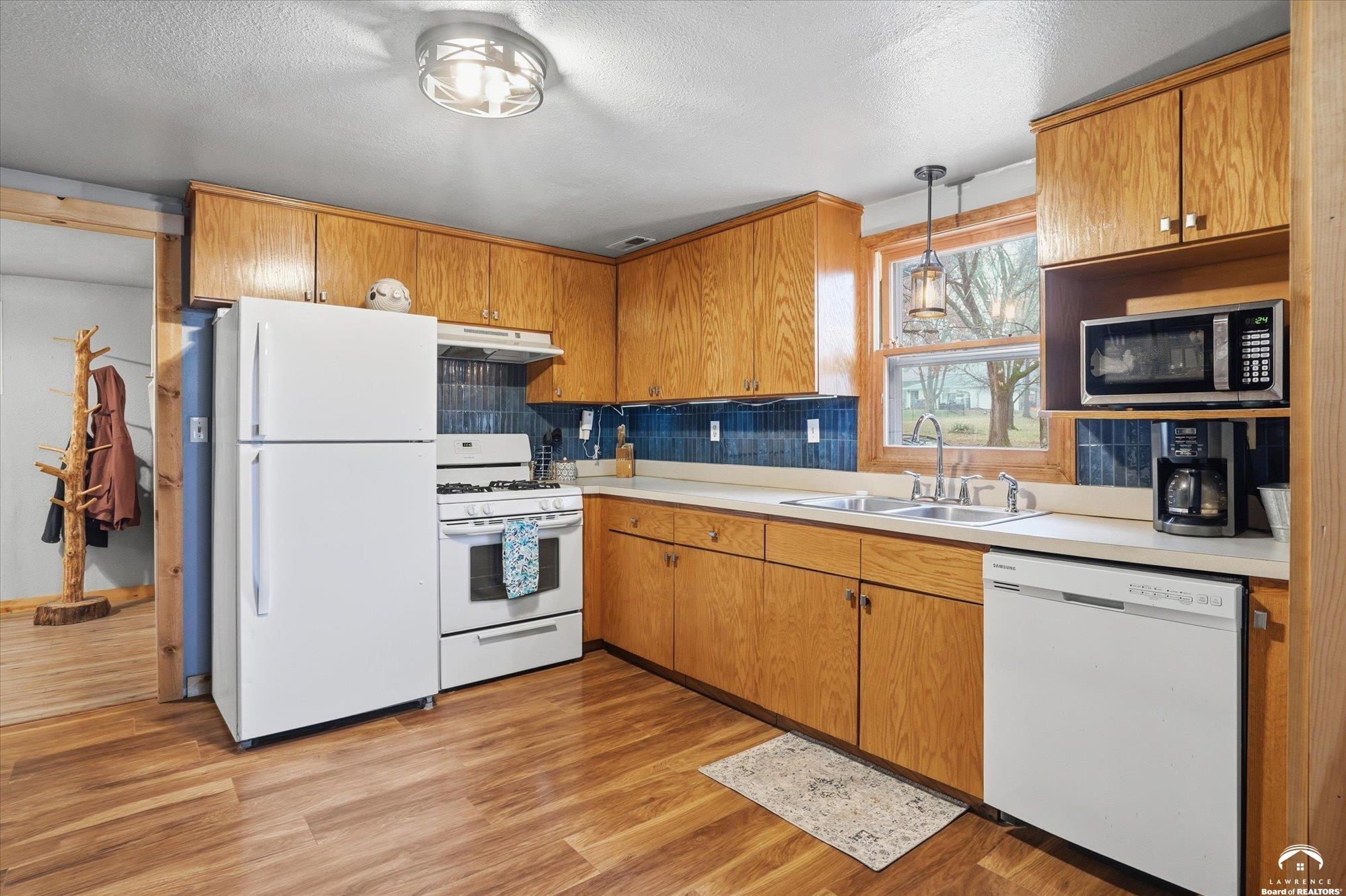 Wonderful 2 bedroom, 1 bath home with a LARGE lot and a detached garage located in the charming town of Lecompton. Vinyl siding for easy maintenance. Cellar located in the backyard. New Flooring, New Exterior doors and Trim throughout, New Plumbing fixtures, Exterior Lights and Paint, New Roof, New Light Fixtures in the kitchen and entry, Performed polyjacking in 2025 with 5 year transferrable warranty. Home has a beautiful lot that is approximately 1/3 an acre. Maybe you would like to grow a garden, have a pool or trampoline, build a gazebo...possibilities galore with that amount of land. This charming home could be perfect for a first time home buyer, down sizing, or investment property. Schedule your showing today.