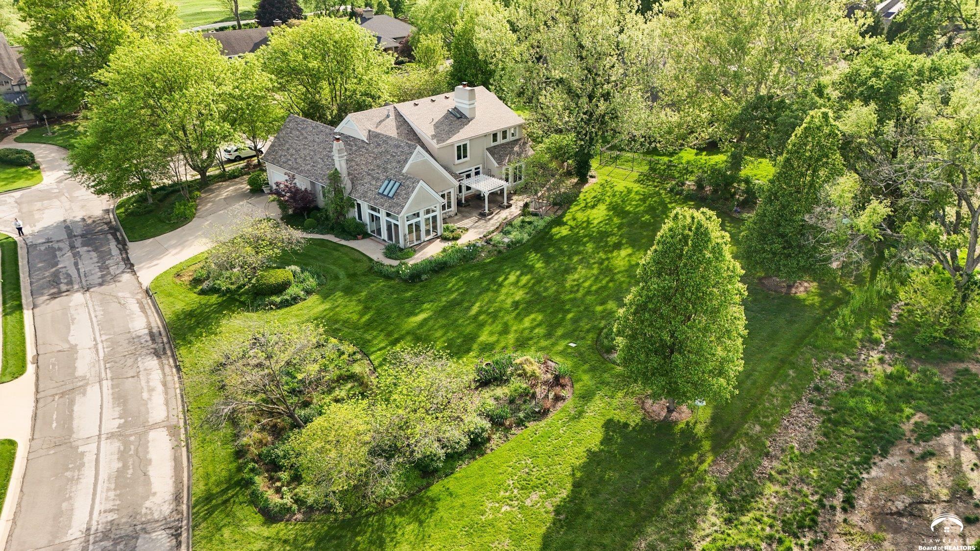 3700 Quail Creek Ct offers timeless style, generous space, and a peaceful setting on a quiet street just steps from the Jayhawk Club golf course. Situated on a beautifully landscaped .62-acre lot along the 17th hole, this home delivers privacy, flexibility, and sweeping fairway views. The thoughtfully designed main level features a primary suite, ideal for easy everyday living. The kitchen opens seamlessly to a warm hearth room anchored by a stunning stone fireplace, creating a comfortable and inviting gathering space. Just beyond, a light-filled sunroom captures golf course views and provides the perfect spot to relax year-round. Multiple living areas throughout the home offer flexibility to suit a variety of lifestyles, with four spacious bedrooms and an upstairs loft that works beautifully as a home office, play area, or quiet retreat. The unfinished basement adds even more potential, ready for future expansion, recreation space, or storage tailored to your vision. Outdoors, mature trees and thoughtful landscaping enhance the sense of privacy, while the large lot provides ample room to elevate the outdoor experience. Add a pool, create garden spaces, or simply enjoy entertaining while overlooking the fairway. Located in the heart of Lawrence and close to schools, parks, dining, and major commuter routes, this home combines a tranquil golf-course setting with everyday convenience and long-term potential.