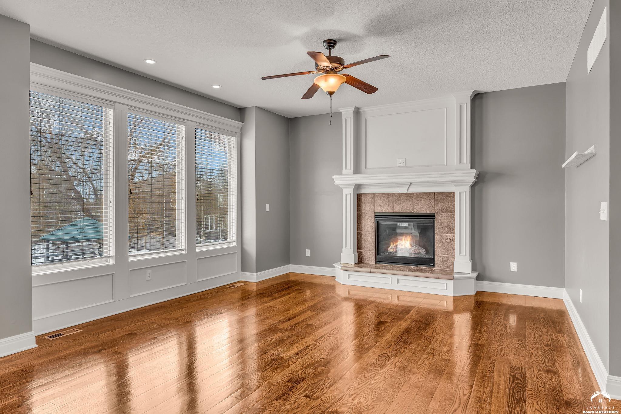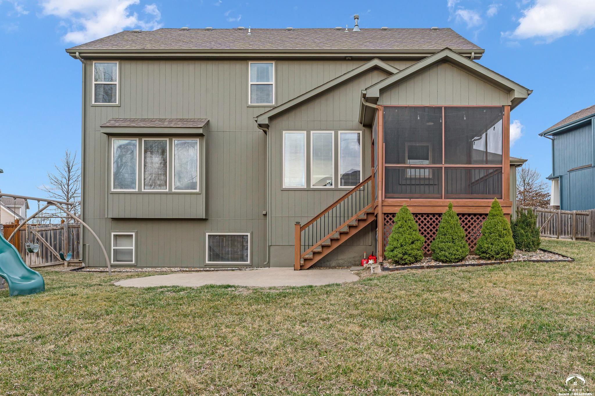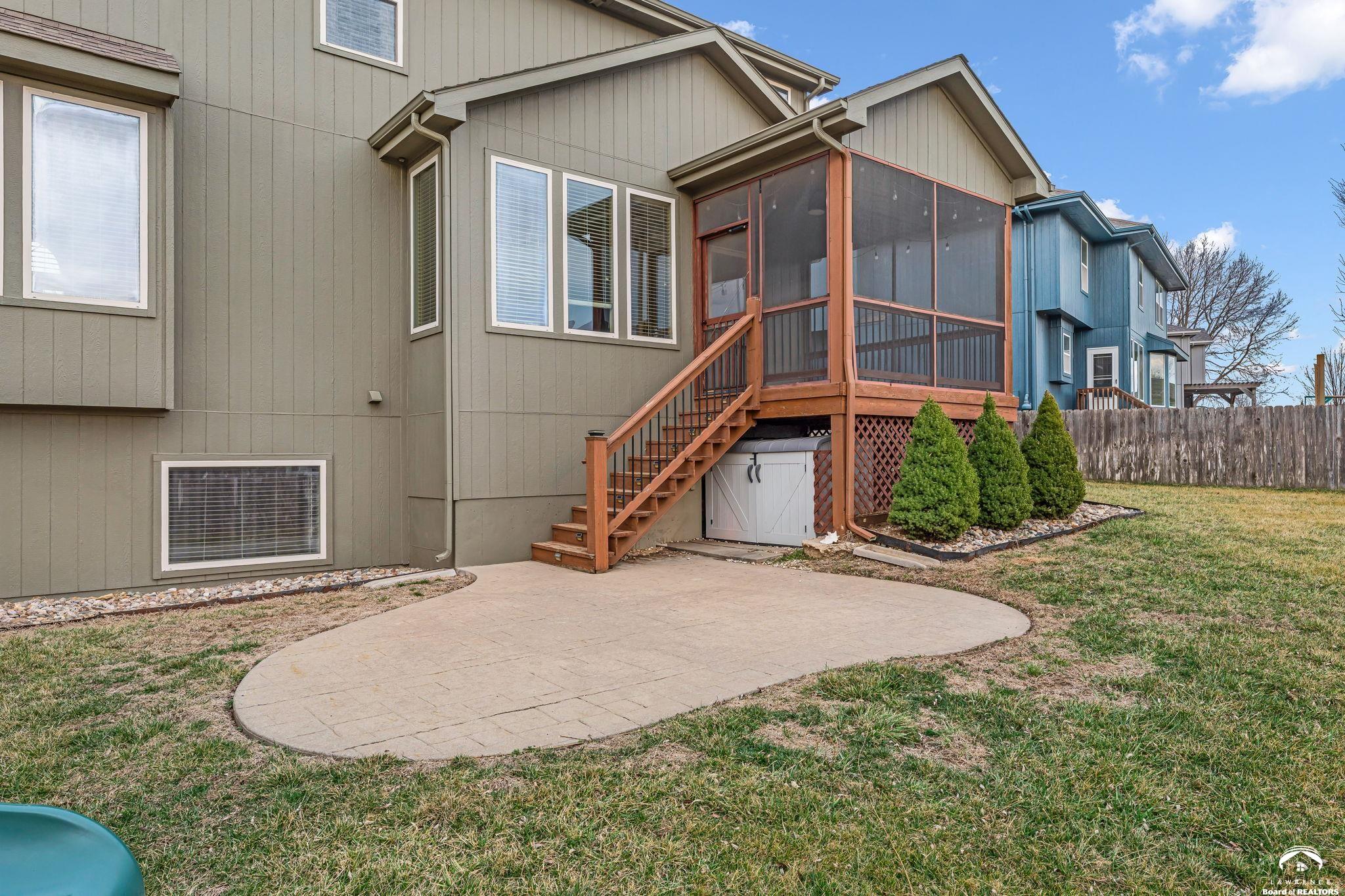 This 5-bedroom, 3.5-bathroom, two-story home offers a functional open floor plan with thoughtful upgrades throughout. The main level features hardwood floors and a well-designed kitchen that opens to the living area and eat-in dining space complete with abundant cabinetry, a walk-in pantry, and a center granite island. Custom blinds are installed throughout the first and second floors. A screened-in deck off the main level overlooks the fenced backyard. Upstairs includes four bedrooms with laundry conveniently located on the same level to add to the home’s functional layout. The large primary features a jetted tub, a walk-in shower with dual showerheads, and a spacious walk-in closet. Secondary bedrooms are equipped with upgraded light fixtures and dimmer switches. The finished basement, completed in 2014, adds significant additional living space and includes a living area with wet bar, a fifth bedroom, and a full bathroom – providing a private lower-level retreat. An additional bonus room offers flexibility for use as a home office, recreation space, or storage. Flooring and paint upgrades in 2021. The home also includes a 3-car garage with storage systems that remain with the property, a sprinkler system installed in 2016 and established landscaping. Conveniently located in the heart of Lenexa, this home is near Lenexa Lake, Lenexa parks and trails with easy access to Lenexa City Center, Shawnee Mission Park, and major highways. Situated in a desirable Johnson County location within the Olathe School District, including Manchester Park Elementary.