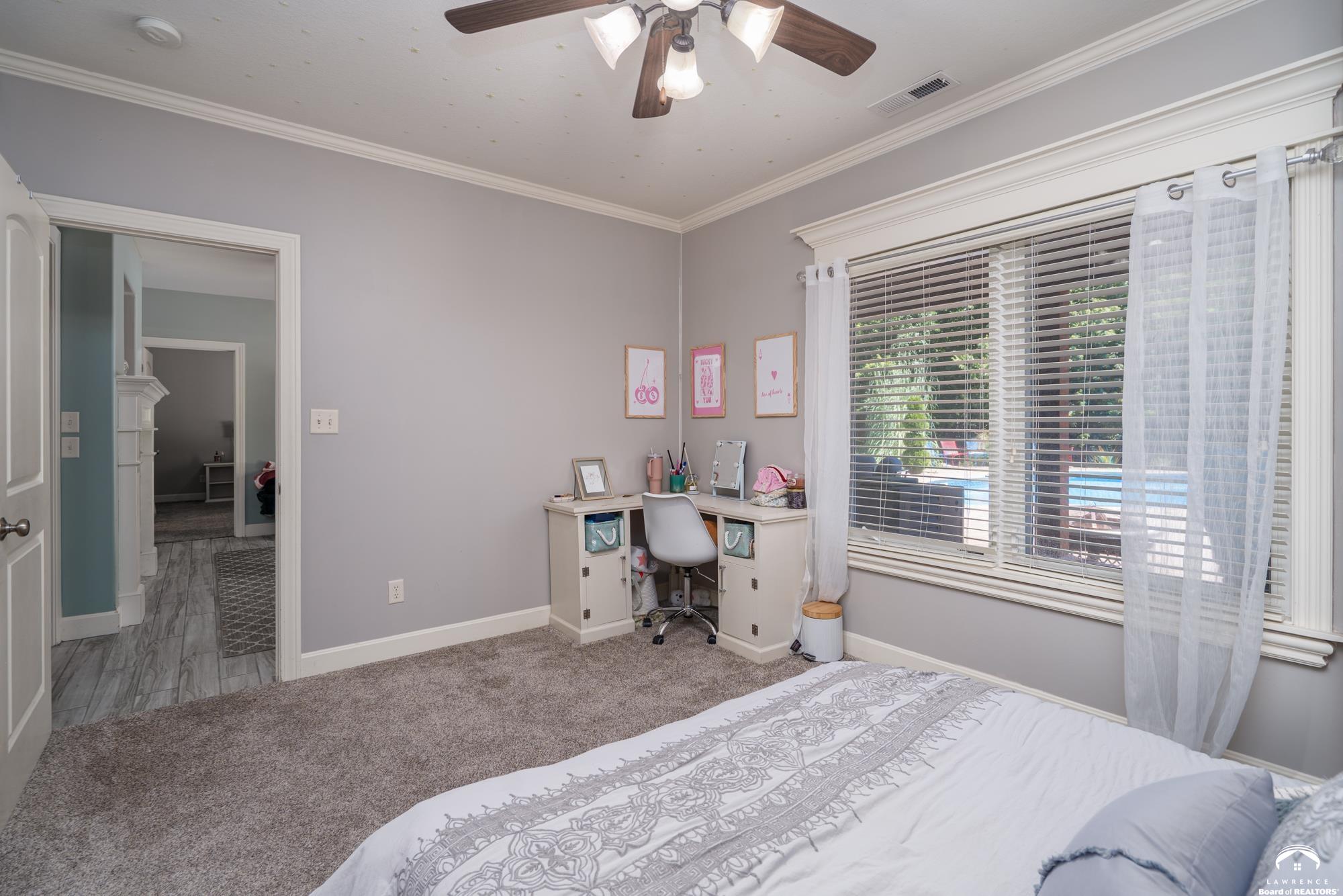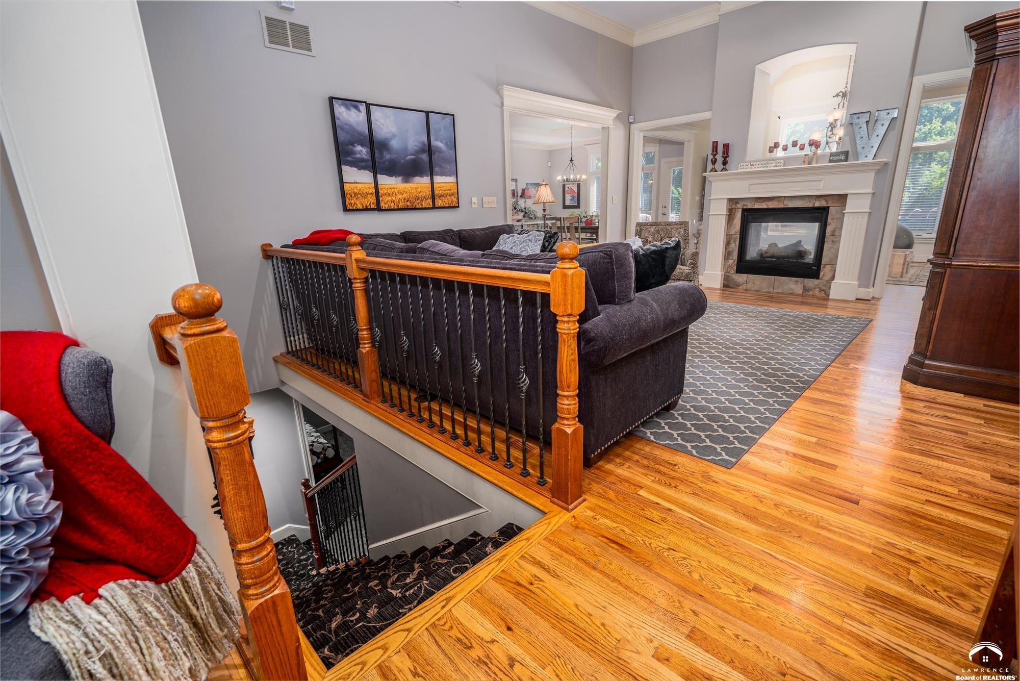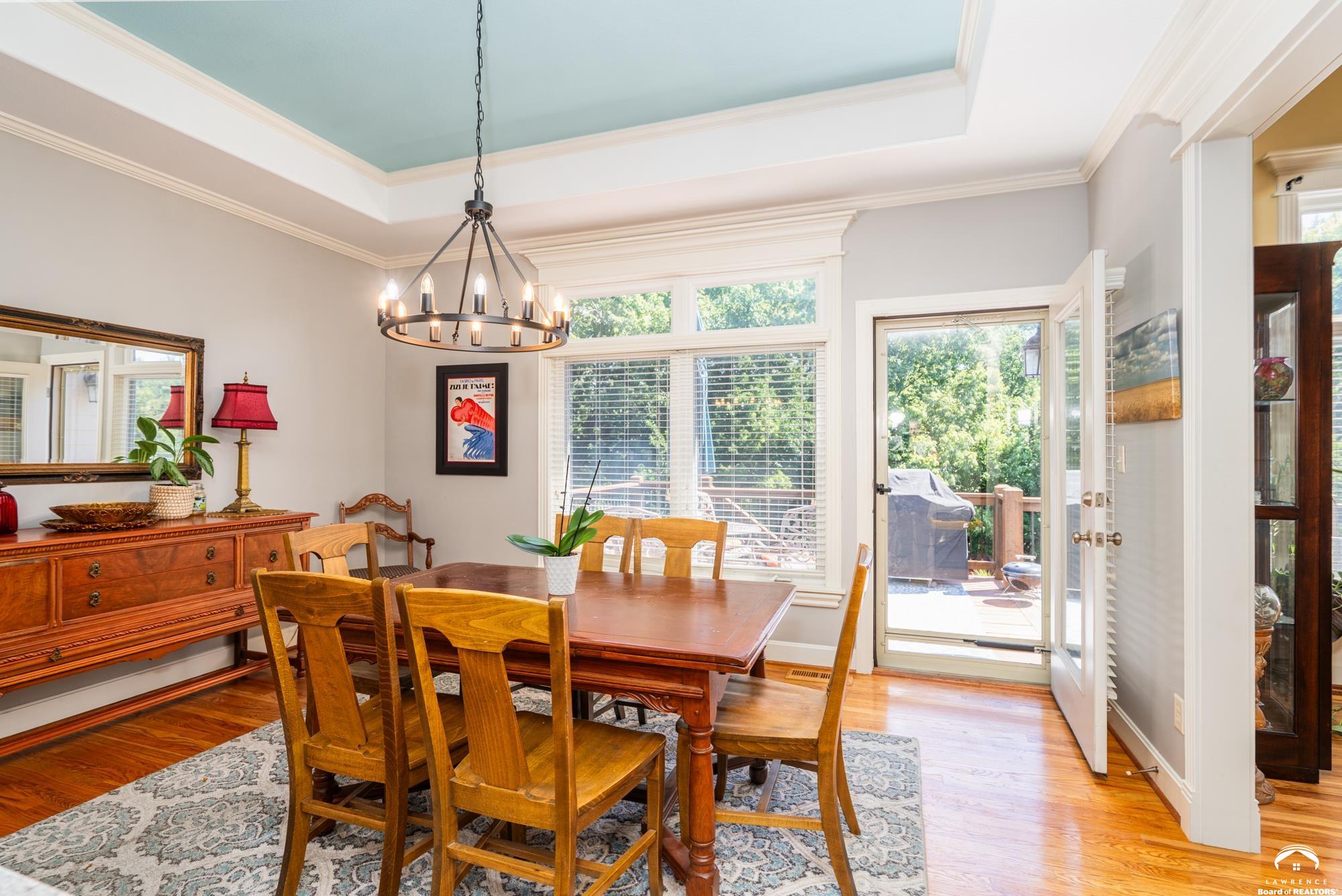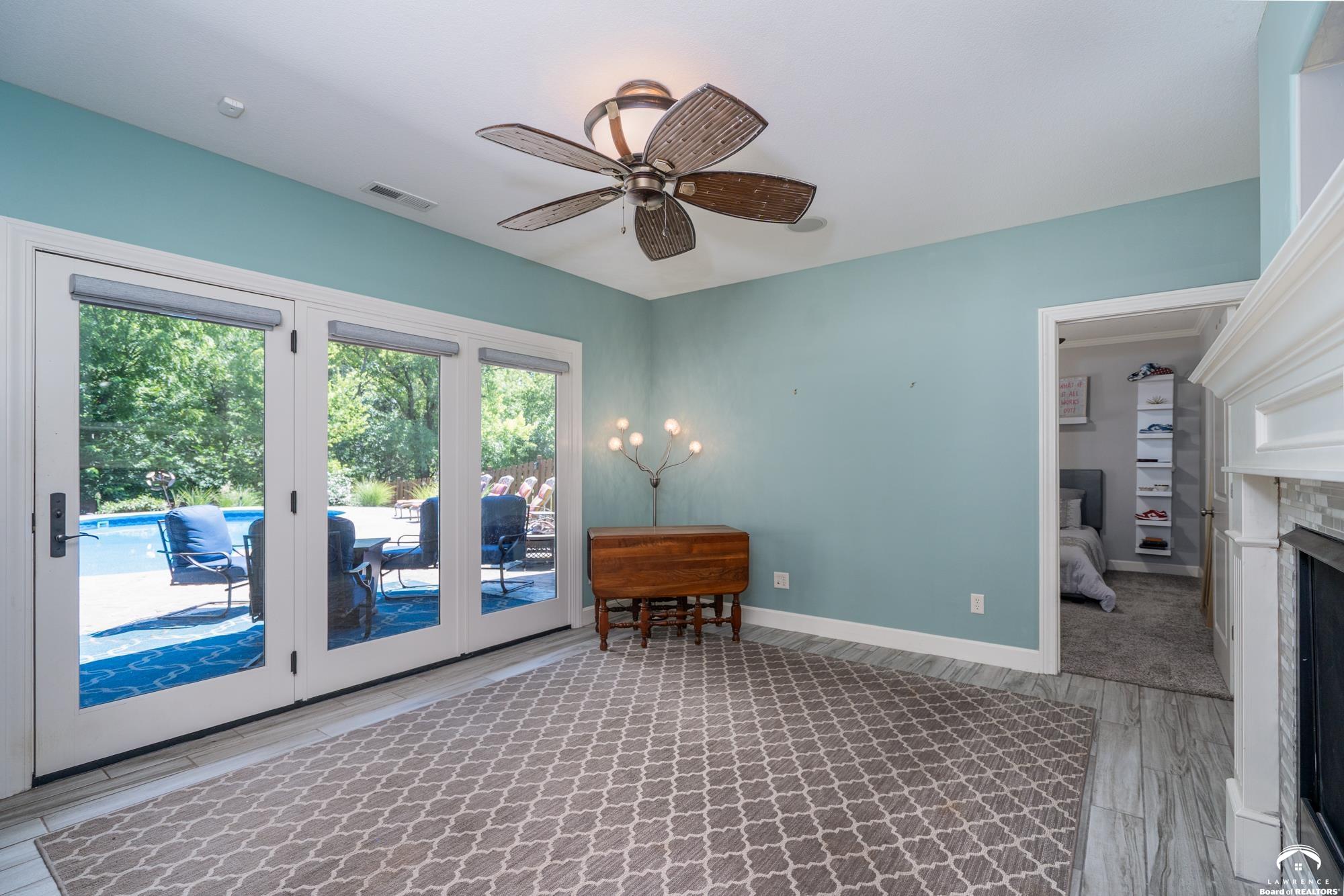 Welcome to your dream home in the desirable Fox Chase South subdivision! This beautifully detailed walk-out rancher offers over 3,400+ feet of thoughtfully designed living space, nestled against lush green space and—perfect if you crave privacy without sacrificing convenience. The main-level includes a Primary Suite with a custom screened porch & spa bath, a thoughtfully updated open kitchen/dining space and a deck with amazing views of the custom salt-water pool and patio. The lower level includes one en-suite bedroom, wet bar, living/sunroom space and two more bedrooms. The expansive storage area could be easily finished for additional office/flex space. Located just minutes from Corpus Christi Catholic Church, Langston Hughes Elementary School, Free State High School and the Rock Chalk Sports Pavilion—everything you need is nearby. Easy access to Kansas City & Topeka, Clinton Lake and the Lawrence Loop Trail will also make your life easier. Enjoy peaceful mornings on your screened porch and evening sunsets on your expanded deck, all while overlooking the serene natural backdrop of the adjacent green space.
