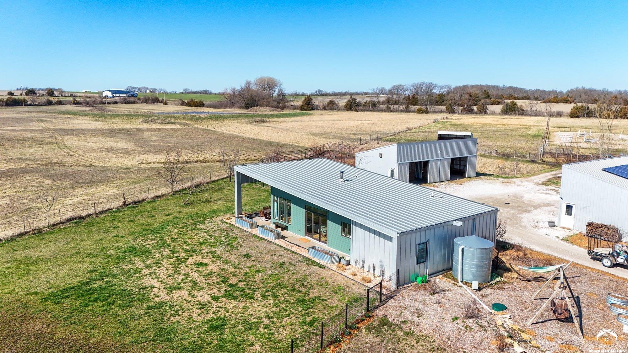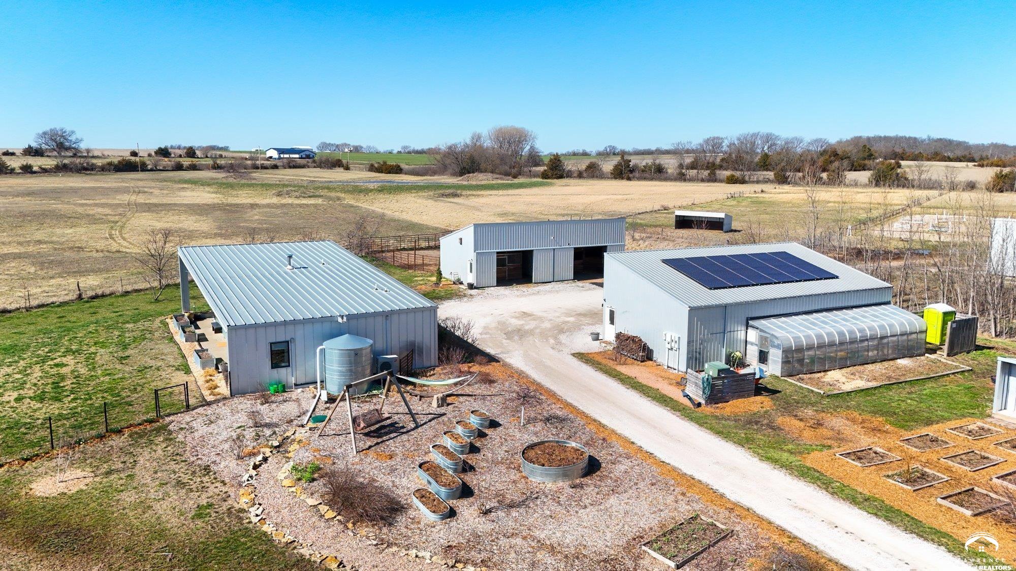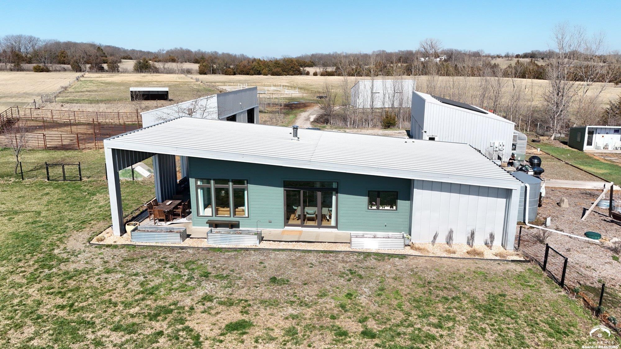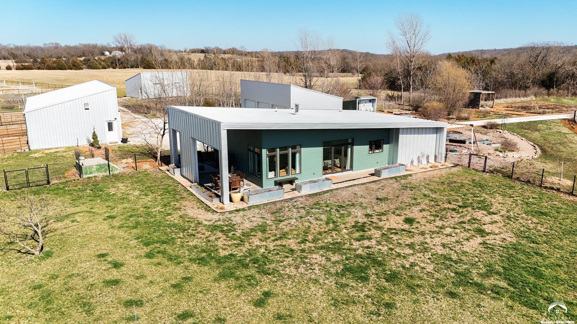 Great Price Improvement on the wonderful home! Sellers motivated for a late May Closing. Enjoy self-sufficiency, low energy costs, family-friendly spaces & equestrian & livestock facilities. 17 ac nestled in the beautiful Vinland Valley area. Narrow Trail Farm is perfect for those looking for space yet still close to all the amenities of the city. This 2016 farm has impressive passive solar design & self-sustaining infrastructure w all the amenities of a modern farm. Diverse orchard of producing apple, pear, peach, plum & nectarine trees & blackberries, raspberries, & blueberries. Thousands of flower bulbs & peonies are planted stunning flowers throughout the growing season. Seller owned Solar panels help to power the farm and provide low energy costs. The contemporary home is thoughtfully designed w soaring ceilings & design that utilizes every inch. The 1297 sq ft home provides 3 bed & 2 bath. Enter the open kitchen-dining-family room w huge windows & sliding doors opening out to the wrap around patio. Everyone will enjoy the wood burning stove in the great room. The primary suite offers a walk-in closet, that is also a safe room, and ensuite bath. Enjoy the outdoor space including the huge covered patio perfect for enjoying evening meals. There is a large storm shelter just off the patio for that additional safety during storms. Outbuilding #1 (48x24) detached garage w 3rd bay converted to the perfect family room. Outbuilding #2 (48x24) horse barn w 3 stalls opening out to the dry lot paddocks. Outbuildings #3 (36x24) equipment and hay storage. There is a large pasture as well as additional open pasture for hay or can be fenced for your horses or livestock. And everyone will enjoy the 75x165 professionally built fenced outdoor arena. Need more space? Check out the adjacent 12 acres with beautiful pond that is also available (MLS#165159) at $209,900 with rural water and electric at the road.