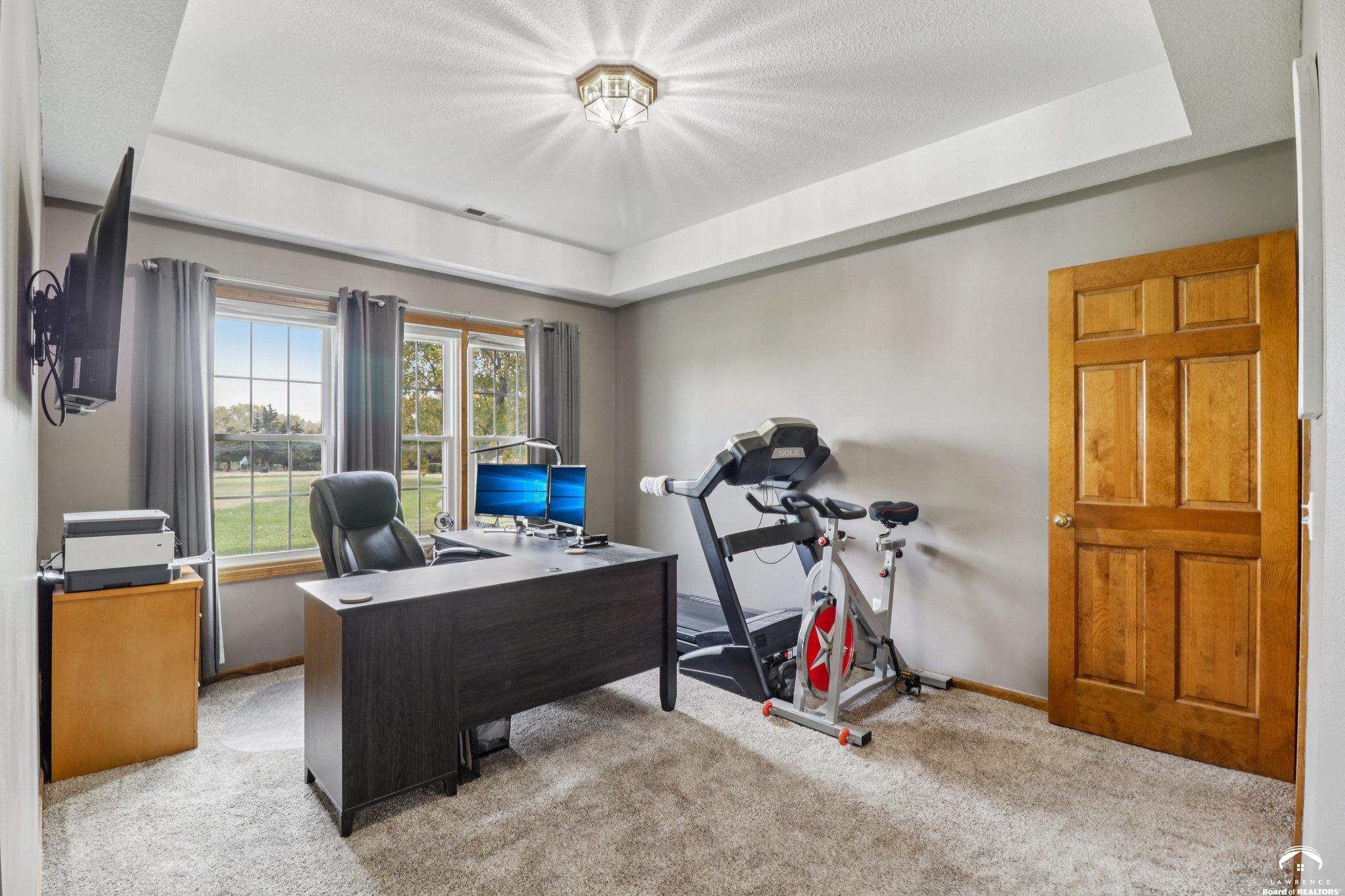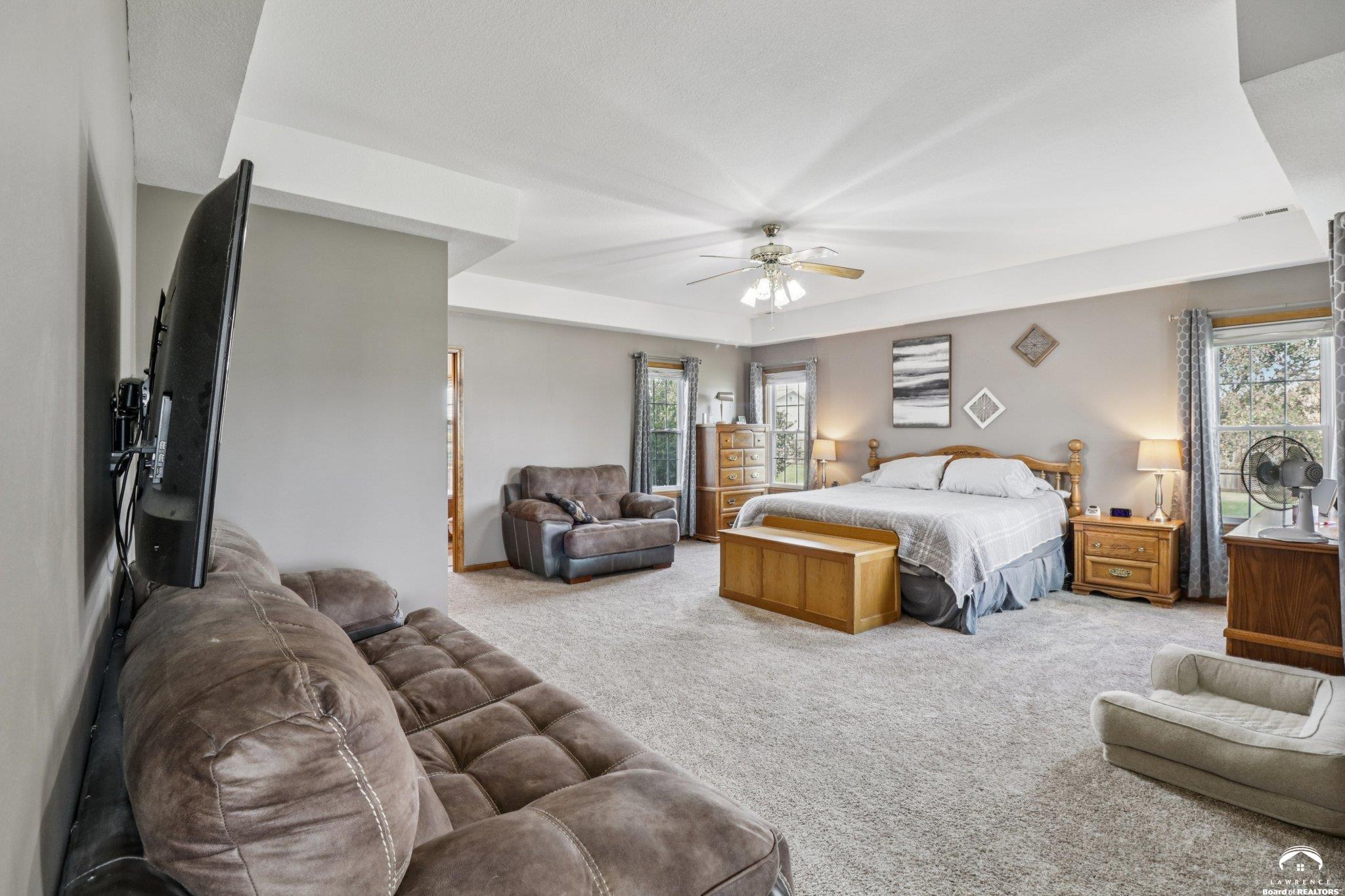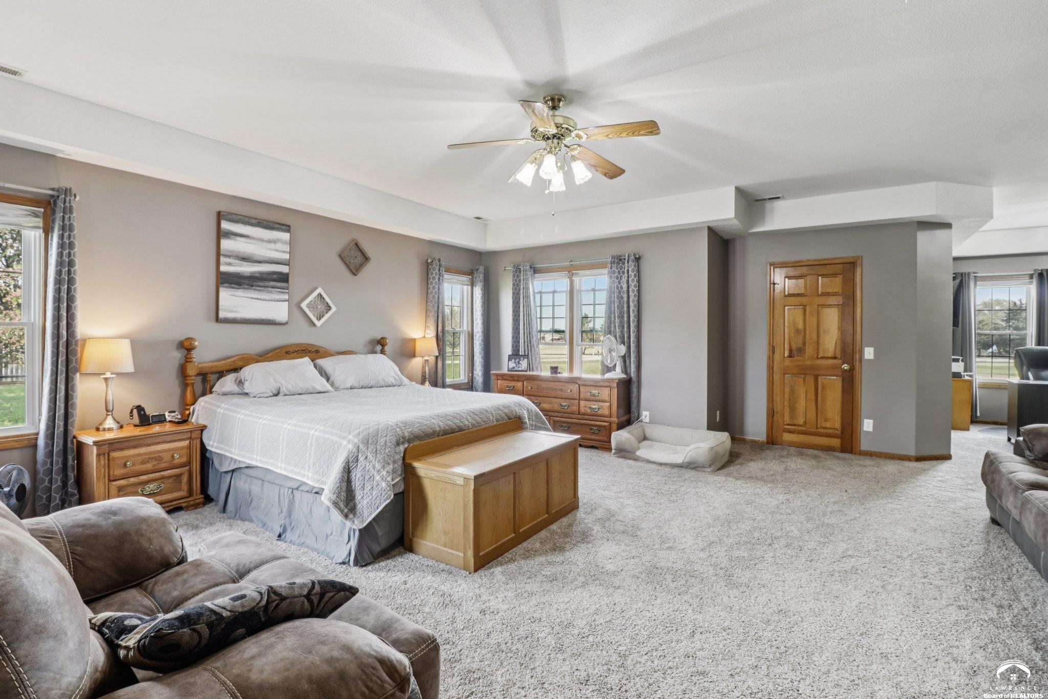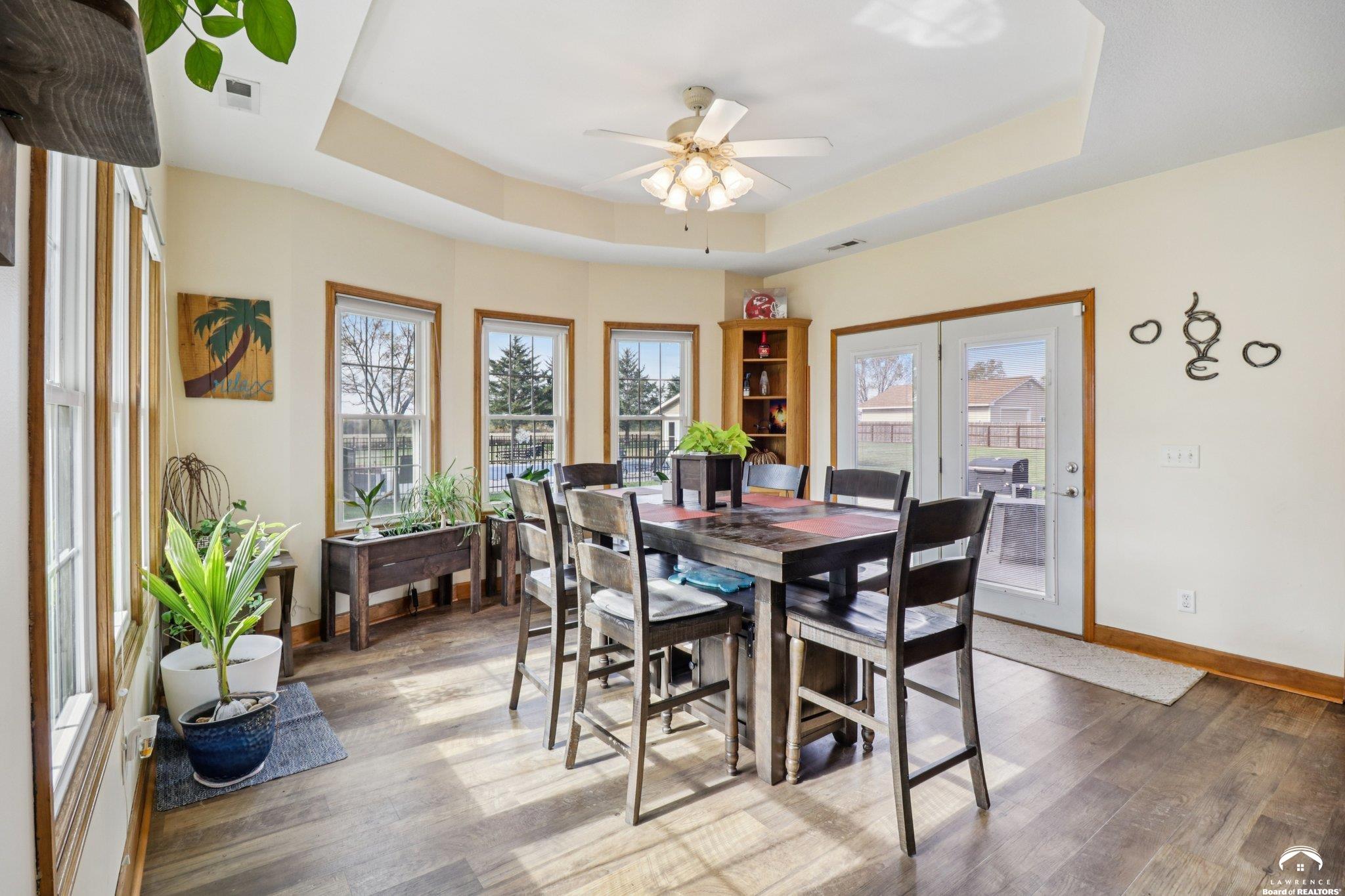 Experience the best of rural living just 2 miles south of Lawrence with this stunning 5-bedroom, 4-bath estate set on 3 beautifully landscaped acres. An inviting open-concept layout welcomes you inside, featuring a spacious kitchen with granite countertops, abundant cabinetry, and seamless flow into the light-filled living areas—perfect for everyday living or entertaining. Recent upgrades include new AC units and furnaces for year-round comfort and efficiency. A standout feature of this property is the impressive 45x46 heated and air-conditioned workshop—ideal for hobbyists, entrepreneurs, or anyone needing exceptional workspace. Step outside to your private oasis with an in-ground saltwater pool, offering the perfect backdrop for summer relaxation and gatherings. The acreage provides ample space for gardening, recreation. Smooth blend of indoor-outdoor living enhance the home’s comfort and functionality. Enjoy peaceful acreage living just minutes from town—this one-of-a-kind property is ready to welcome you home. Key Features: • 5 spacious bedrooms & 4 full bathrooms • Kitchen with granite countertops and generous workspace • New AC units and furnaces • Expansive 45x46 heated/AC workshop • In-ground saltwater pool • Private 3-acre setting just 2 miles from Lawrence Schedule your private tour today and discover the perfect blend of serenity, space, and convenience.