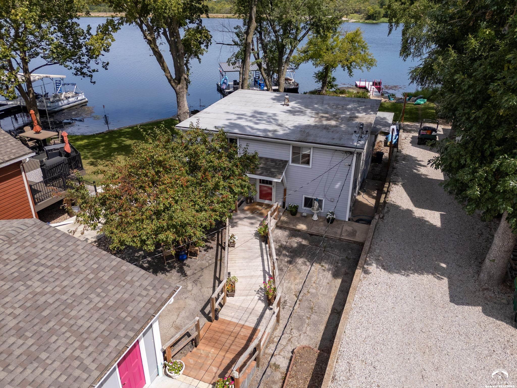 Rare opportunity to own a lakefront retreat where everyday feels like a vacation! Wake up to a gorgeous 180-degree lake view from your screened in porch, and spend your days boating and kayaking off your own personal dock. Beautiful views can be enjoyed morning, noon and night! This 4 bedroom 2 bath home has lots of space for year round lake living. A large living room, updated kitchen, and primary bedroom suite are on the first floor, while 3 more bedrooms and a full bath are upstairs. Extensive renovations have been done including a complete remodel of the downstairs bathroom/laundry room, major electrical, plumbing and HVAC upgrades, dock replacement and drainage management systems. Easy main level living space with accessibility to home, dock, sunroom and back of house with only one step from rear of home. Home also boasts a total of 5 extra parking spaces, in addition to the detached 2 car garage. Don't miss your chance to experience lakeside living at its finest!