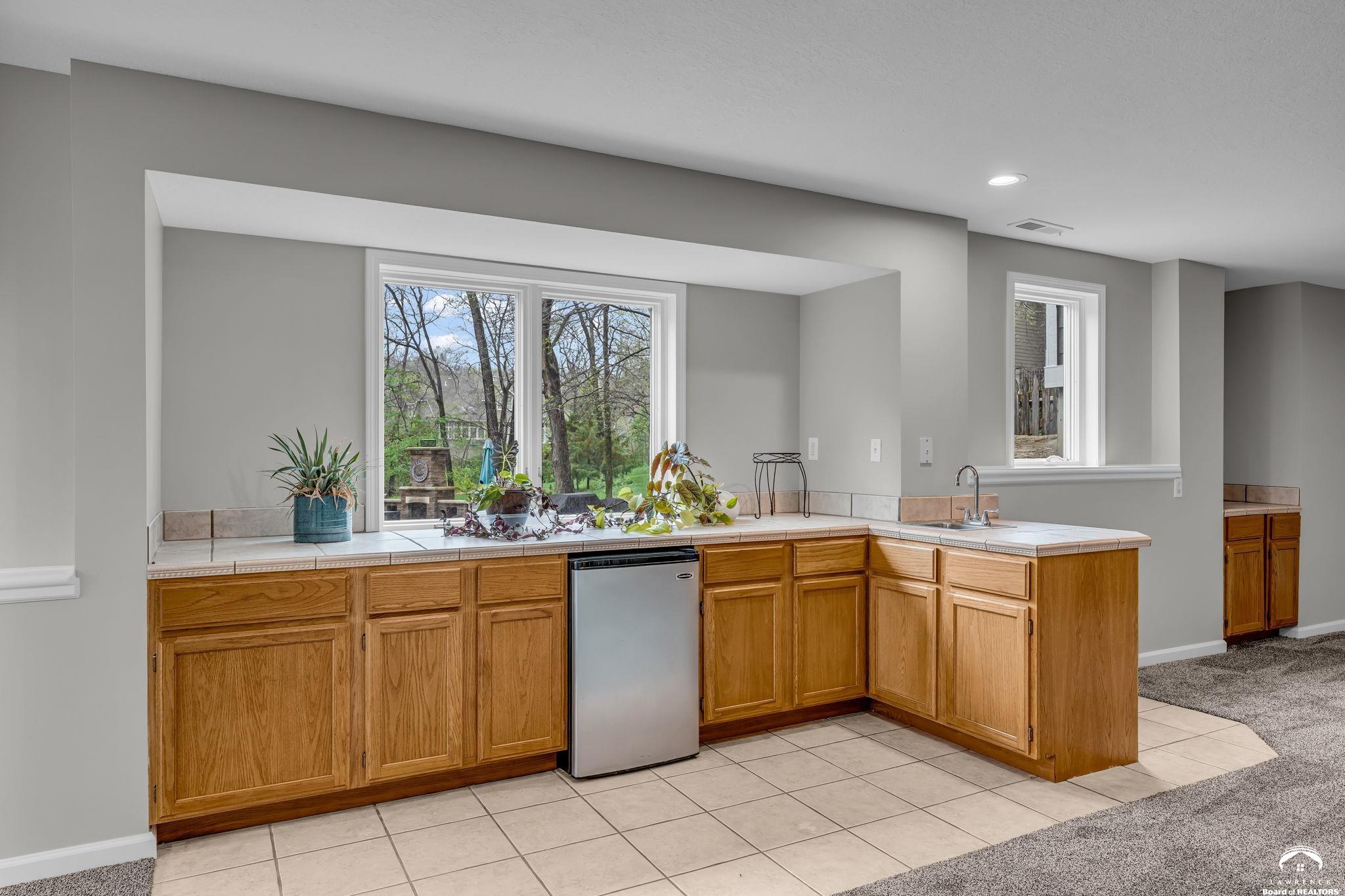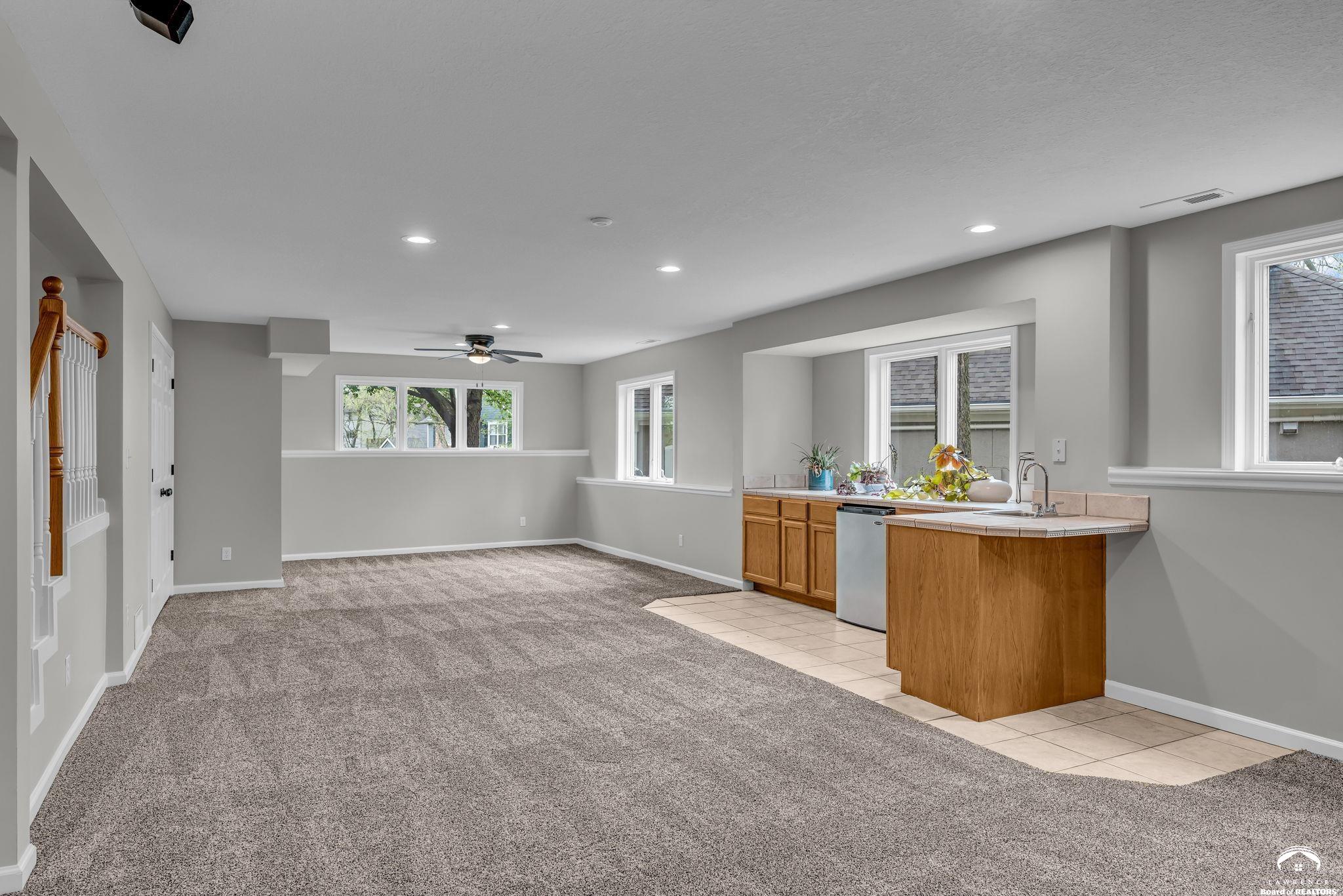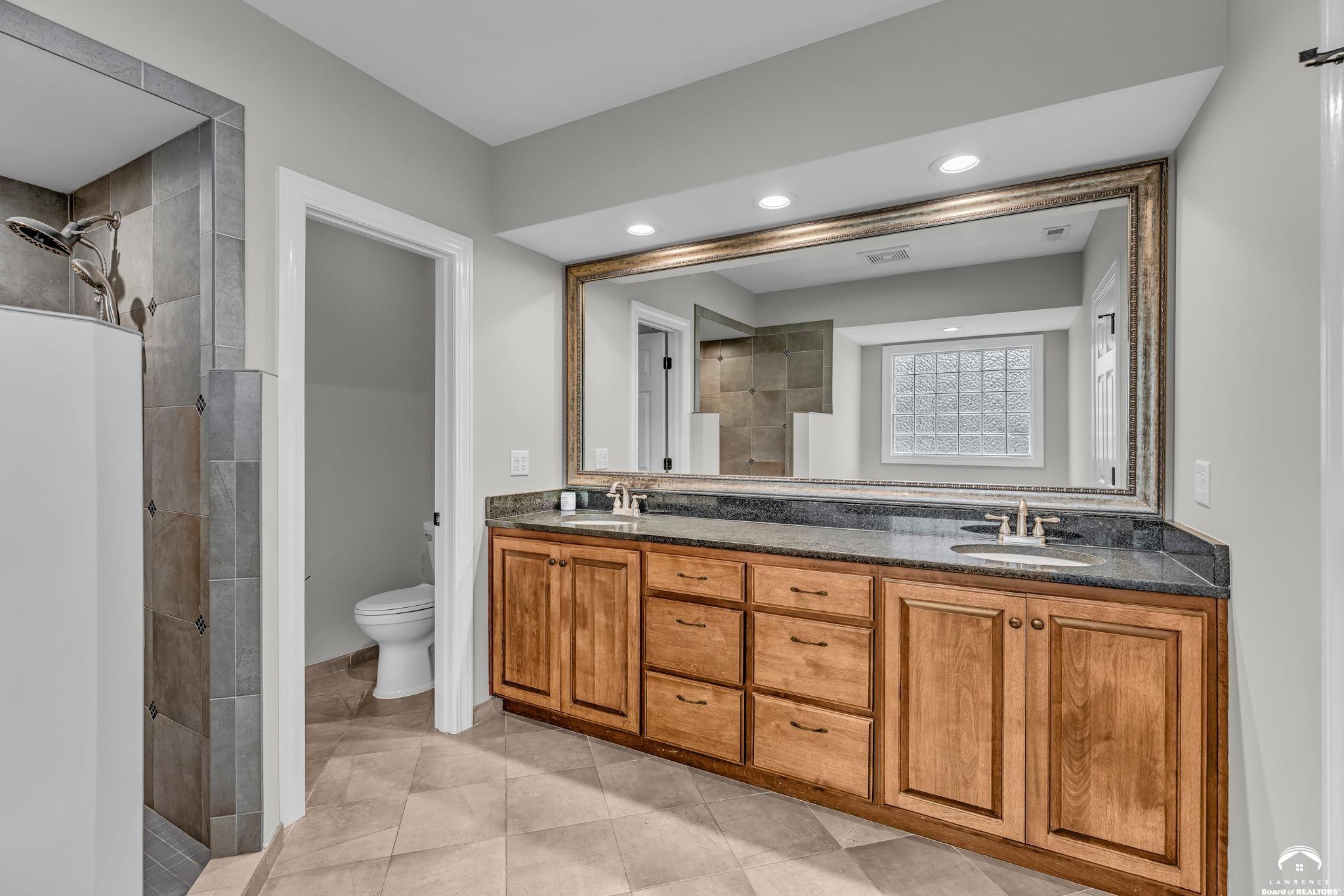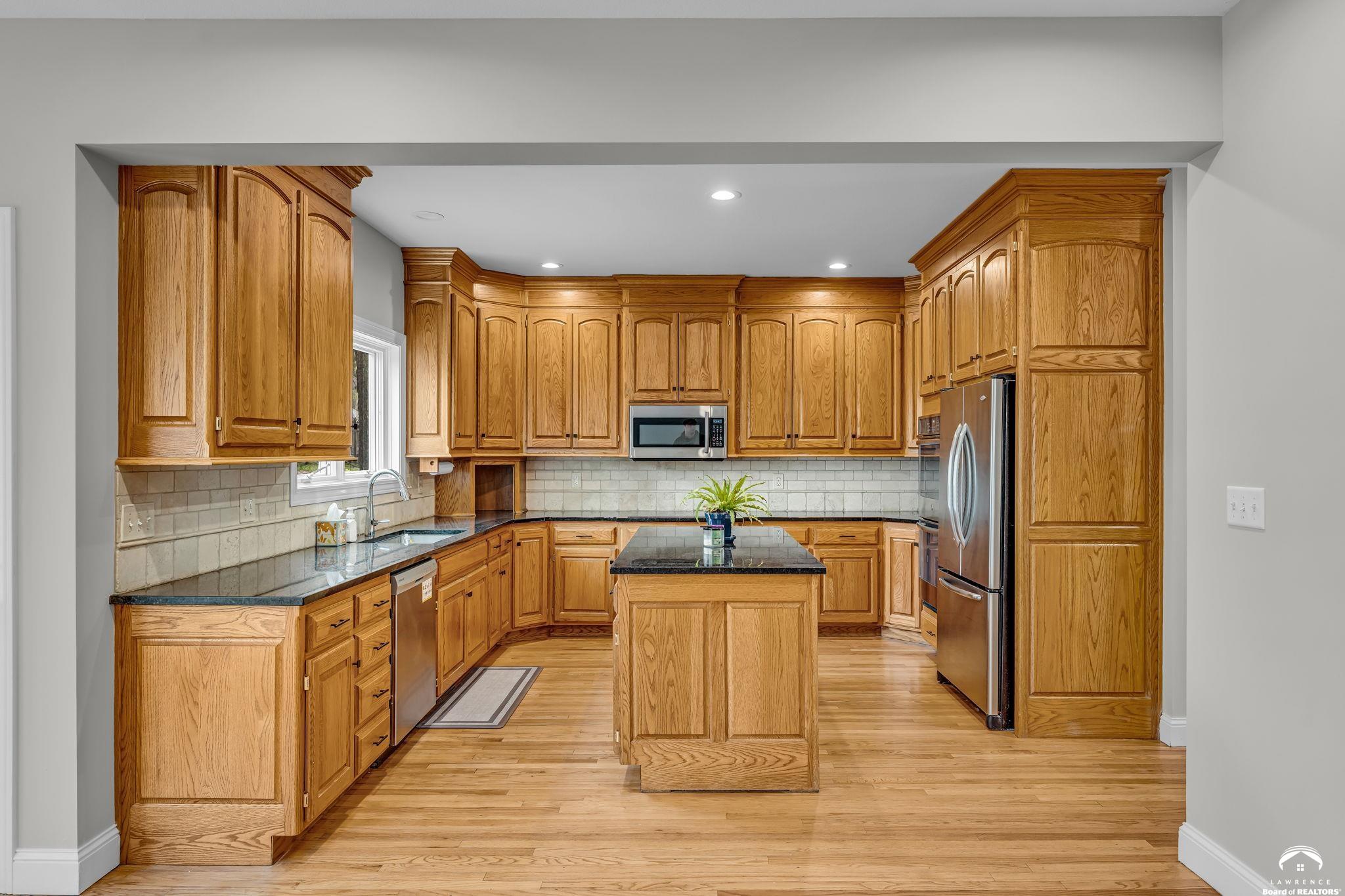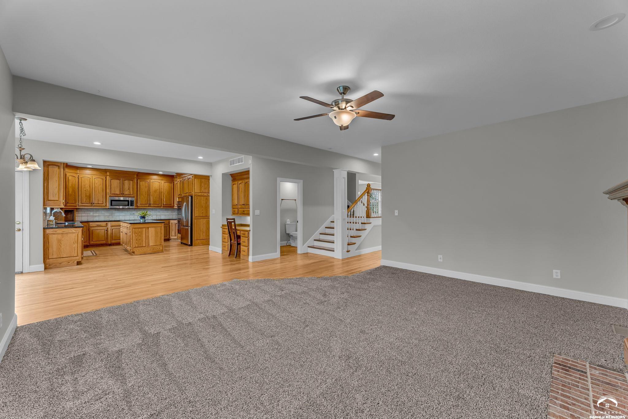 Motivated seller! Priced below county appraised value, this turn-key Quail Run home offers over 4,400 square feet, 5 bedrooms, 5 bathrooms, and an impressive combination of updates, space, and value. Fresh interior paint covers every surface, including the walls, ceilings, garage, trim, and doors, while all new carpet, oiled oak hardwood floors, new vinyl plank flooring in the laundry room, kitchen closet, and pantry, several new ceiling fans, three new toilets, a new hot water heater, whole-house pressure regulator, and updated hardware throughout add to the home’s clean, comfortable, move-in-ready feel. The kitchen is well-equipped with granite countertops, refreshed custom oak cabinets, extra-tall cabinetry with abundant storage, under-cabinet lighting, and a built-in desk area. Downstairs, the daylight basement is filled with natural light and offers a wet bar, plenty of room for the ideal rec space, two large unfinished storage areas, and a reinforced storm shelter room. Outside, the large backyard is shaded by mature trees and provides a peaceful setting to enjoy Kansas evenings on the concrete patio, with the chimenea included.