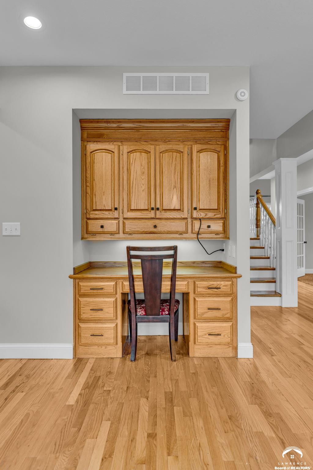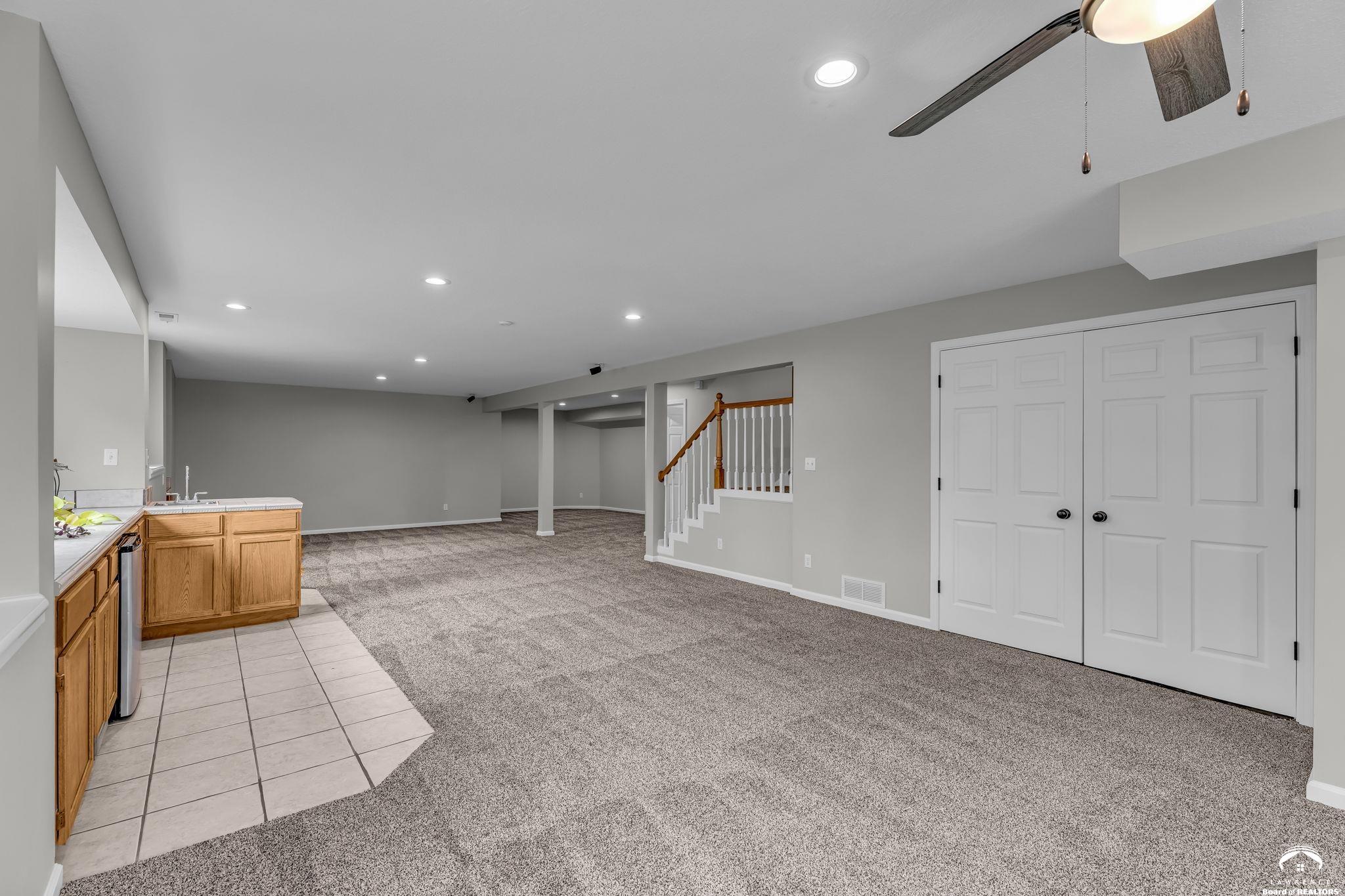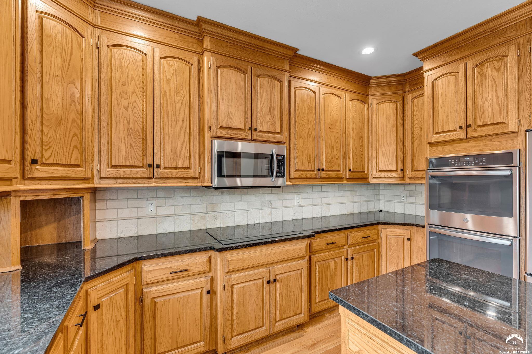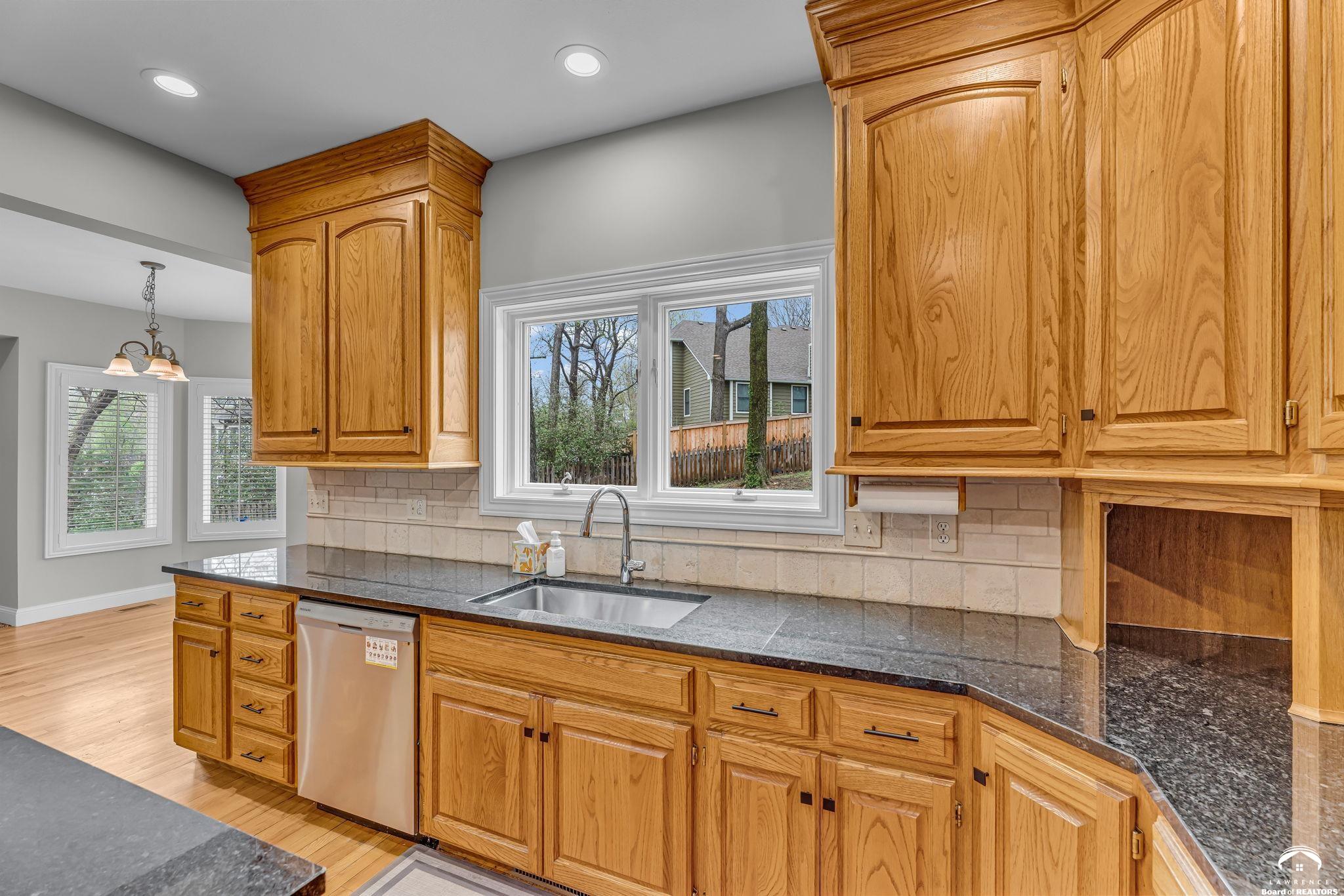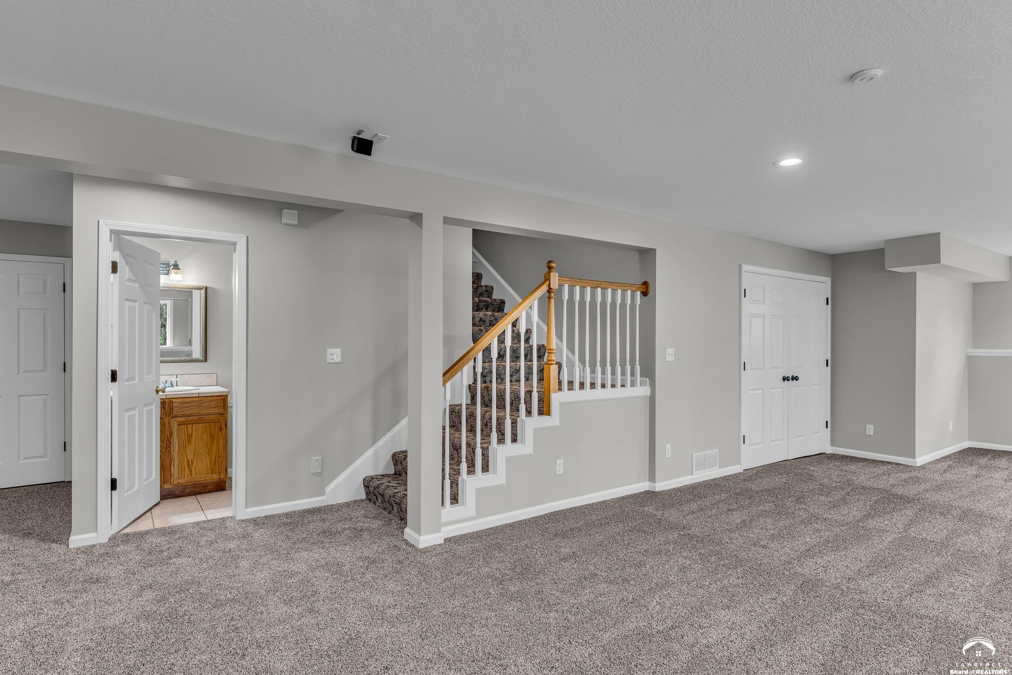 Motivated seller! Priced below county appraised value, this turn-key Quail Run home offers over 4,400 square feet, 5 bedrooms, 5 bathrooms, and an impressive combination of updates, space, and value. Fresh interior paint covers every surface, including the walls, ceilings, garage, trim, and doors, while all new carpet, oiled oak hardwood floors, new vinyl plank flooring in the laundry room, kitchen closet, and pantry, several new ceiling fans, three new toilets, a new hot water heater, whole-house pressure regulator, and updated hardware throughout add to the home’s clean, comfortable, move-in-ready feel. The kitchen is well-equipped with granite countertops, refreshed custom oak cabinets, extra-tall cabinetry with abundant storage, under-cabinet lighting, and a built-in desk area. Downstairs, the daylight basement is filled with natural light and offers a wet bar, plenty of room for the ideal rec space, two large unfinished storage areas, and a reinforced storm shelter room. Outside, the large backyard is shaded by mature trees and provides a peaceful setting to enjoy Kansas evenings on the concrete patio, with the chimenea included.