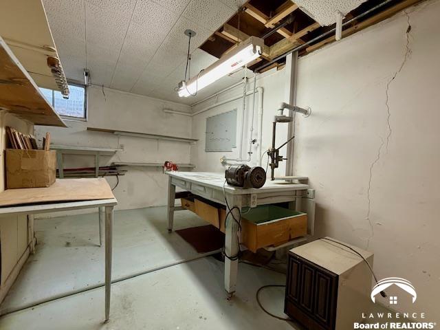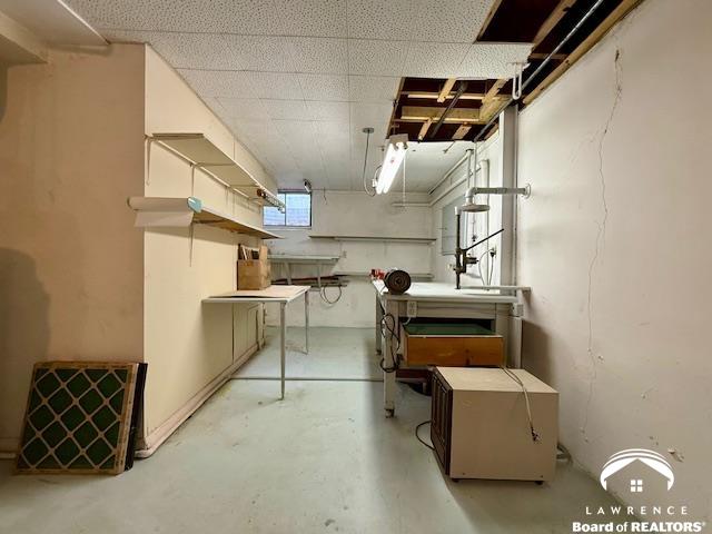 Standing proud just 2 blocks from the University of Kansas this true ranch home on a basement promises all kinds of potential and opportunity. The current finishes representing that of a bygone era, consider removing the carpet to let the original hardwoods shine and make the necessary repairs to restore her to her former glory. The main level is comprised of a very large living room, dedicated dining space, 2 nice-sized bedrooms and a classic kitchen overlooking a great backyard with circular back corner patio. The full unfinished basement great for storage and recreation comes with built-in work bench. There are repairs needed to this home and it is priced accordingly. Bring your vision and tools to make it happen! This home has been loved and appreciated for decades by its most recent owner and is ready for the next steward to make it theirs. Home sold in present, as-is condition. Cash or construction loan.