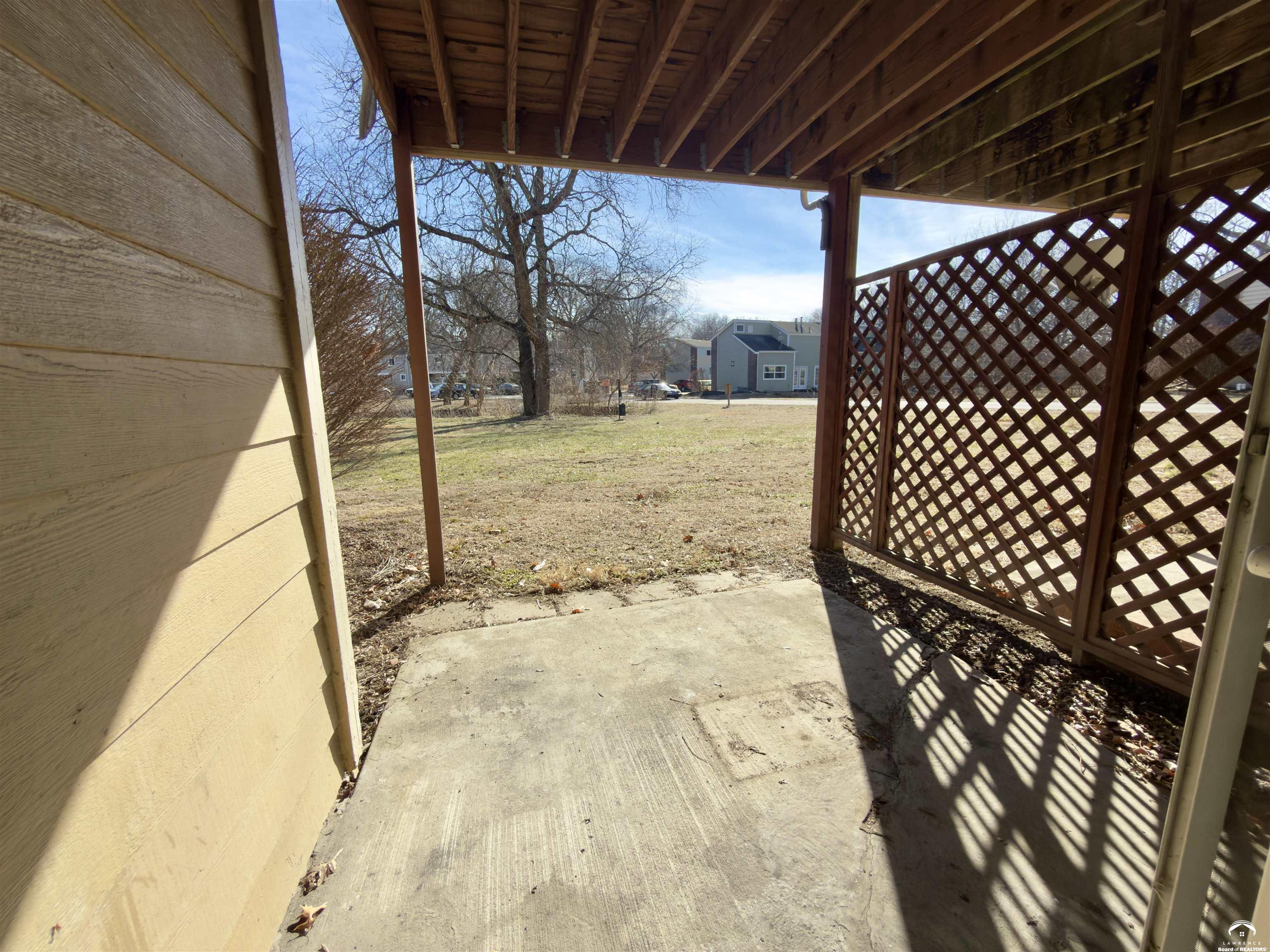 Quiet & Convenient Condo Living in Wood Creek! Discover the perfect blend of comfort and convenience in the heart of the popular Wood Creek community. This move-in-ready 1-bedroom, 1-bathroom condo offers an effortless, low-maintenance lifestyle. The thoughtfully designed layout maximizes space and functionality, creating an inviting atmosphere the moment you walk through the door. Step outside to your private covered patio overlooking a serene common green space—a peaceful retreat for your morning coffee or evening relaxation. The HOA provides ultimate peace of mind, covering lawn care, snow removal, shared plumbing, building insurance, and most exterior maintenance. Location is everything! You are just minutes from the vibrant energy of Downtown Lawrence, offer quick I-70 access for commuters, and sit conveniently on the KU Bus route. Whether you’re looking for a primary residence or a turn-key investment, this condo is a fantastic opportunity. Schedule your tour today!