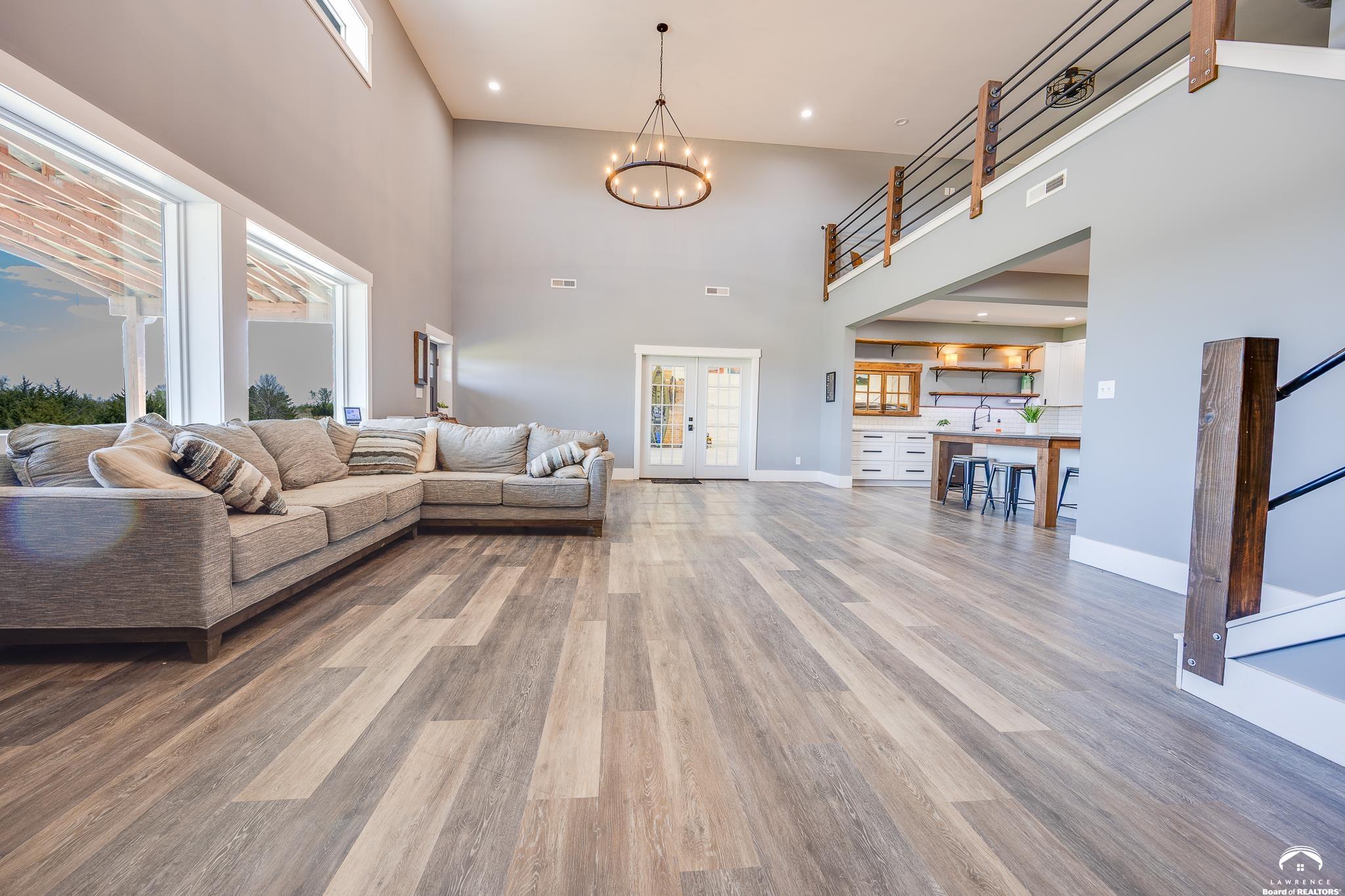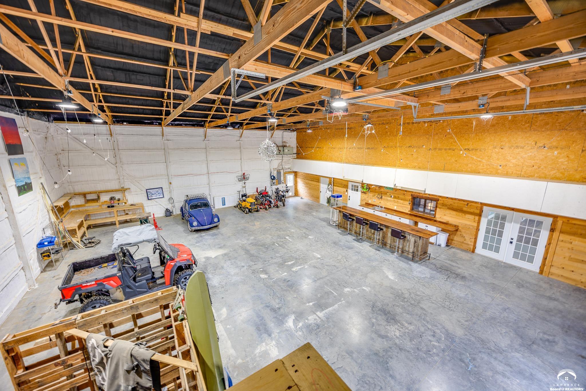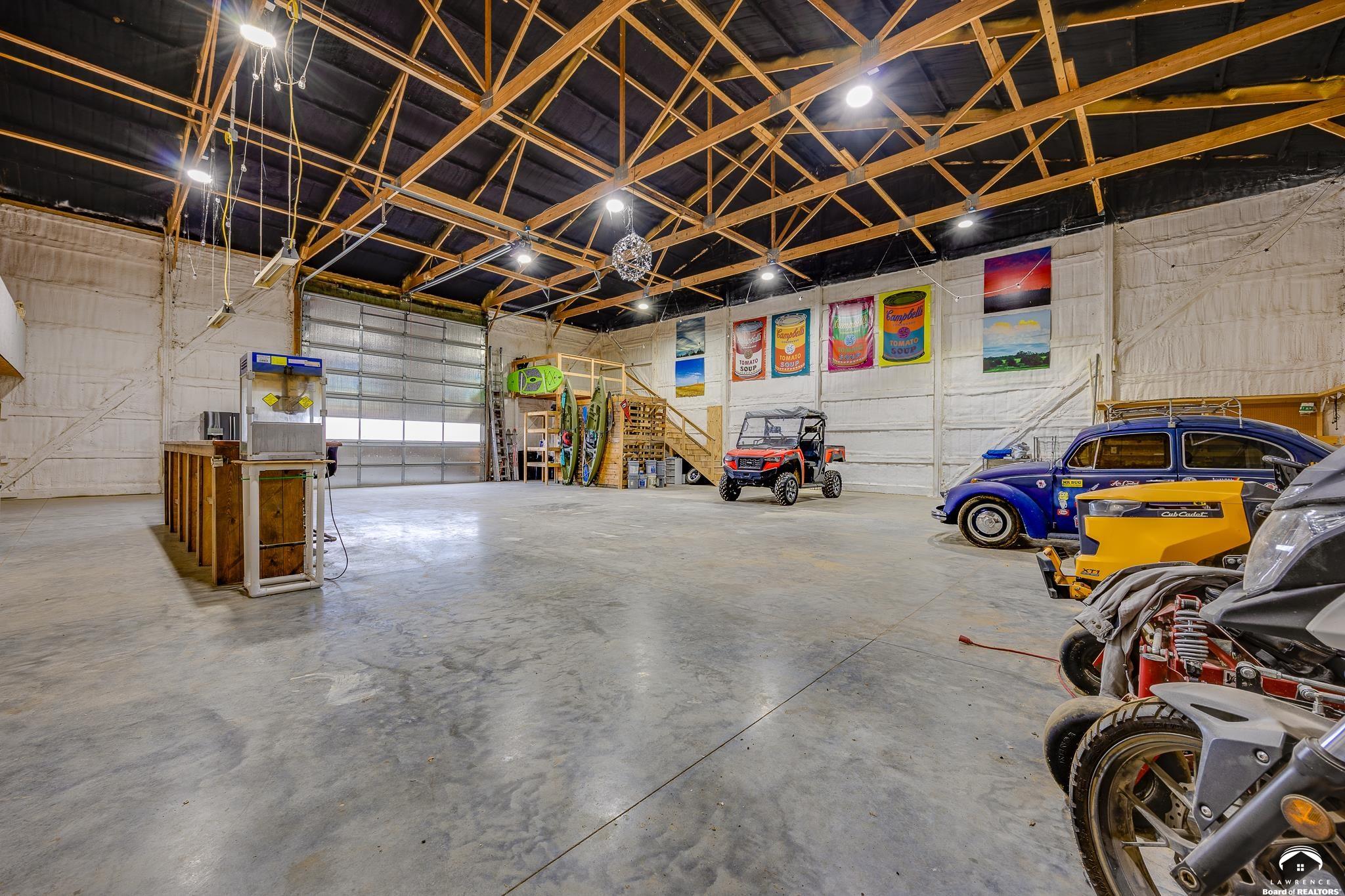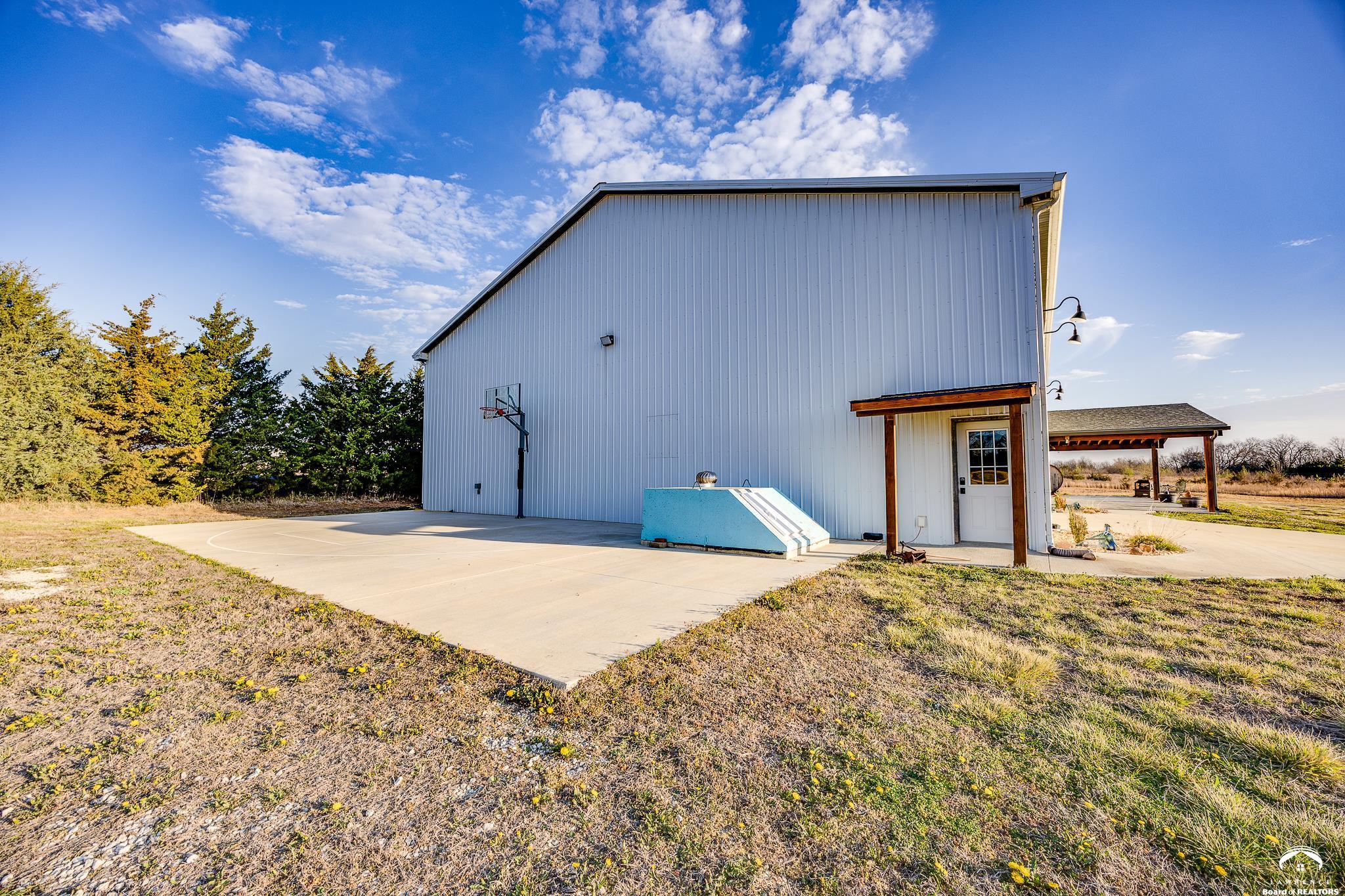 This exceptional modern barndominium combines the strength and durability of steel-frame construction with beautifully finished, high-end living space. Approximately one-third of the building is dedicated to the residence, offering more than 3,000 square feet of thoughtfully designed interior space. The remaining two-thirds is an incredible shop and garage area featuring an oversized door tall enough to accommodate nearly anything (RVs, boats, classic cars, motorcycle, or you name it!) The shop is equally impressive for entertaining, complete with a long custom bar and plenty of room to gather with friends and family. Just outside, the front porch opens to an inviting outdoor living area. Relax with a fire in the front circle fire pit, take a soak in the hot tub, or have a schvitz in the custom-built sauna. On the south side of the building, you’ll find even more amenities, including a storm shelter, basketball court, and RV pad. The real adventure begins across the 38.71-acre property. With endless opportunities to explore, this land features six named trails winding through it. Be sure to review the trail map to see where they lead. Two ponds add to the setting: one located near the home, and a second, smaller pond to the north that can be reached via the Main Loop Trail or Bobwhite Trail. While you’re there, take a moment to enjoy the oversized swing overlooking the peaceful surroundings. Wildlife is abundant throughout the property, with trail cameras frequently capturing deer, turkeys, and other native animals. All of this is set in the serene countryside of Jefferson County, just minutes from Lake Perry. Conveniently located only 4.6 miles from Rock Creek Marina & Resort, 5.5 miles from Perry State Park, 3.9 miles from Lake Perry Country Club, and 3.2 miles from Village Greens Golf Course, this one-of-a-kind property offers the perfect blend of recreation, privacy, and luxury. This property truly has it all. Schedule your showing today!