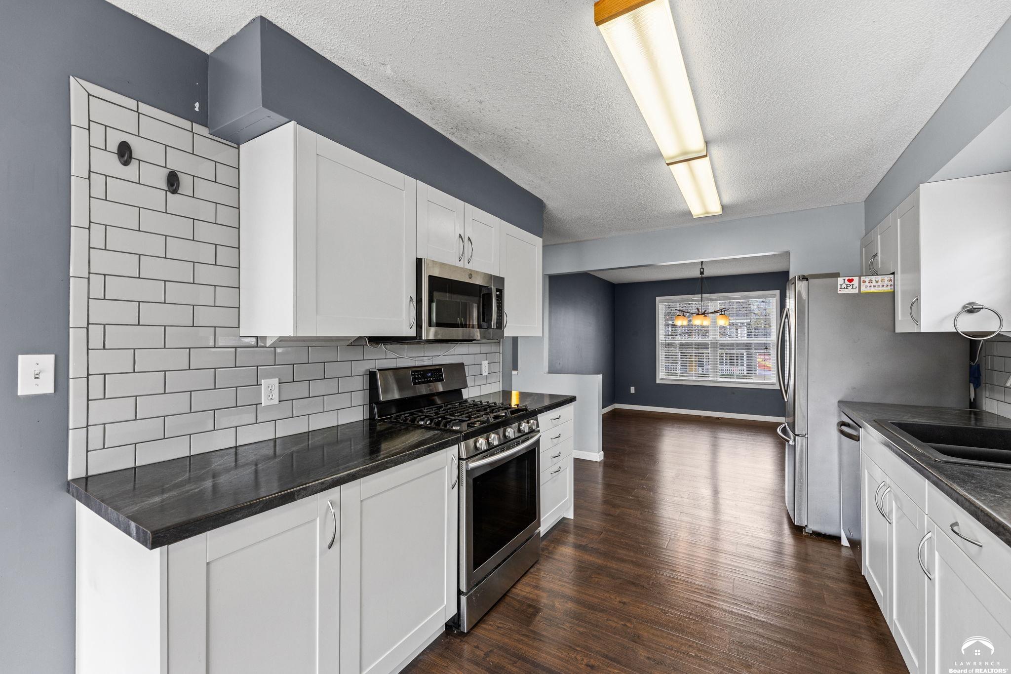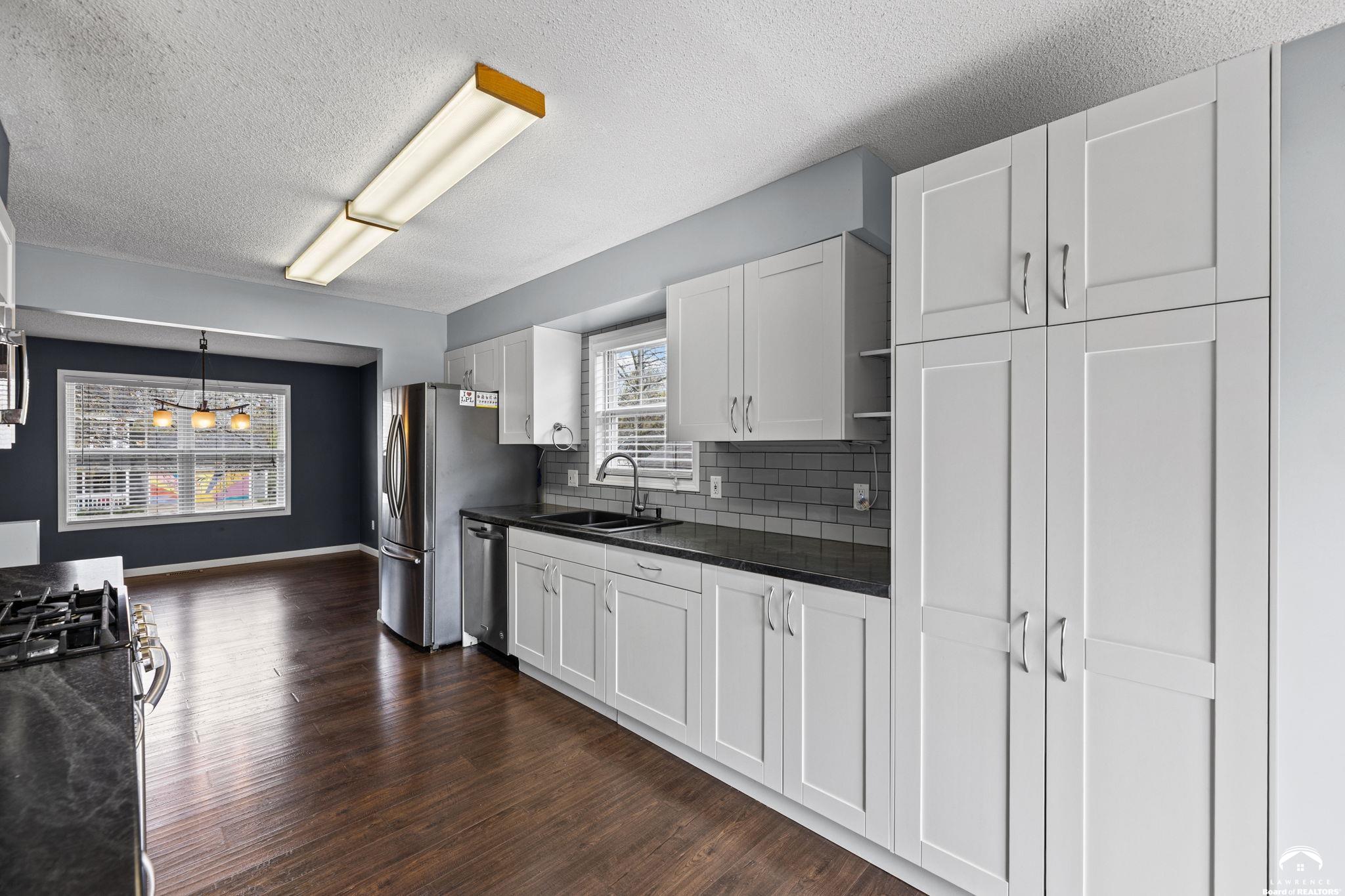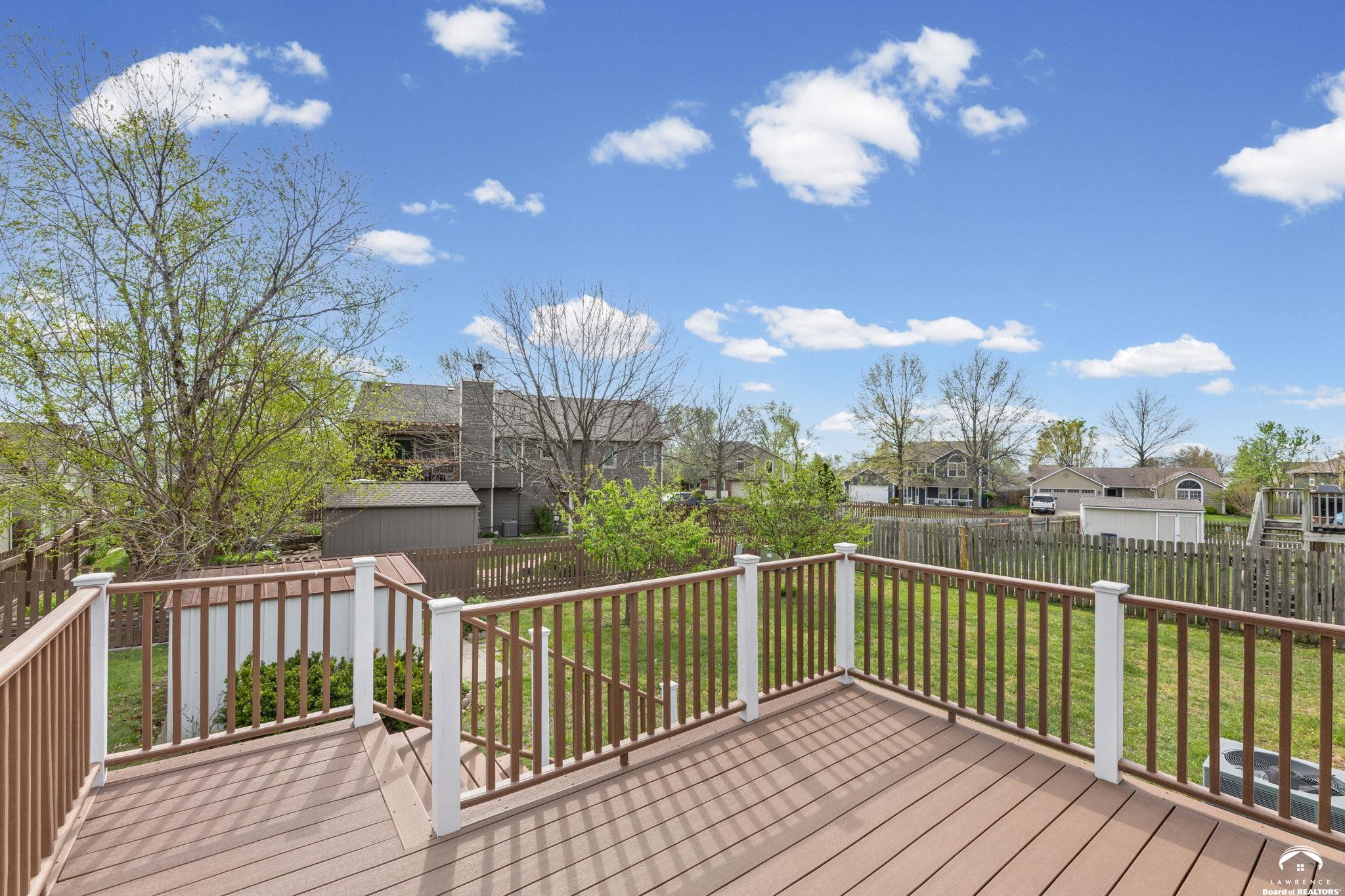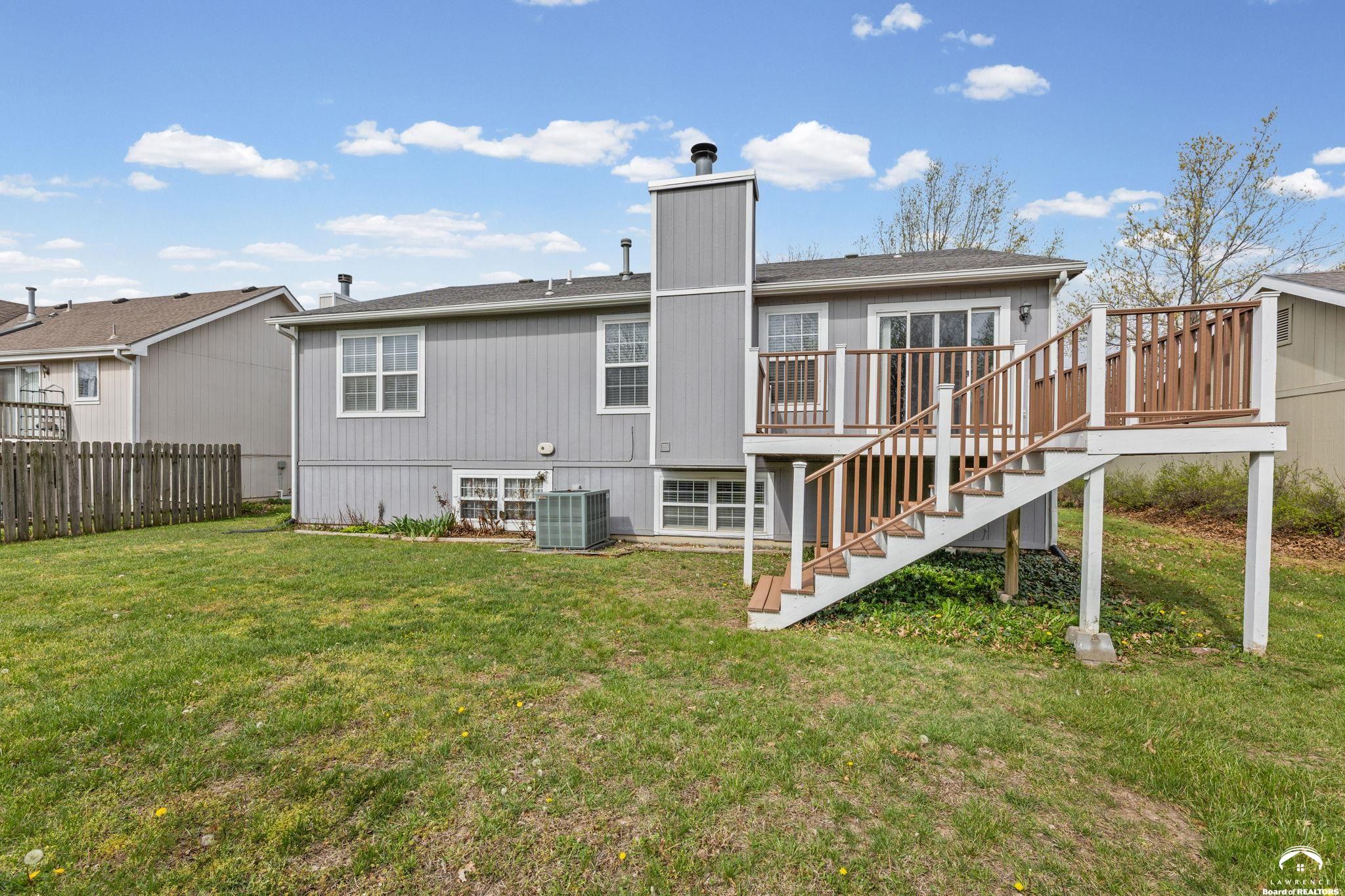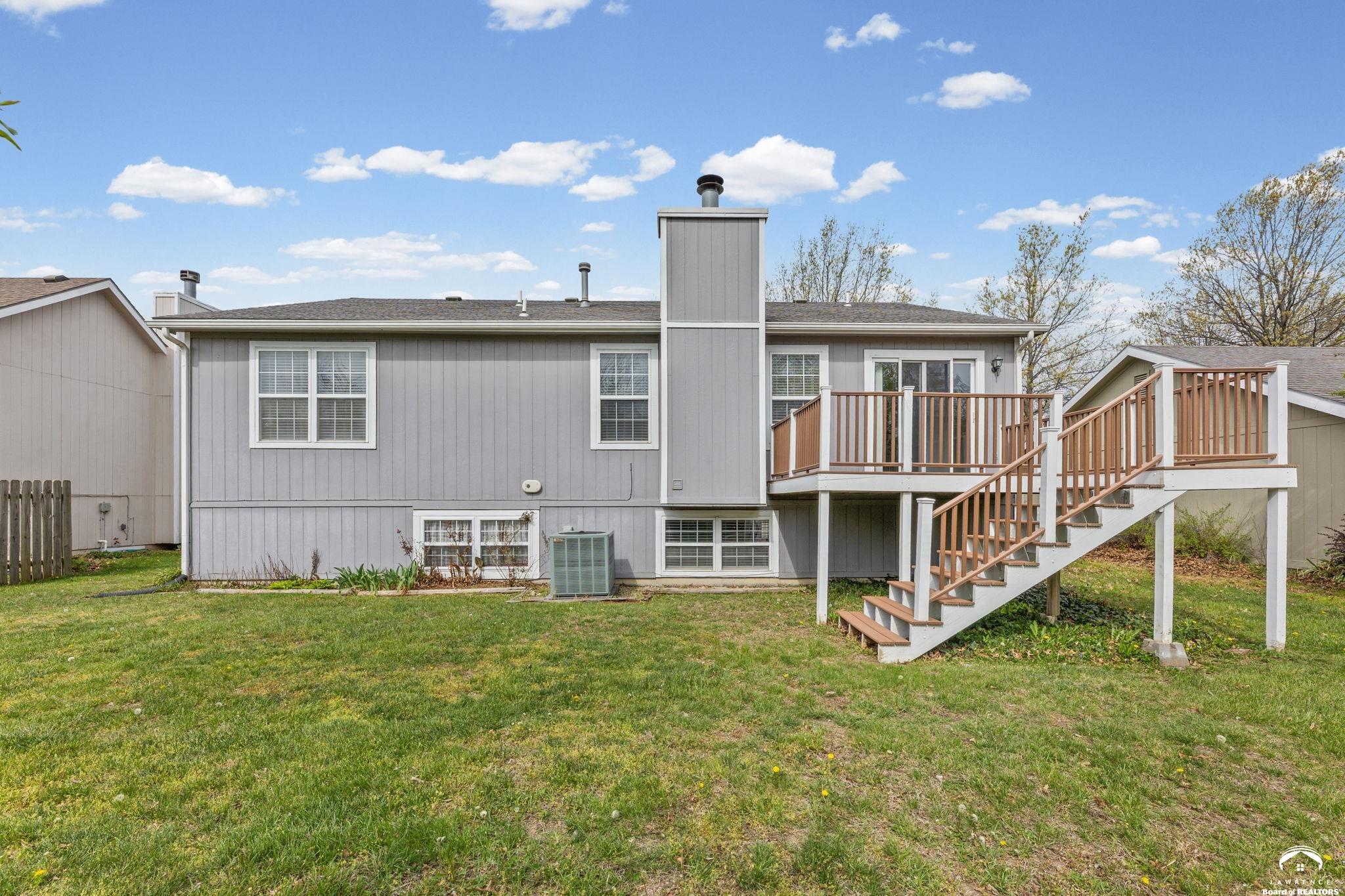 Spacious and updated home in the desirable Prairie Park neighborhood of Lawrence, KS! This 4-bedroom home offers a functional layout with three bedrooms on the main level, including a primary suite with a private bath and double vanities. The updated kitchen features newer countertops, tile backsplash, modern cabinetry, and stainless steel appliances—all included—making it truly move-in ready. The finished basement provides additional living space with a large second family room, a fourth bedroom, and ample unfinished storage space. Enjoy outdoor living with a newer composite deck overlooking a low-maintenance backyard—perfect for entertaining or relaxing. This home also offers excellent closet space and storage throughout. Conveniently located near Prairie Park Nature Center, Mary’s Lake, walking trails, parks, and with easy access to K-10 Highway and 31st Street, this home combines comfort, space, and a prime Lawrence location.