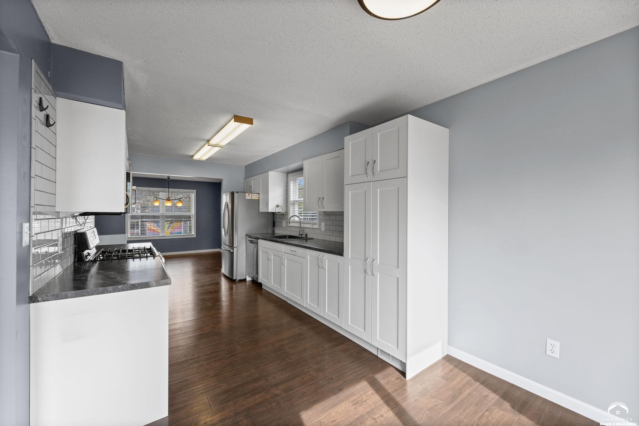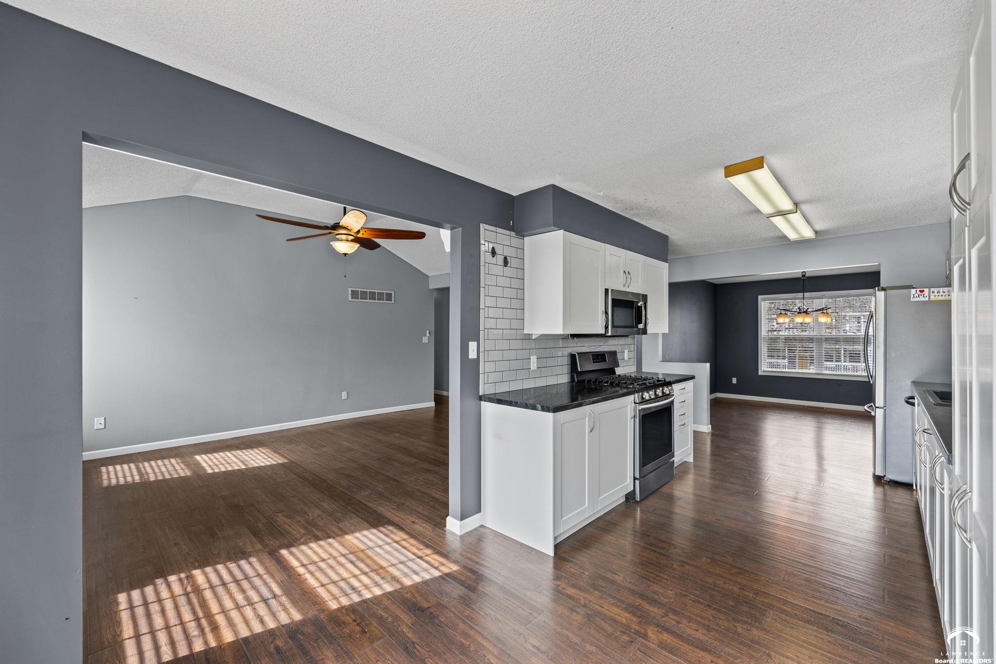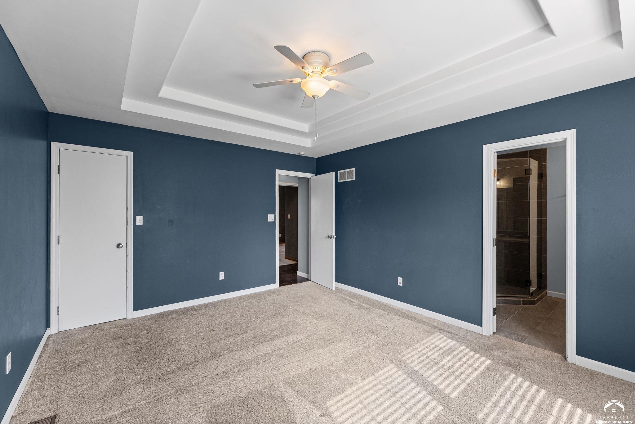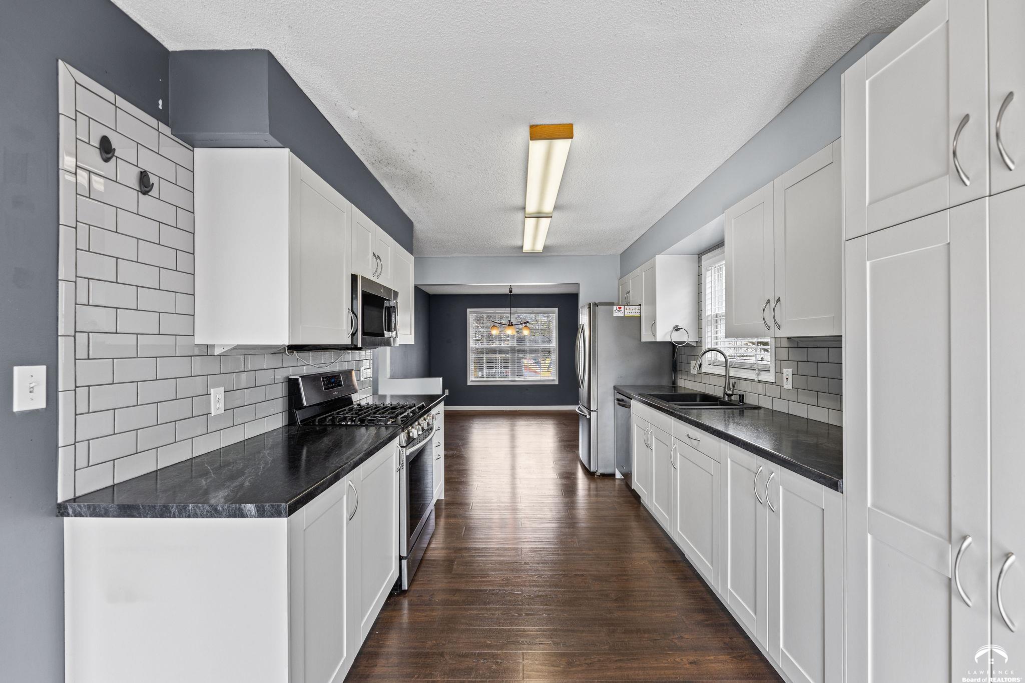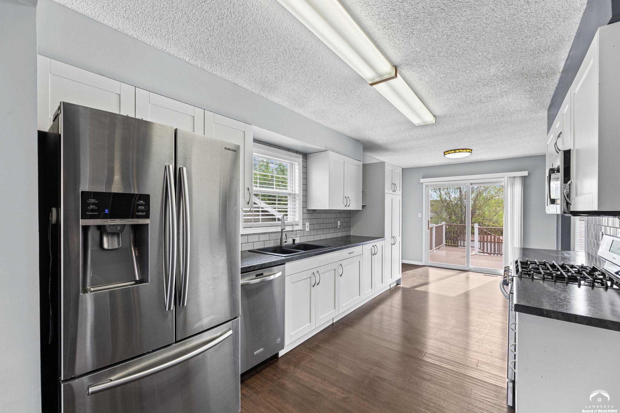 Spacious and updated home in the desirable Prairie Park neighborhood of Lawrence, KS! This 4-bedroom home offers a functional layout with three bedrooms on the main level, including a primary suite with a private bath and double vanities. The updated kitchen features newer countertops, tile backsplash, modern cabinetry, and stainless steel appliances—all included—making it truly move-in ready. The finished basement provides additional living space with a large second family room, a fourth bedroom, and ample unfinished storage space. Enjoy outdoor living with a newer composite deck overlooking a low-maintenance backyard—perfect for entertaining or relaxing. This home also offers excellent closet space and storage throughout. Conveniently located near Prairie Park Nature Center, Mary’s Lake, walking trails, parks, and with easy access to K-10 Highway and 31st Street, this home combines comfort, space, and a prime Lawrence location.