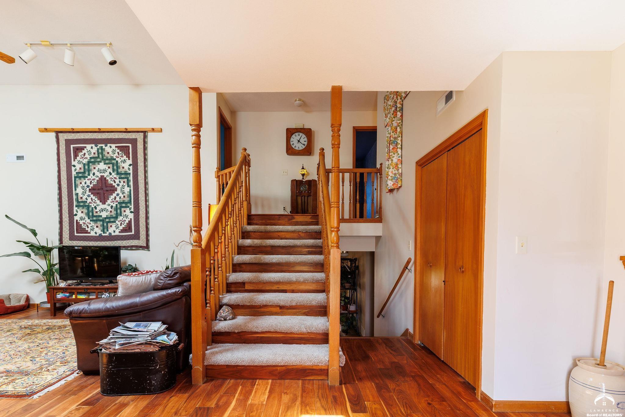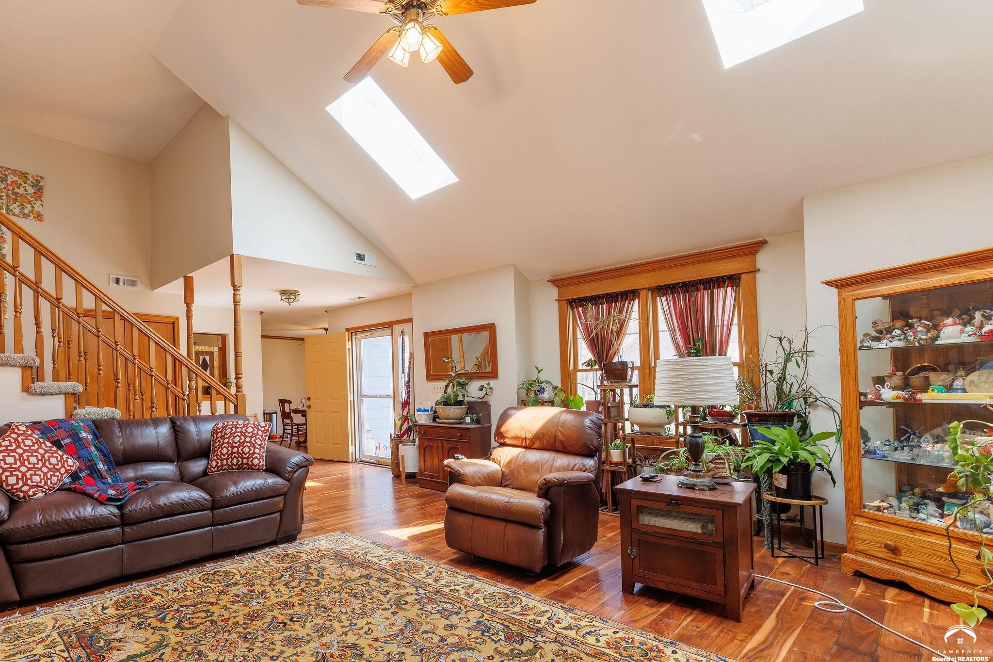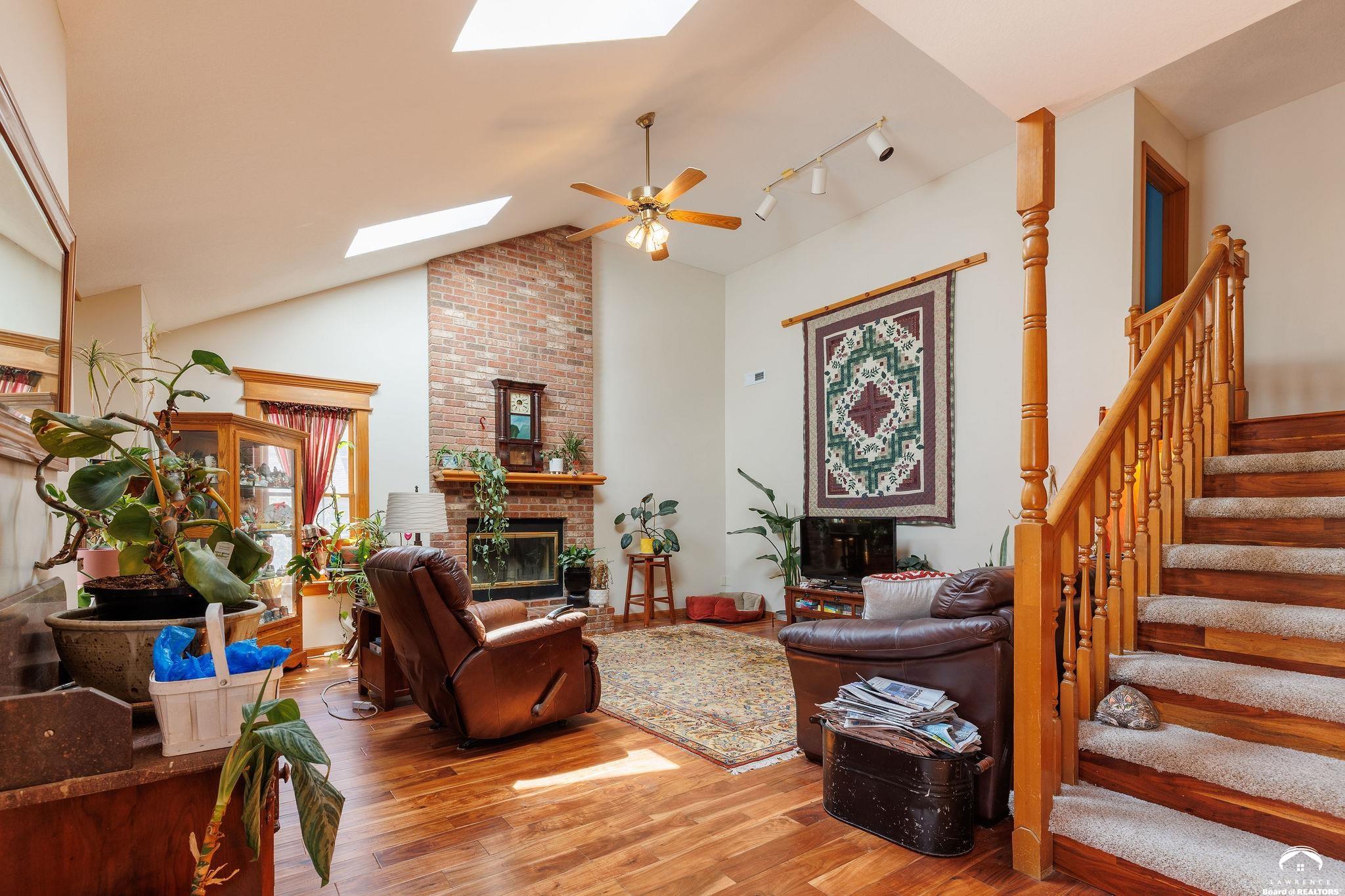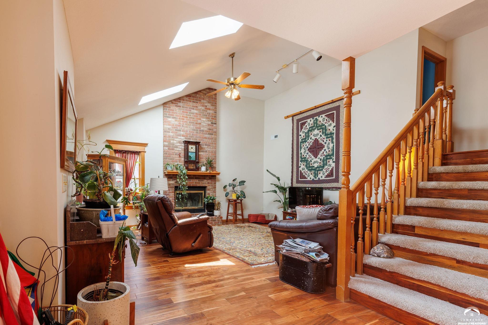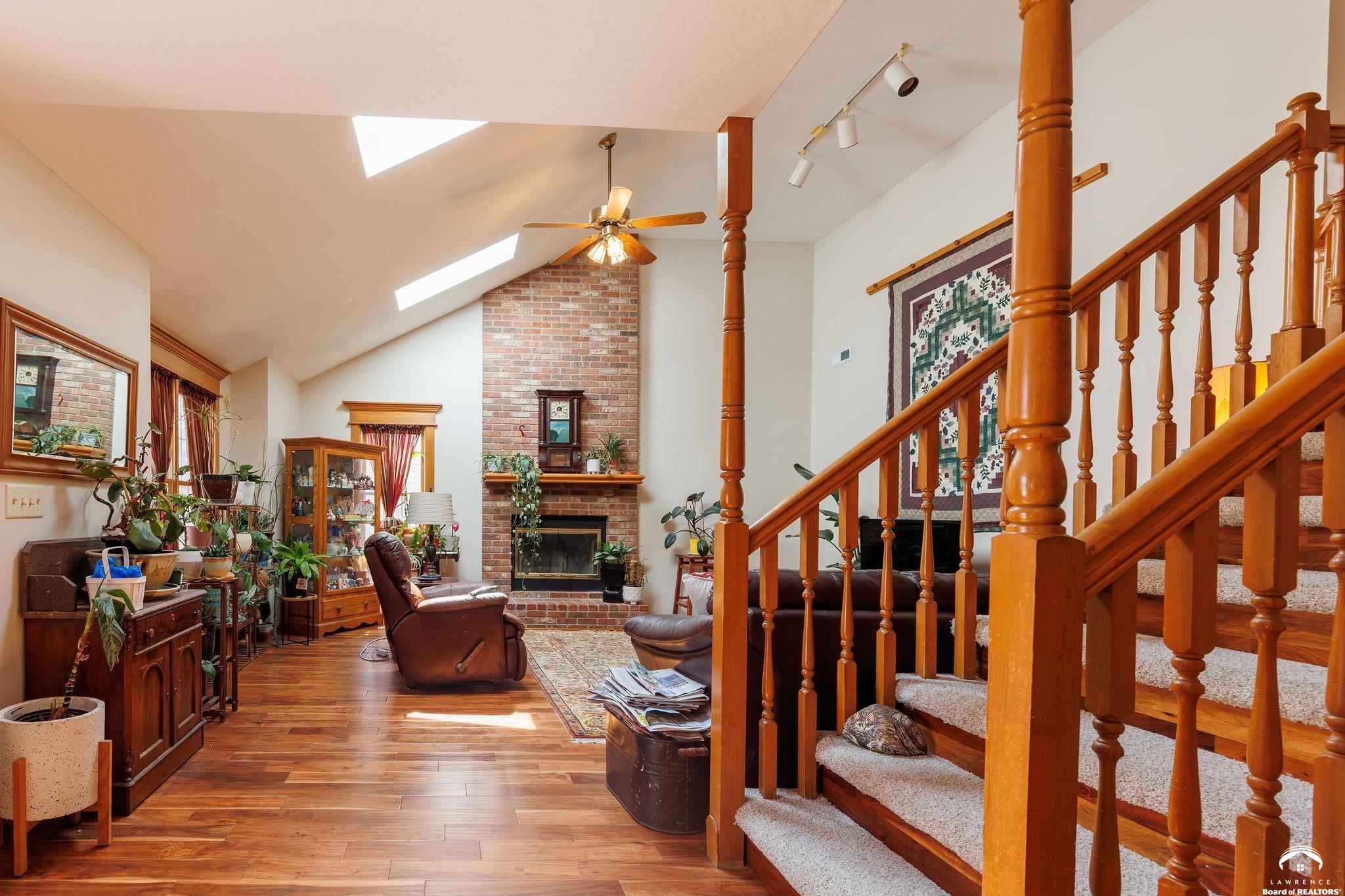 Live in one of Lawrence's most tucked-away neighborhoods. This charming 4 bed, 3 bath home at 505 Shoal Lane is nestled on the edge of the city, north of the Hallmark plant and the Kansas Turnpike and two blocks away from one of the best convenience stores in town (Sinclair). With easy access to I-70 (and Farmer's Turnpike), this home is perfect for anyone commuting to Kansas City or Topeka. The primary bedroom comes complete with an en suite bathroom. 505 Shoal offers 2,220 square feet of living space, a fireplace with chimney brickwork to the ceiling and newer skylights (2024) that provide additional light. Featuring a walkout basement that leads to a large fenced backyard, 505 Shoal was built on a lot and a half. In the backyard, you'll find a large, attached, solid-cedar pergola- perfect for morning coffee or nighttime stargazing. You will also find a tool shed, painted to match the house! Inside the walkout basement, you'll find a large secondary living space with a hallway that leads to a 5th non conforming room as well as a third bathroom. This home includes a newer roof (2024), new interior and exterior paint (2025), brand new carpet (2026) and gorgeous hardwood floors. The HVAC system is 4 years old and both AC and furnace were serviced in 2026. All windows in back of the house are 2-3 years old and the remaining windows on the property are less than 10 years old. Schools: Deerfield, West Middle School and Freestate. (Property currently occupied, see showing time instructions please).